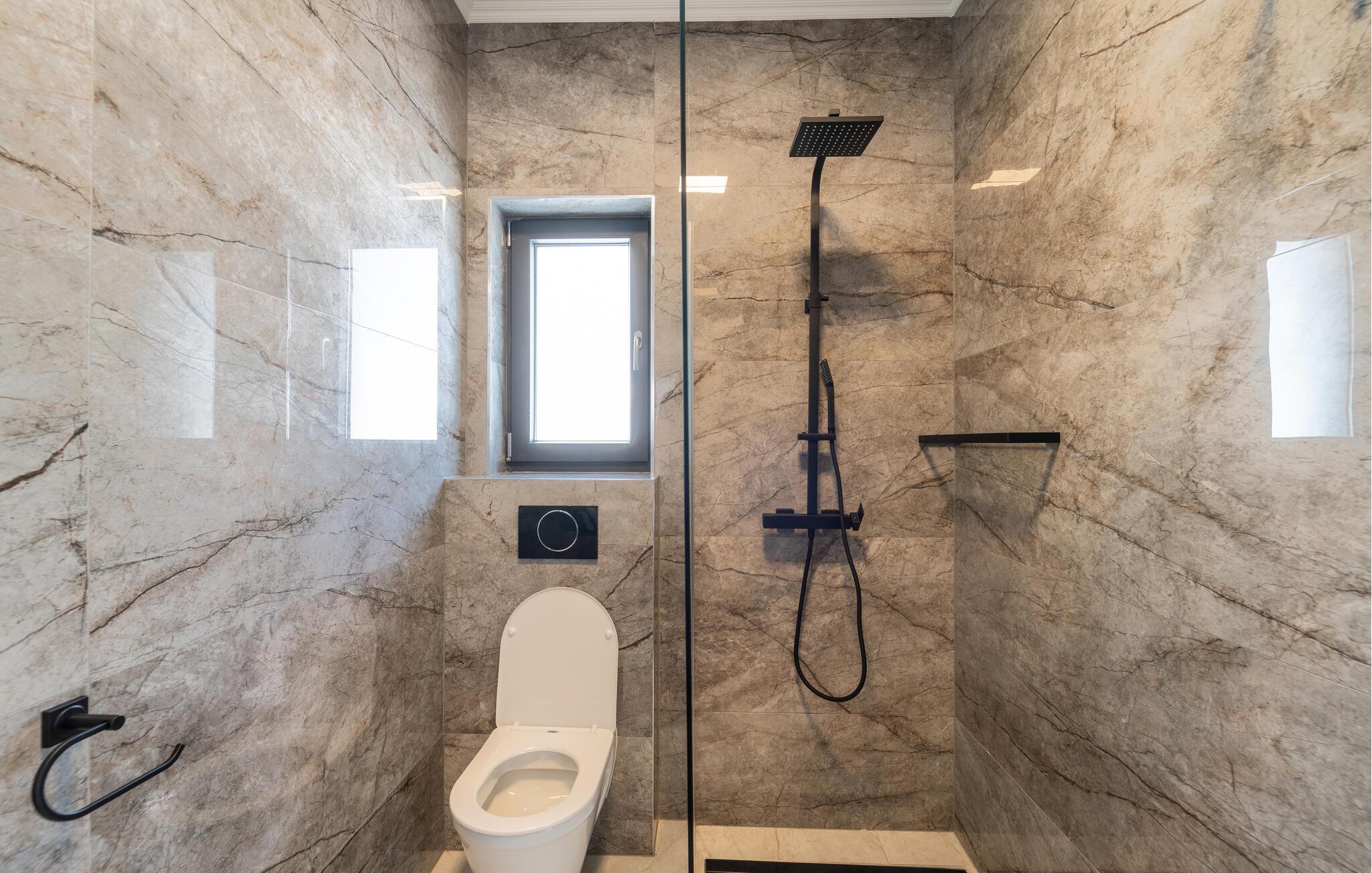 Badezimmer 4m2 (nr. 2) - WC. Warmes und kaltes Wasser. Dusche