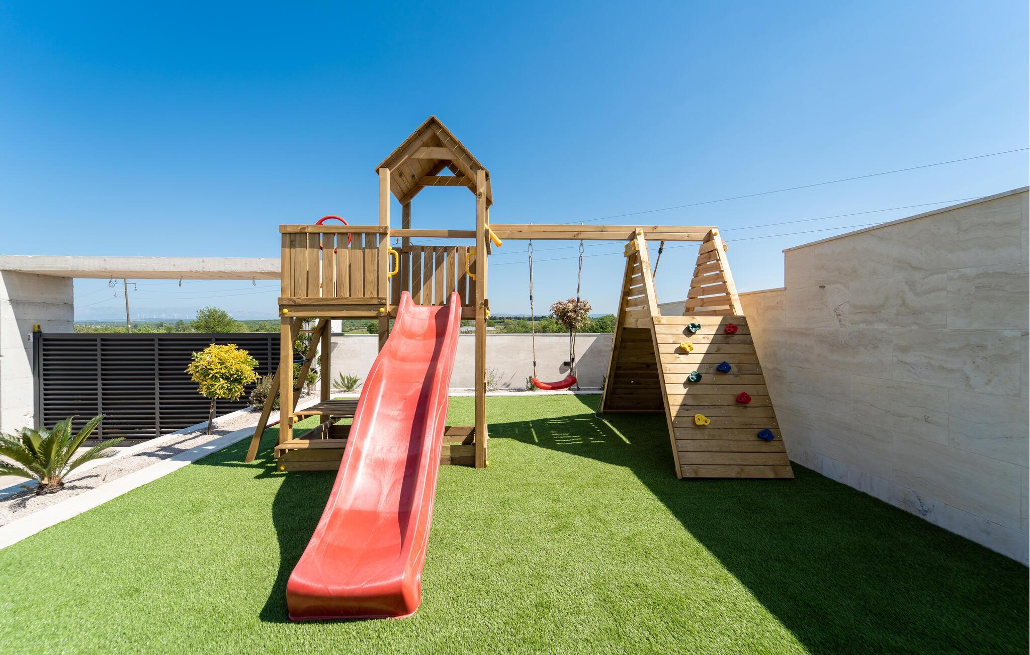 Auch die Außenbereiche laden zum Ausruhen im Freien. Entspannen Sie sich mit einem Buch auf dem Balkon oder erfrischen sich im Pool im Garten. Der Spielplatz wird zum beliebten Ort für Ihre Kinder, während die älteren von Ihnen den ein oder anderen Korb in den Basketballkorb werfen, während die Grillmeister auf der überdachten Terrasse das Abendessen zubereiten.