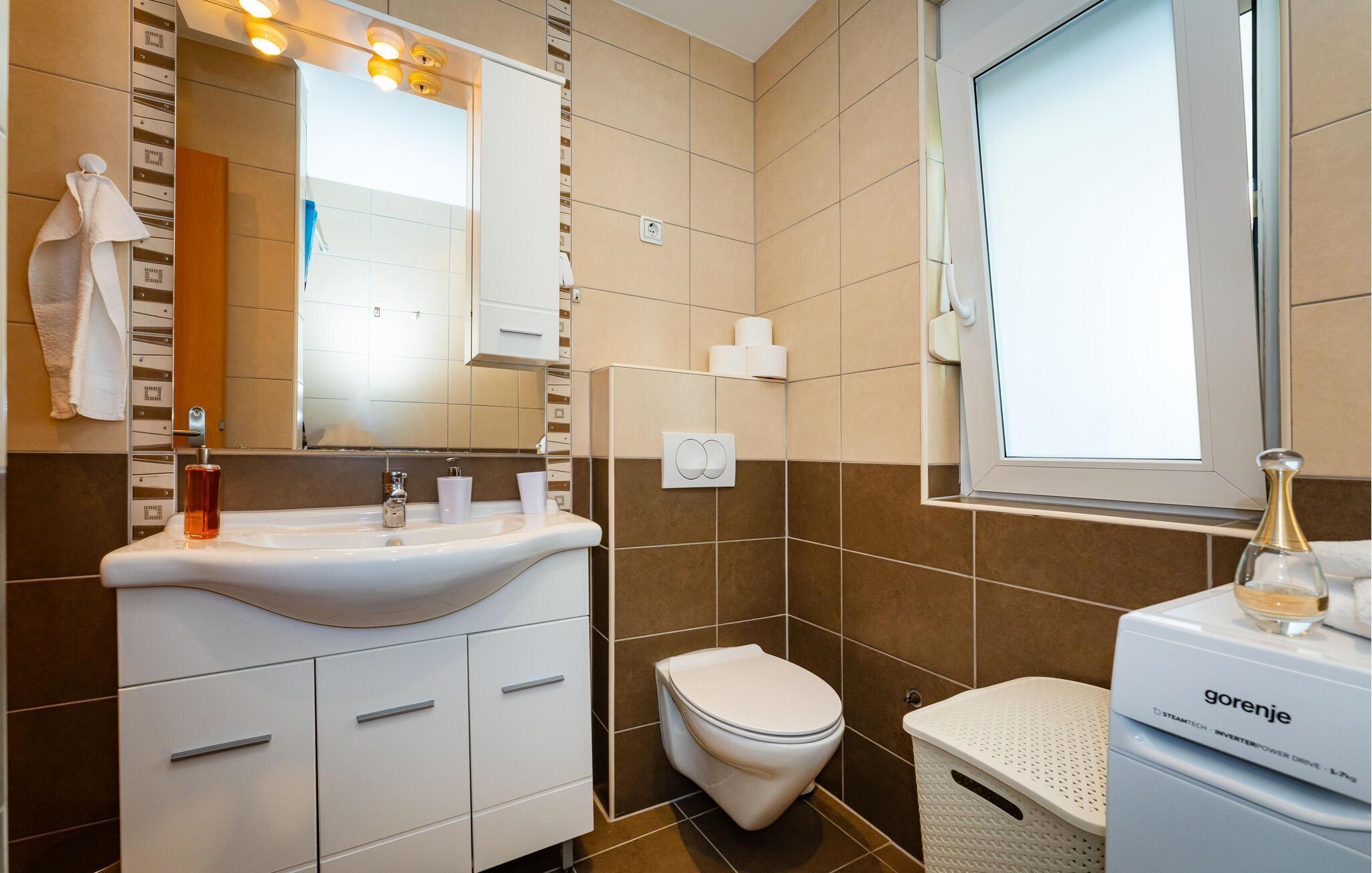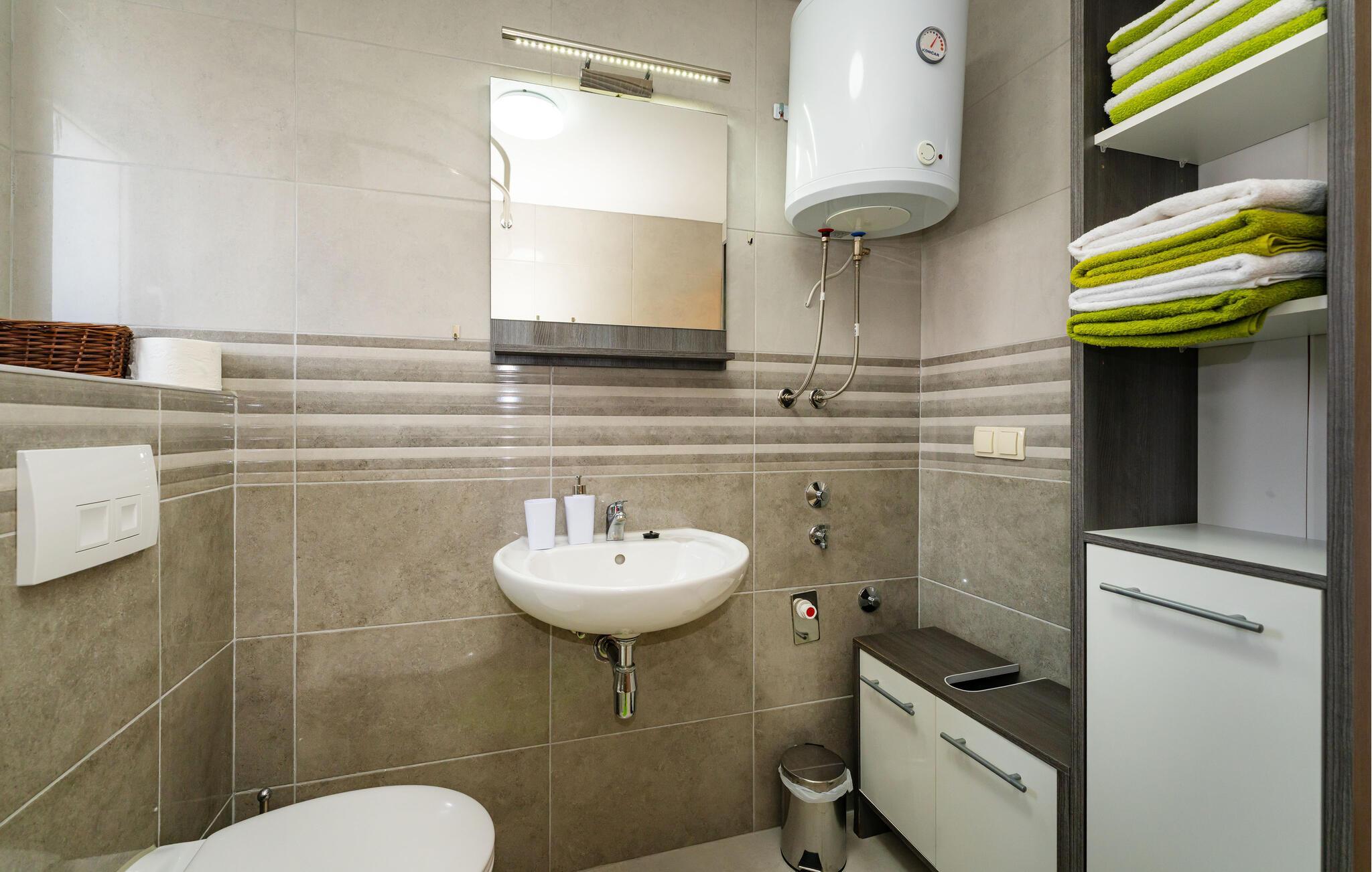 Badezimmer 7m2 (nr. 1) - WC. Warmes und kaltes Wasser. Dusche