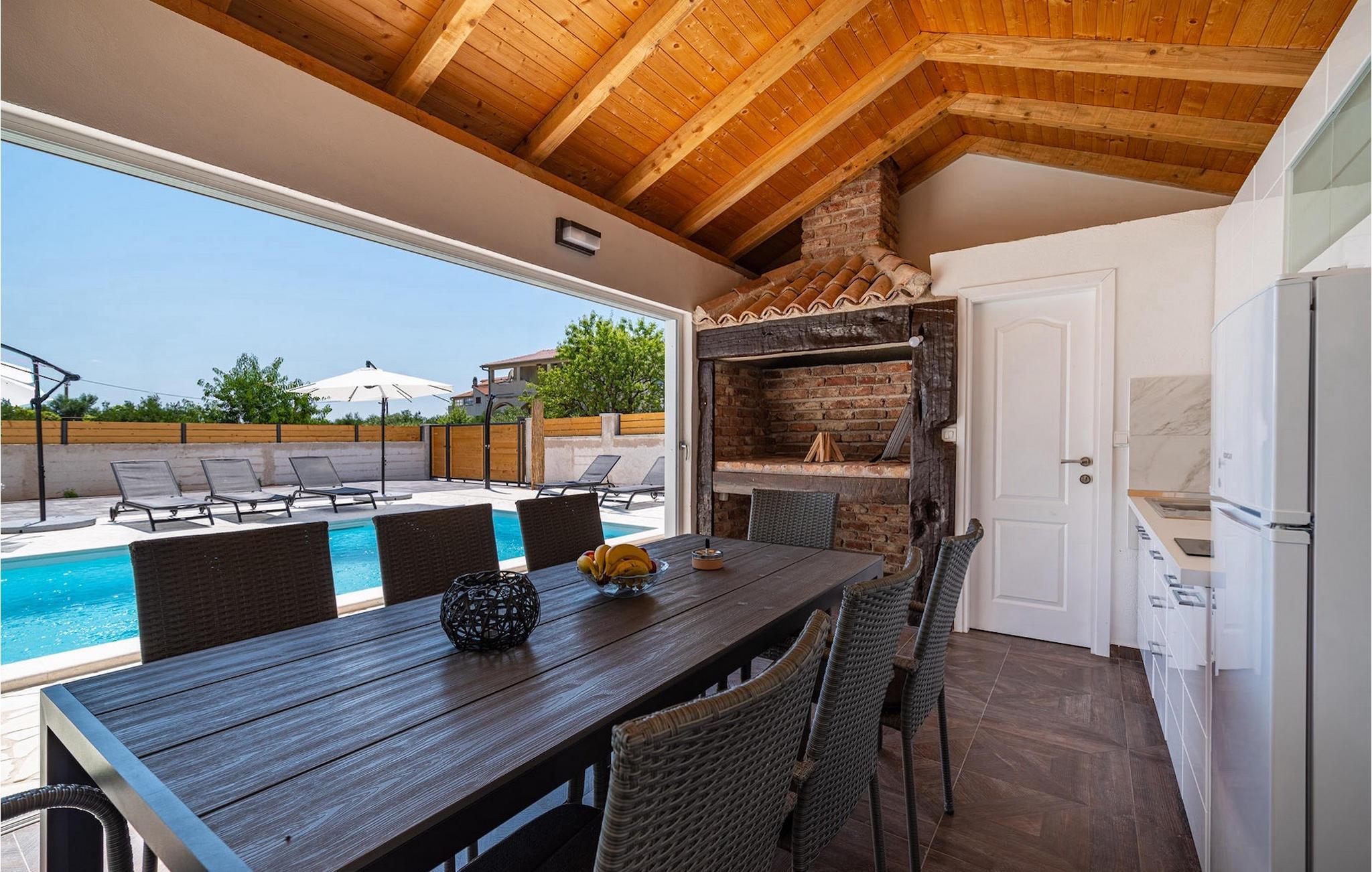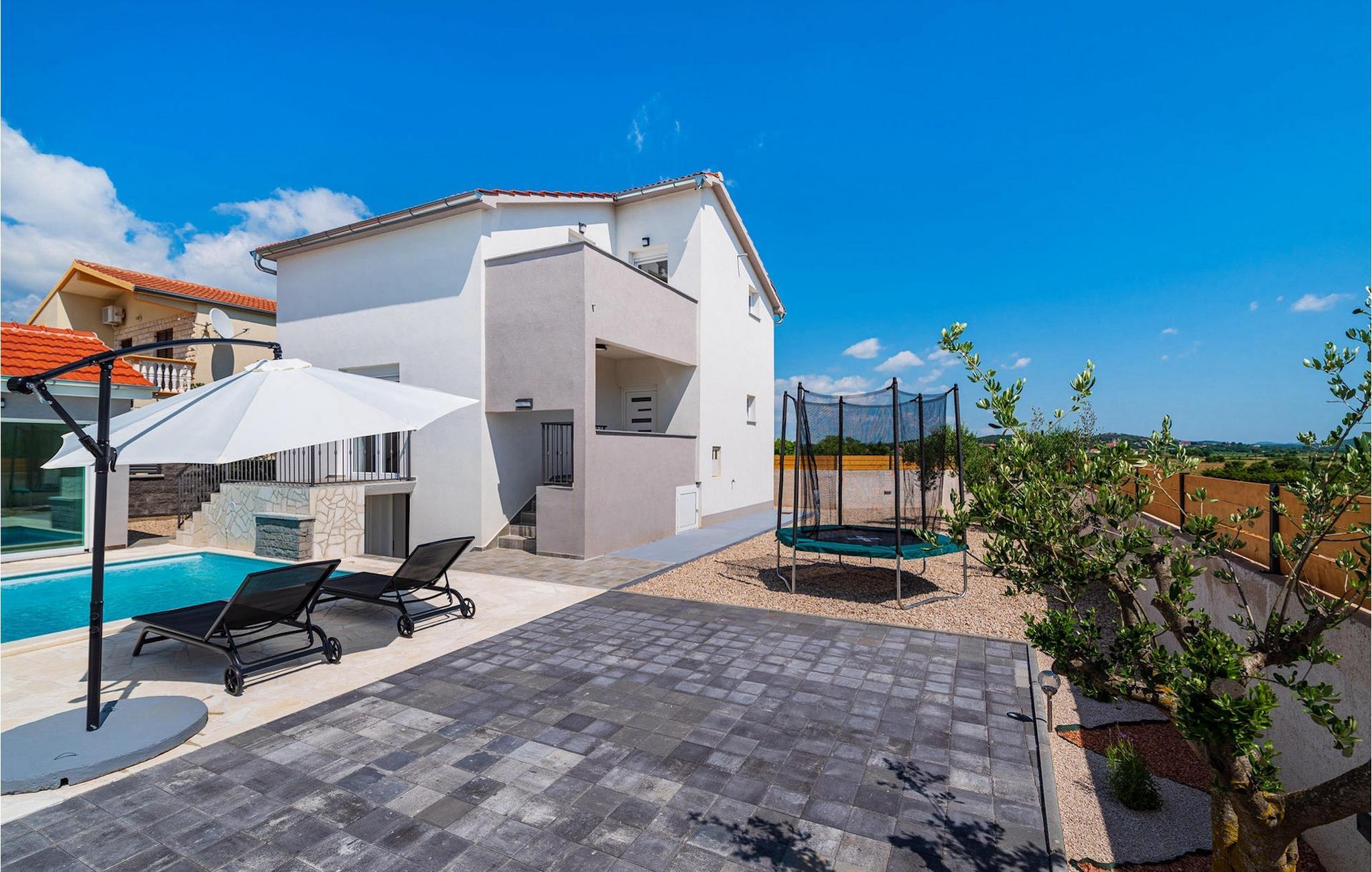 Die Villa Feniks im Dorf Polaca ist eine ideale Villa für einen Urlaub mit der Familie. Der Garten ist komplett eingezäunt und bietet Ihnen während Ihres Urlaubs die gewünschte Privatsphäre. Vor dieser wunderschönen Villa befindet sich ein 32 Quadratmetre großer Swimmingpool, in dem Sie sich von der Sommerhitze erfrischen können. Wenn Sie ein Fan des Sonnenbadens sind, entspannen Sie sich in den Liegestühlen am Pool und genießen Sie erfrischende Getränke und interessante Lektüre. Am Pool gibt es einen überdachten Bereich mit einer Außenküche und einem Esstisch aus Holz mit 8 Sitzplätzen, wo Sie dalmatinische Spezialitäten vom Grill genießen können. Wecken Sie das Kind in sich und haben Sie Spaß mit den jüngsten Familienmitgliedern auf dem Trampolin. An Unterhaltungsmöglichkeiten mangelt es in der Villa nicht: Im Kellerraum können Sie Billard oder Darts spielen. Auch das Innere der Villa wird Sie nicht enttäuschen. Im Erdgeschoss der Villa gibt es eine Küche mit allem, was Sie zum Zubereiten von Mahlzeiten benötigen, einen offenen Raum mit einem gemütlichen Wohnzimmer und ein Esszimmer. Im ersten Stock der Villa gibt es ein Badezimmer, ein Schlafzimmer mit einem Doppelbett, ein zweites Schlafzimmer, das ebenfalls über ein Doppelbett verfügt, und ein drittes Schlafzimmer mit einem Etagenbett, das sicherlich bei den jüngsten Gästen beliebt sein wird. Die Schlafzimmer im ersten Stock verfügen über einen Fernseher und eine Klimaanlage. Im Untergeschoss der Villa befindet sich ein viertes Schlafzimmer mit zwei Einzelbetten und Klimaanlage. Ein Urlaub in der Villa Phoenix wird Sie beleben und wie ein Phönix zu neuen Siegen im Leben emporheben. Verpassen Sie nicht einen unterhaltsamen Familienurlaub in der dalmatinischen Atmosphäre von Polaca. Die Villa Feniks befindet sich in Polaca, in der Nähe der Stadt Biograd na Moru. Es liegt in der Gegend von Ravni Kotar, die für ihre einheimische Maraska-Kirsche und den Agrotourismus bekannt ist. Besuchen Sie den Naturpark Vrana-See, der den größten natürlichen See und eines der größten Feuchtgebiete im Mittelmeerraum Kroatiens beherbergt. Im Parkgebiet gibt es 95 gesetzlich geschützte Arten. Die Altstadt von Vrana entstand im Mittelalter in unmittelbarer Nähe des Sees. Das Benediktinerkloster wurde später von den Tempelrittern genutzt und die Insignien – Symbole der Macht des kroatischen Königreichs – wurden lange Zeit innerhalb der Mauern aufbewahrt. Besuchen Sie die Touristenzentren Biograd na Moru und Pakoštane. Pakoštane liegt im Zentrum Dalmatiens mit vielen kulturellen und historischen Sehenswürdigkeiten wie den Kirchen St. Justin, St. Michael, St. Roka und lokale Feste wie Karneval, Sommerspiele. Biograd na moru ist ein bekannter beliebter Sommerurlaubsort mit wunderschönen Sandstränden. Geschichtsliebhaber können das Biograd-Museum besuchen. Besuchen Sie zahlreiche Inseln wie Pašman, Galesnjak und NP Kornati. Ein unumgängliches Ziel ist Zadar, die kulturelle und historische Wiege Kroatiens, berühmt für die Kirche Hl. Donata, Hl. Stošija und Hl. Maria, Truhe des Hl. Šimuna, Hauptstraße Kalelarga, Meeresorgel und Gruß an die Sonne.