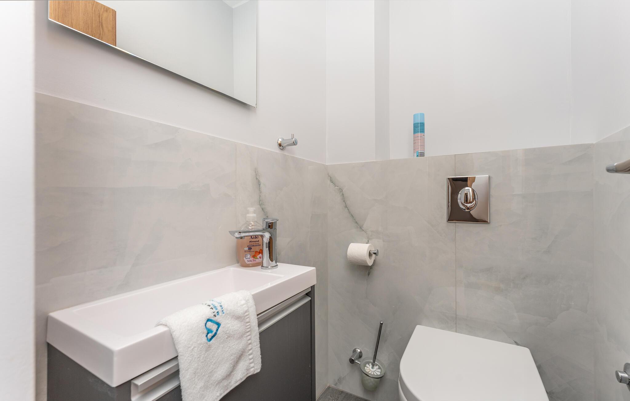 Erleben Sie einen entspannten Urlaub in dieser freundlich eingerichteten Ferienwohnung, die sich ideal für Familien oder Paare eignet. Die Unterkunft liegt in einer ruhigen Wohngegend, nur wenige Schritte vom Meer entfernt, und bietet Ihnen einen guten Ausgangspunkt für erholsame Tage an der dalmatinischen Küste. Treten Sie ein und lassen Sie sich vom hellen, offenen Wohnbereich empfangen. Der Raum ist geschmackvoll gestaltet und bietet zwei gemütliche Sofas, einen Esstisch und einen Fernseher für entspannte Abende. Die Küche ist funktional ausgestattet – ideal, um sich im Urlaub bequem selbst zu versorgen.