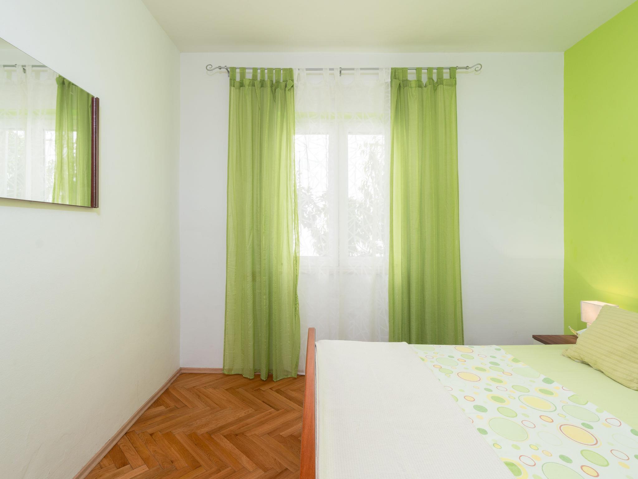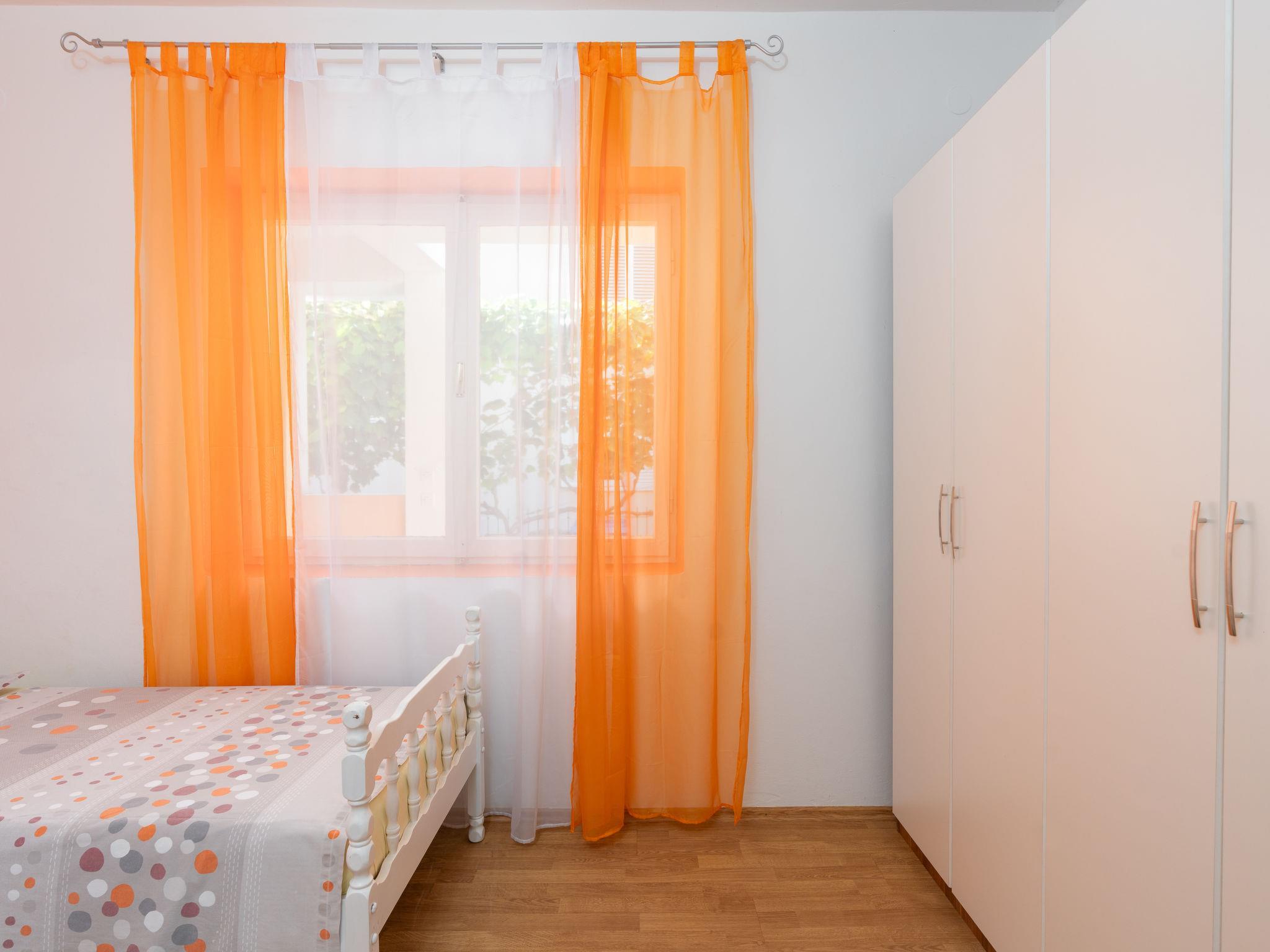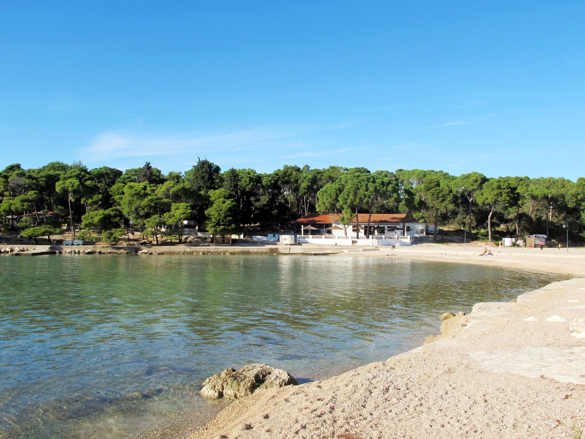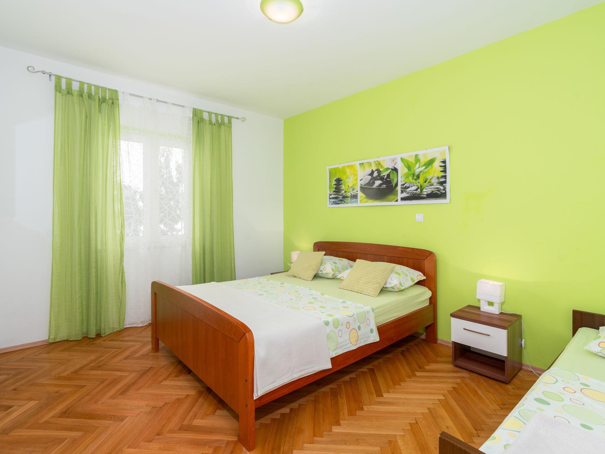 "Vjera", 4-Zimmer-Wohnung 83 m2, im Erdgeschoss. Wohn-/Esszimmer mit Sat-TV und Klimaanlage. Ausgang zur Terrasse. 1 Zimmer mit 1 Bett (90 cm, Länge 200 cm), 1 franz. Bett (160 cm, Länge 200 cm). 1 Zimmer mit 2 Betten (90 cm, Länge 200 cm). 1 Zimmer mit 1 Doppelbett (2 x 90 cm, Länge 200 cm). Offene Küche (1 Kochplatte, Backofen, Geschirrspüler, 3 Flammen, Toaster, Wasserkocher, Mikrowelle, elektrische Kaffeemaschine). Dusche/WC, sep. WC. Keine Heizmöglichkeit. Terrasse 25 m2 teilweise überdacht. Terrassenmöbel, Liegestühle. Zur Verfügung: Waschmaschine. Internet (Wireless LAN, gratis). Bitte beachten: Nichtraucher-Haus.
