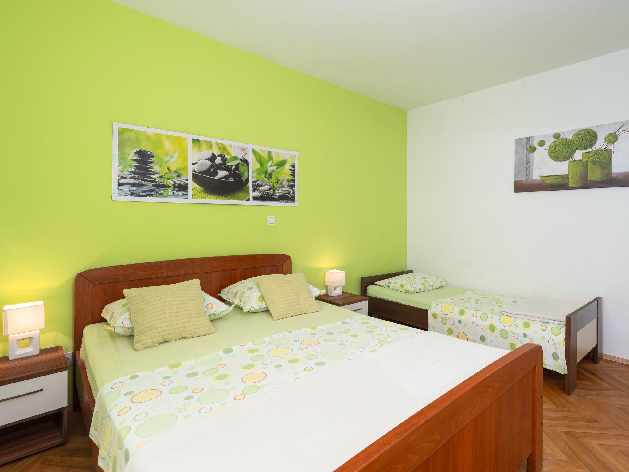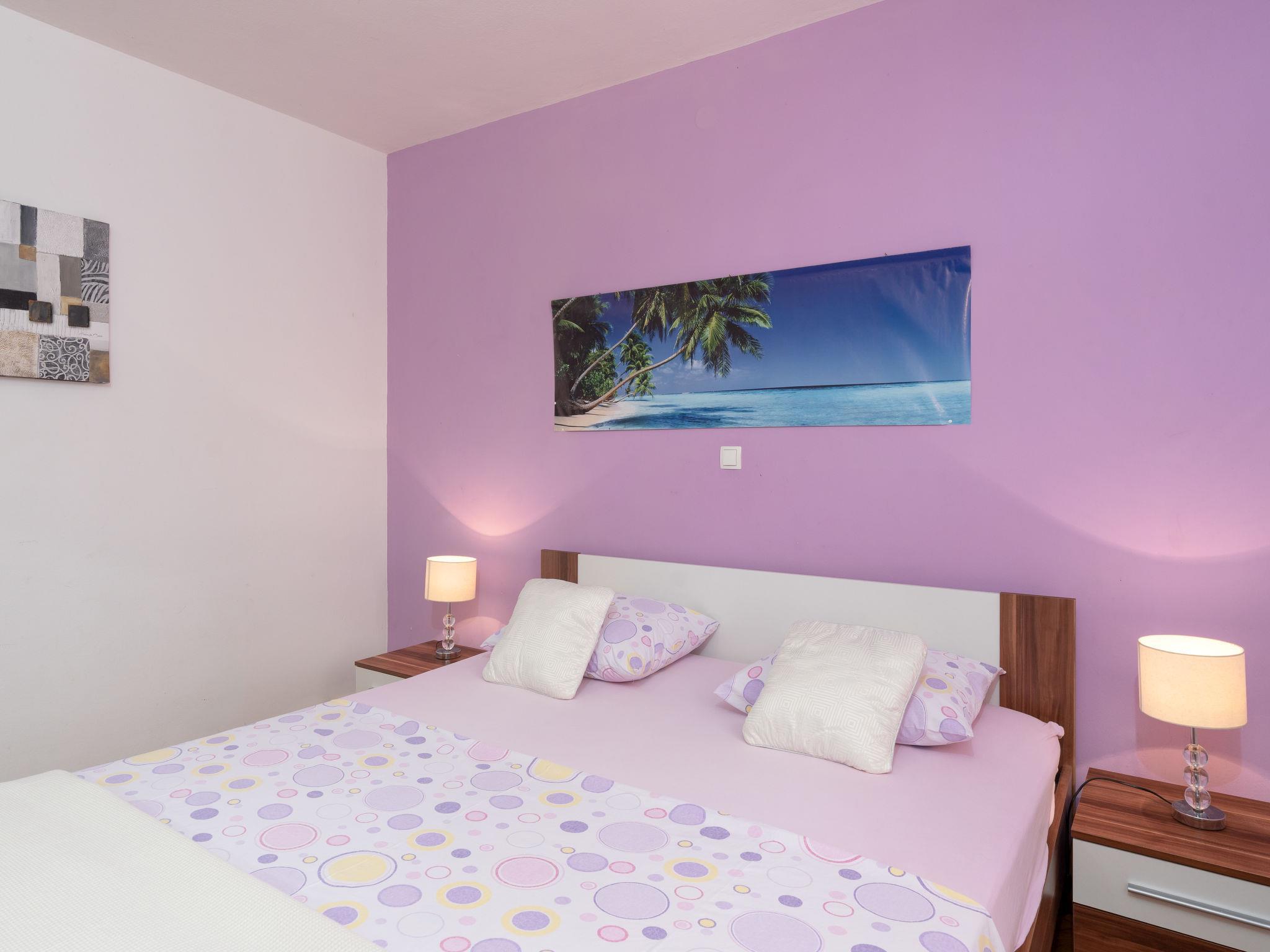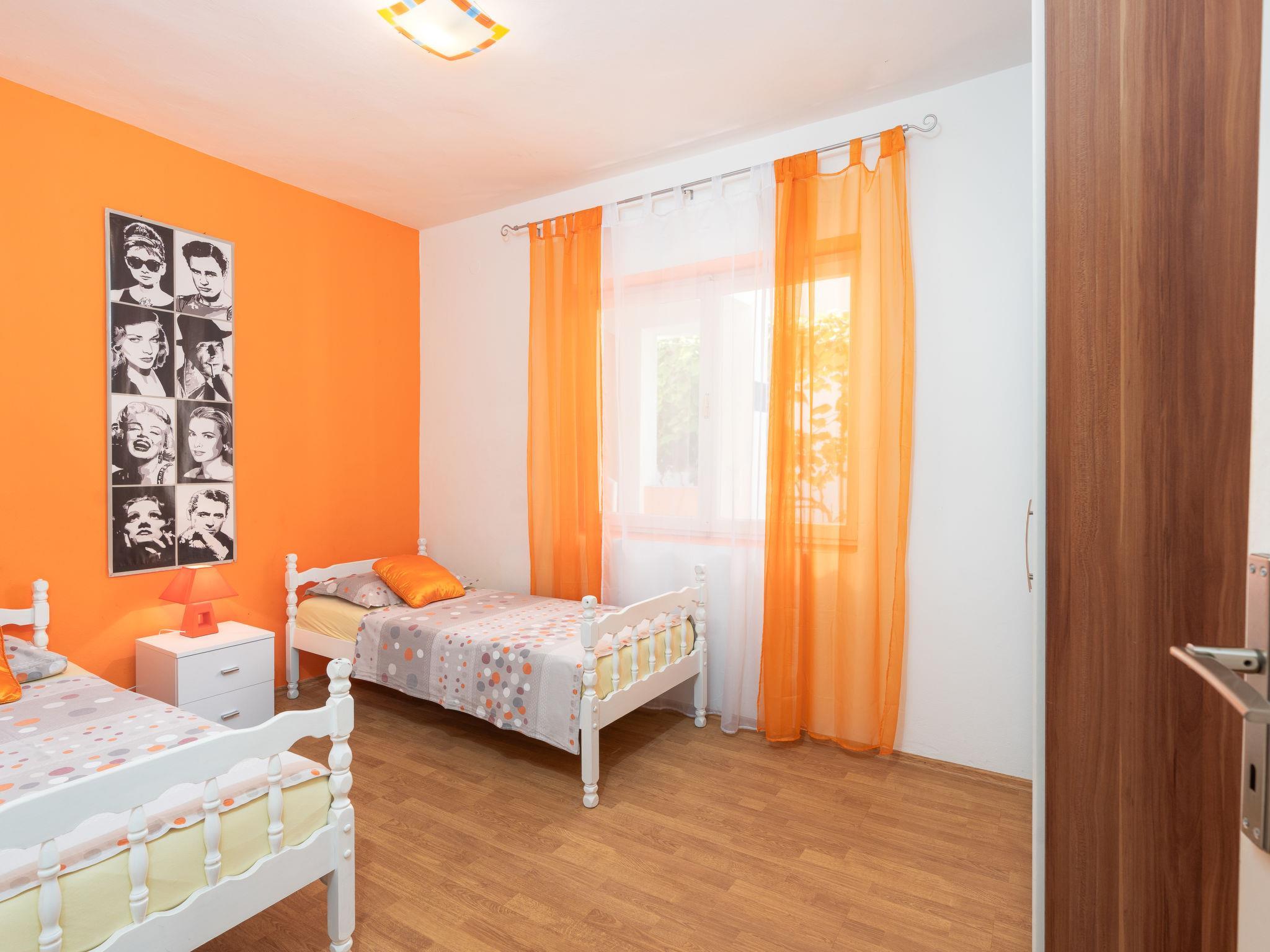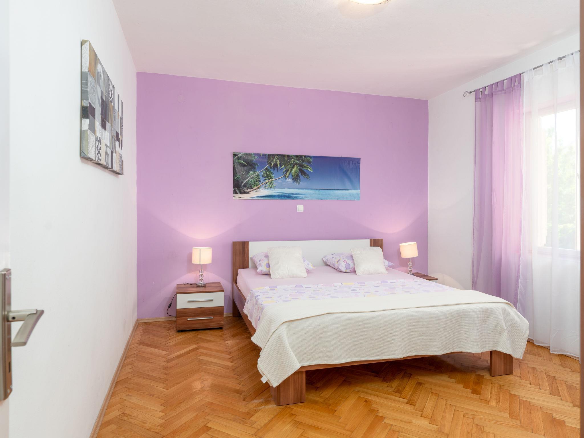 "Vjera", 4-Zimmer-Wohnung 83 m2, im Erdgeschoss. Wohn-/Esszimmer mit Sat-TV und Klimaanlage. Ausgang zur Terrasse. 1 Zimmer mit 1 Bett (90 cm, Länge 200 cm), 1 franz. Bett (160 cm, Länge 200 cm). 1 Zimmer mit 2 Betten (90 cm, Länge 200 cm). 1 Zimmer mit 1 Doppelbett (2 x 90 cm, Länge 200 cm). Offene Küche (1 Kochplatte, Backofen, Geschirrspüler, 3 Flammen, Toaster, Wasserkocher, Mikrowelle, elektrische Kaffeemaschine). Dusche/WC, sep. WC. Keine Heizmöglichkeit. Terrasse 25 m2 teilweise überdacht. Terrassenmöbel, Liegestühle. Zur Verfügung: Waschmaschine. Internet (Wireless LAN, gratis). Bitte beachten: Nichtraucher-Haus.