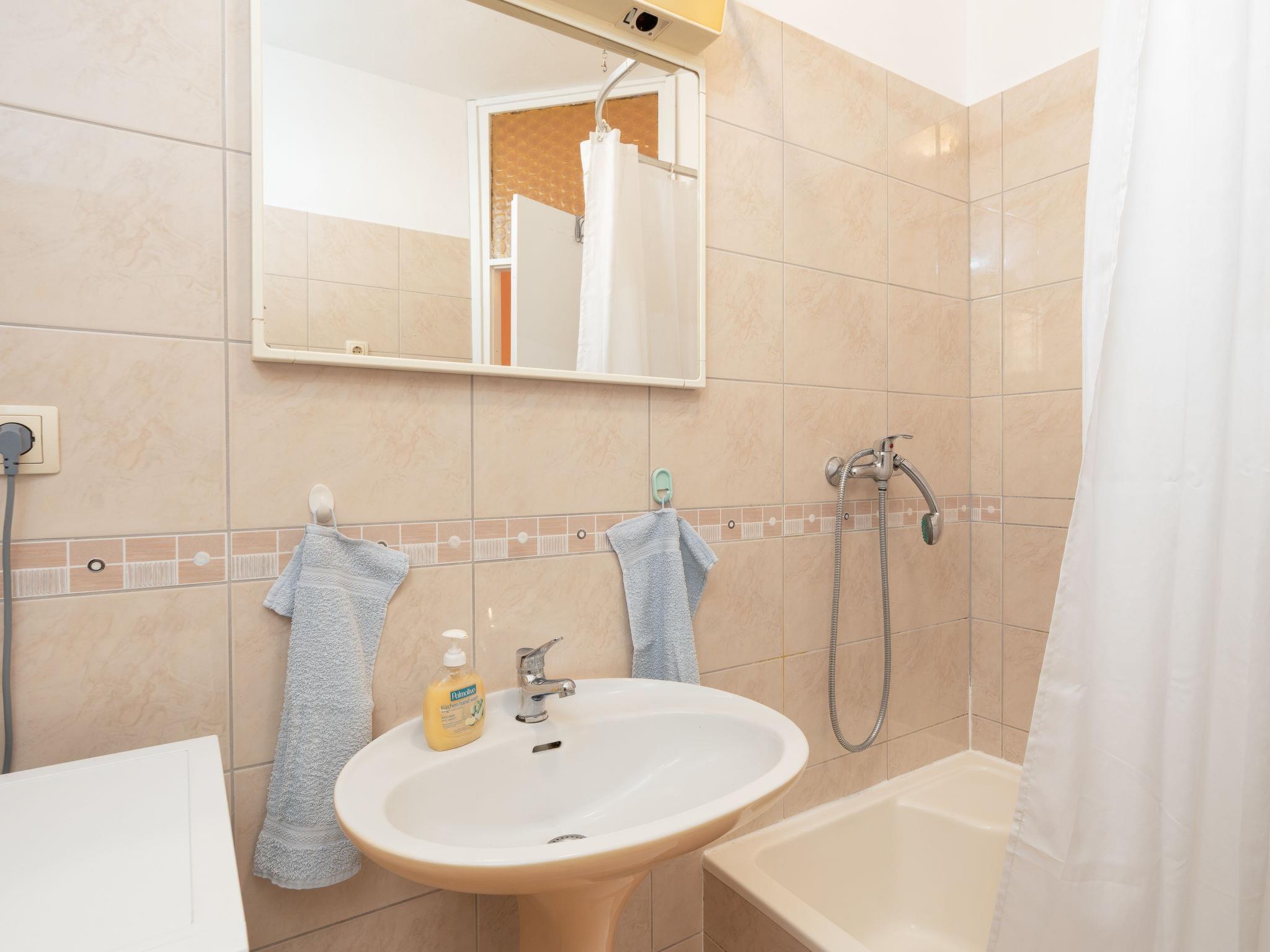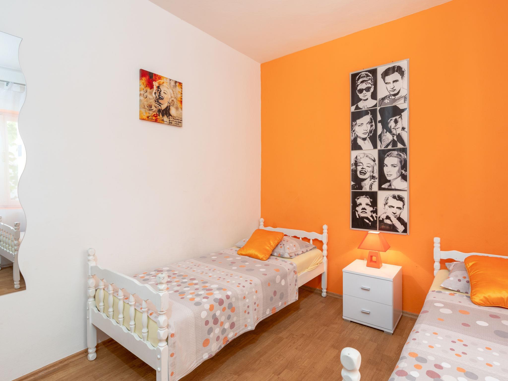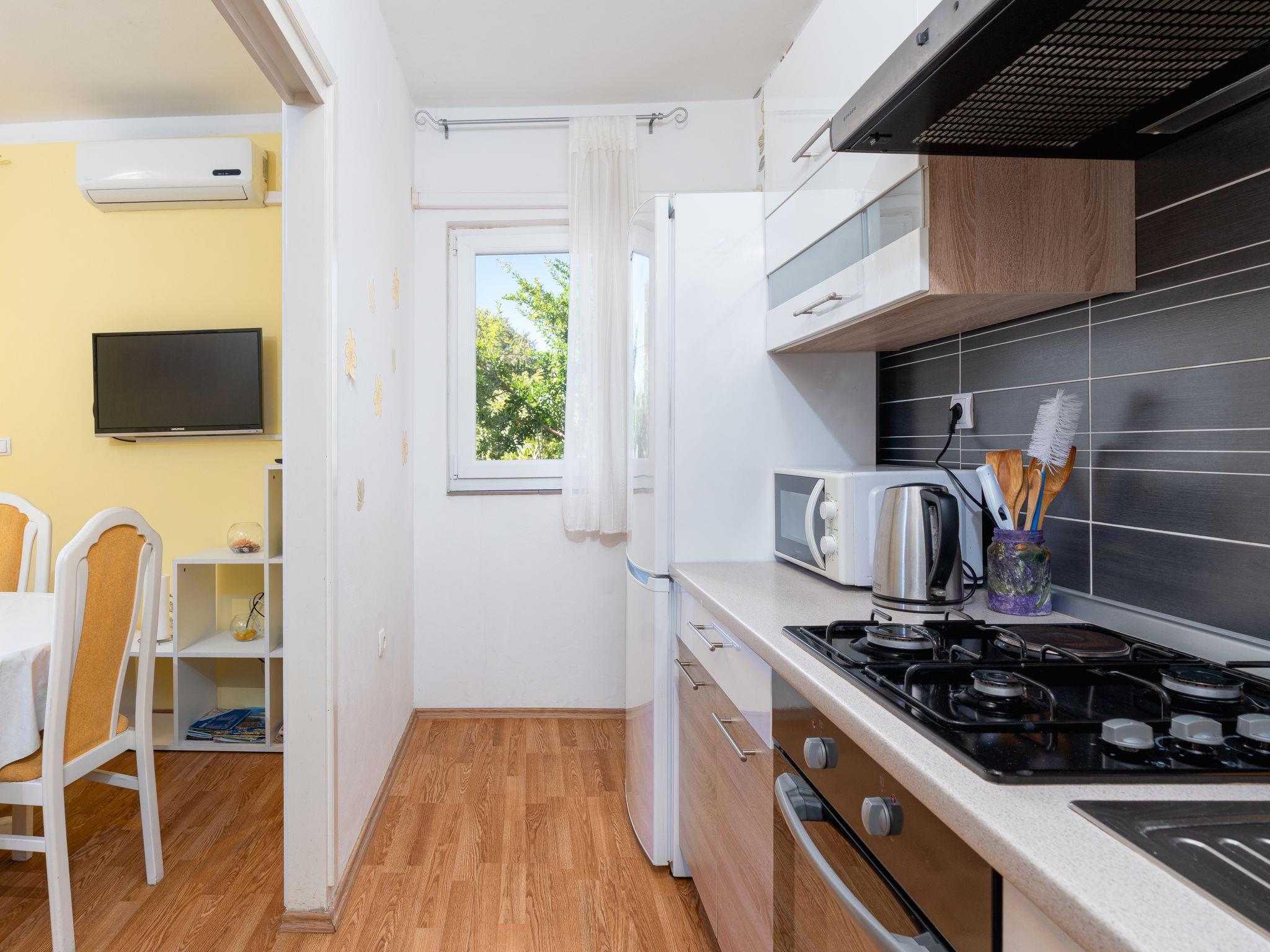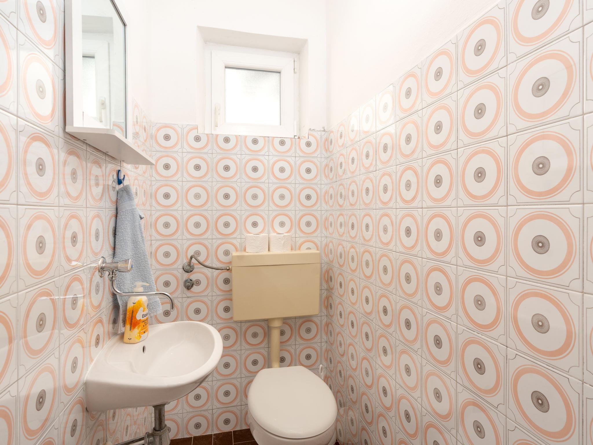 "Vjera", 4-Zimmer-Wohnung 83 m2, im Erdgeschoss. Wohn-/Esszimmer mit Sat-TV und Klimaanlage. Ausgang zur Terrasse. 1 Zimmer mit 1 Bett (90 cm, Länge 200 cm), 1 franz. Bett (160 cm, Länge 200 cm). 1 Zimmer mit 2 Betten (90 cm, Länge 200 cm). 1 Zimmer mit 1 Doppelbett (2 x 90 cm, Länge 200 cm). Offene Küche (1 Kochplatte, Backofen, Geschirrspüler, 3 Flammen, Toaster, Wasserkocher, Mikrowelle, elektrische Kaffeemaschine). Dusche/WC, sep. WC. Keine Heizmöglichkeit. Terrasse 25 m2 teilweise überdacht. Terrassenmöbel, Liegestühle. Zur Verfügung: Waschmaschine. Internet (Wireless LAN, gratis). Bitte beachten: Nichtraucher-Haus.