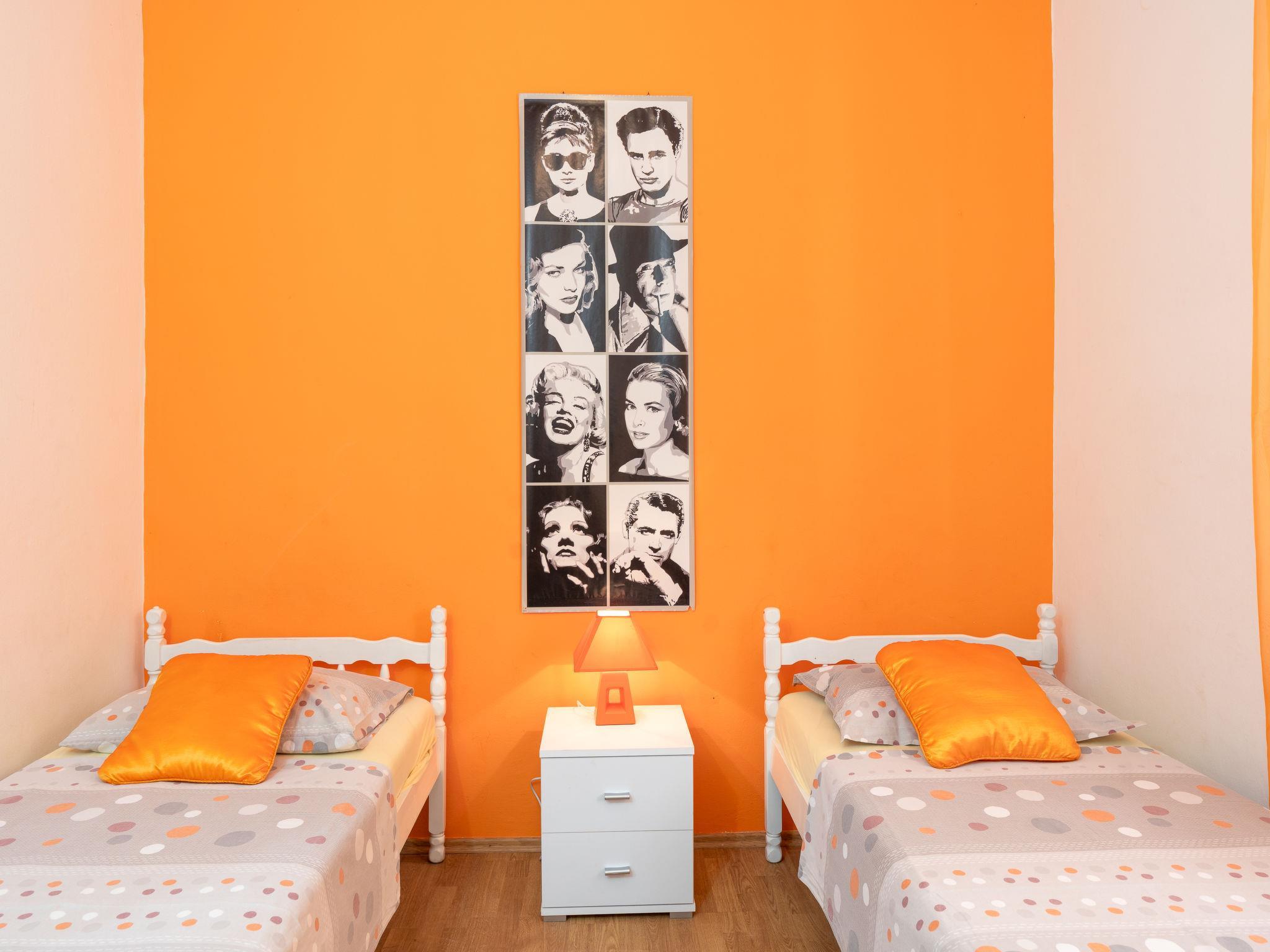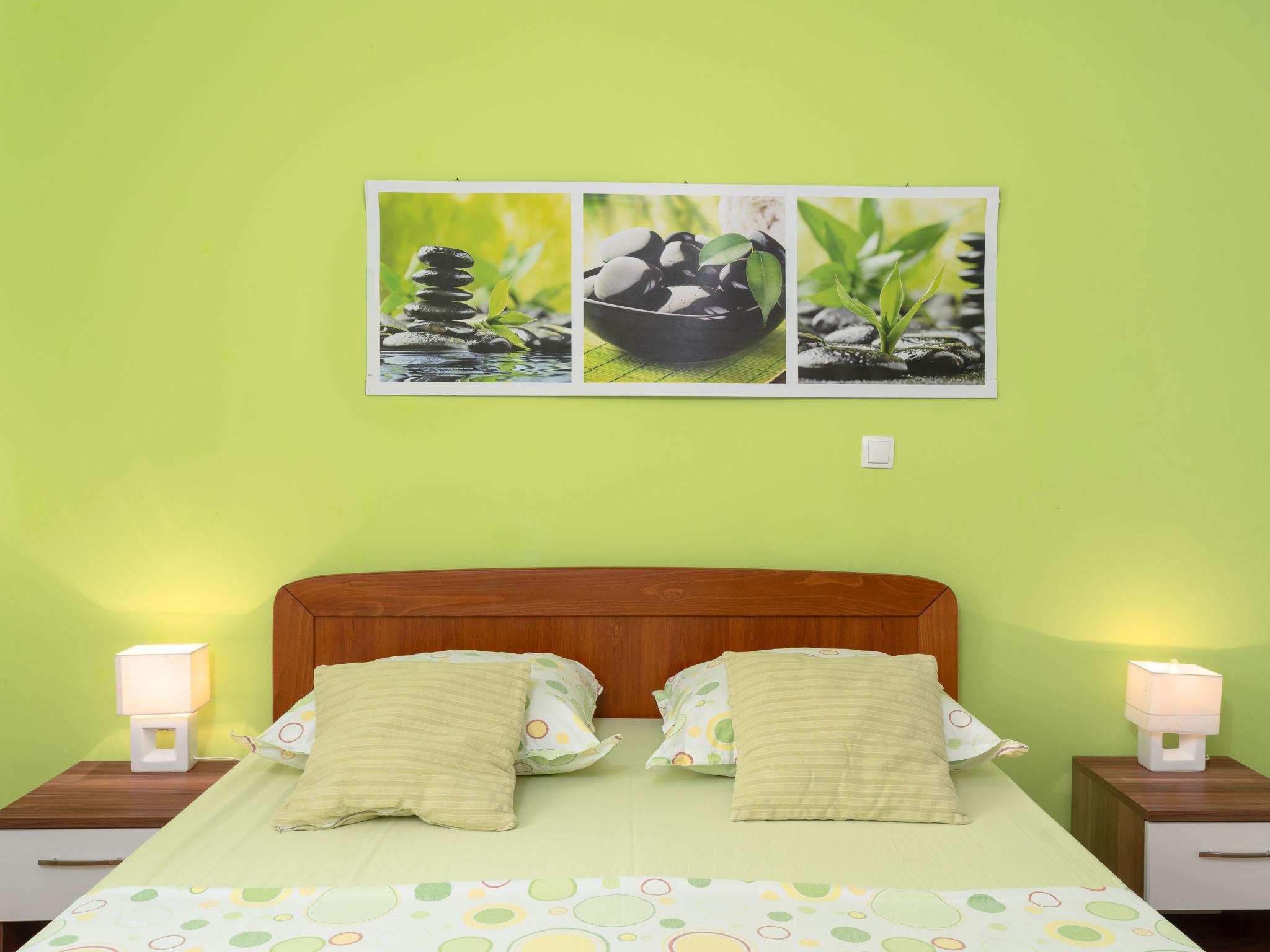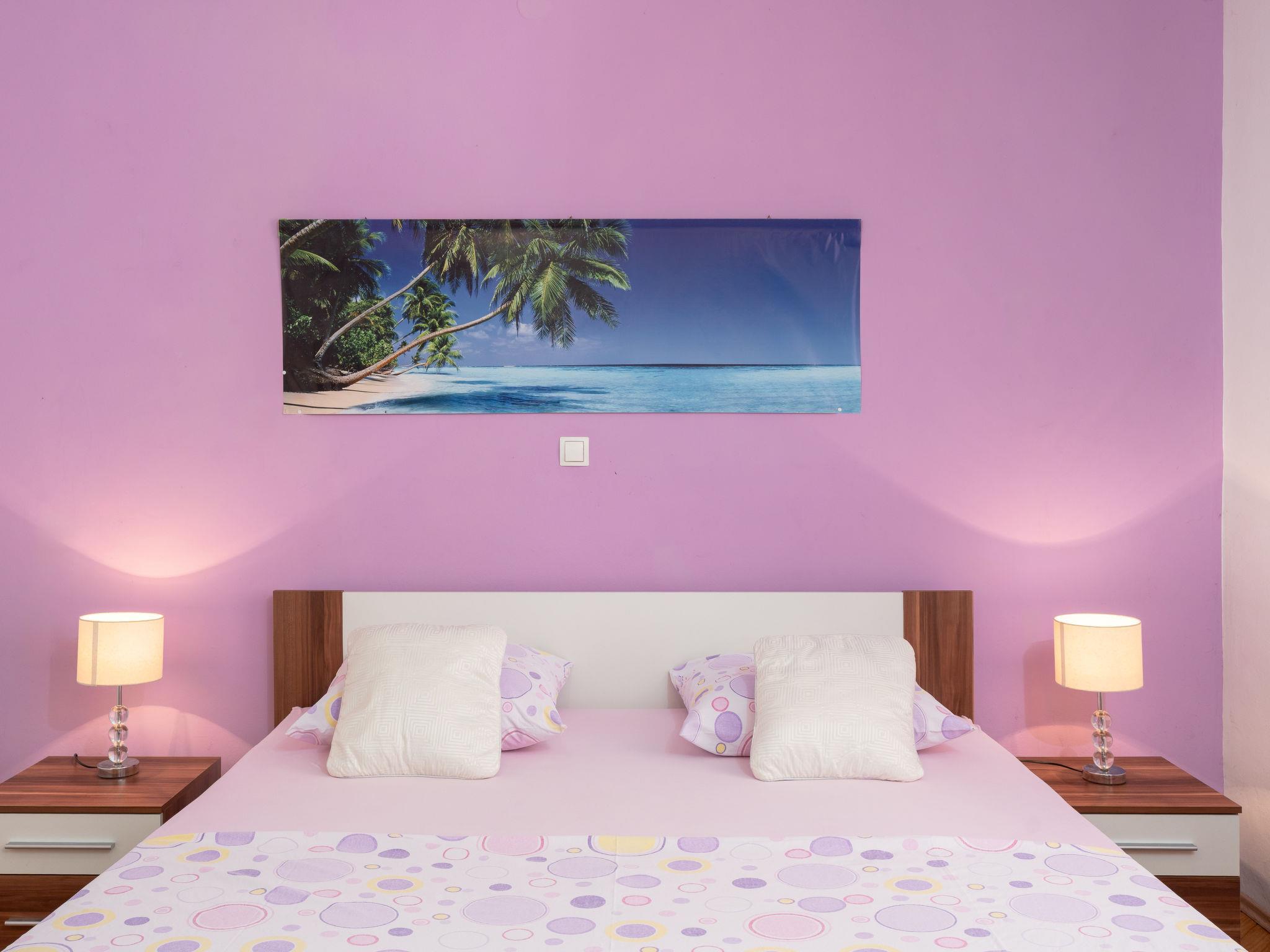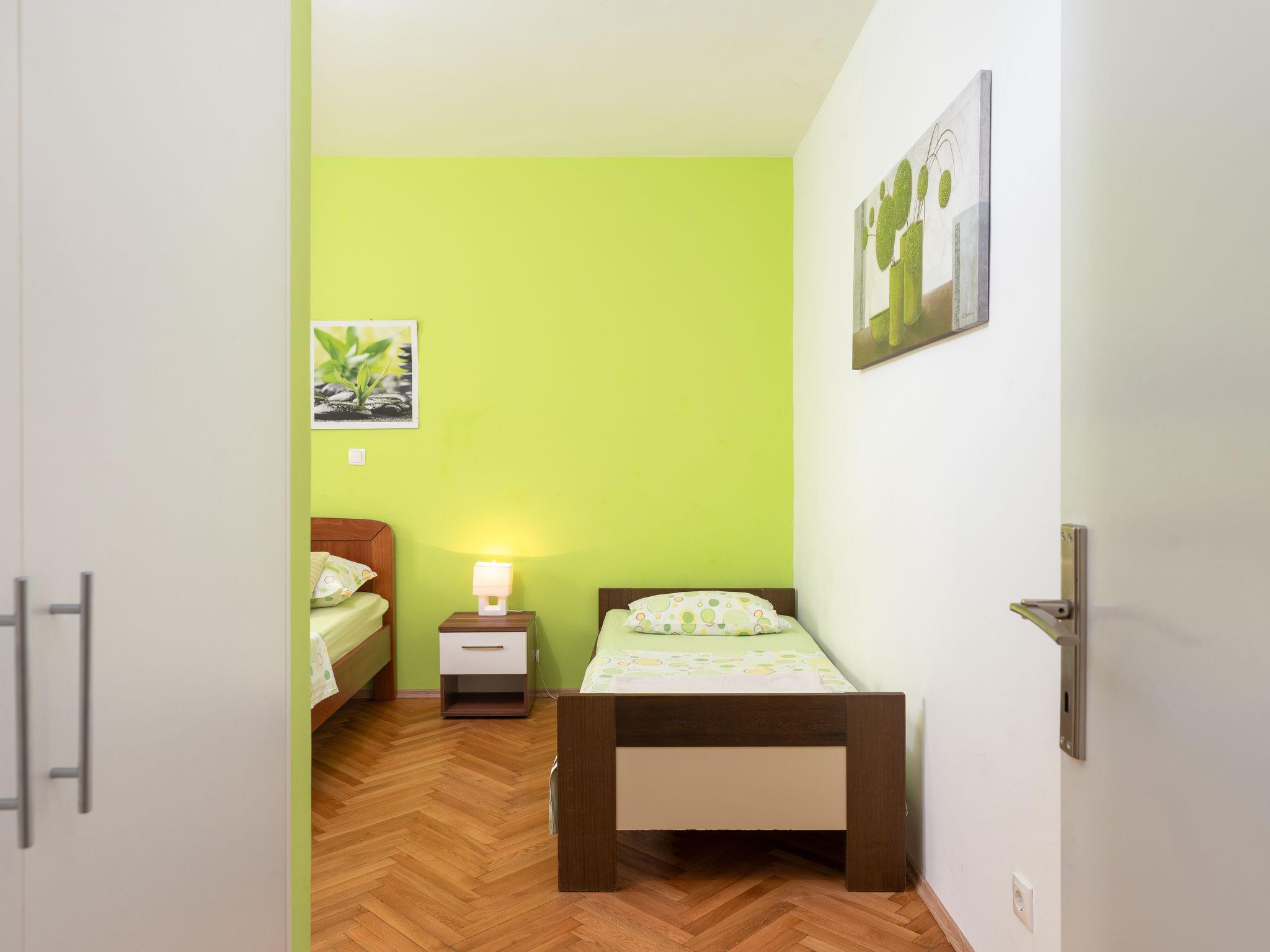 "Vjera", 4-Zimmer-Wohnung 83 m2, im Erdgeschoss. Wohn-/Esszimmer mit Sat-TV und Klimaanlage. Ausgang zur Terrasse. 1 Zimmer mit 1 Bett (90 cm, Länge 200 cm), 1 franz. Bett (160 cm, Länge 200 cm). 1 Zimmer mit 2 Betten (90 cm, Länge 200 cm). 1 Zimmer mit 1 Doppelbett (2 x 90 cm, Länge 200 cm). Offene Küche (1 Kochplatte, Backofen, Geschirrspüler, 3 Flammen, Toaster, Wasserkocher, Mikrowelle, elektrische Kaffeemaschine). Dusche/WC, sep. WC. Keine Heizmöglichkeit. Terrasse 25 m2 teilweise überdacht. Terrassenmöbel, Liegestühle. Zur Verfügung: Waschmaschine. Internet (Wireless LAN, gratis). Bitte beachten: Nichtraucher-Haus.