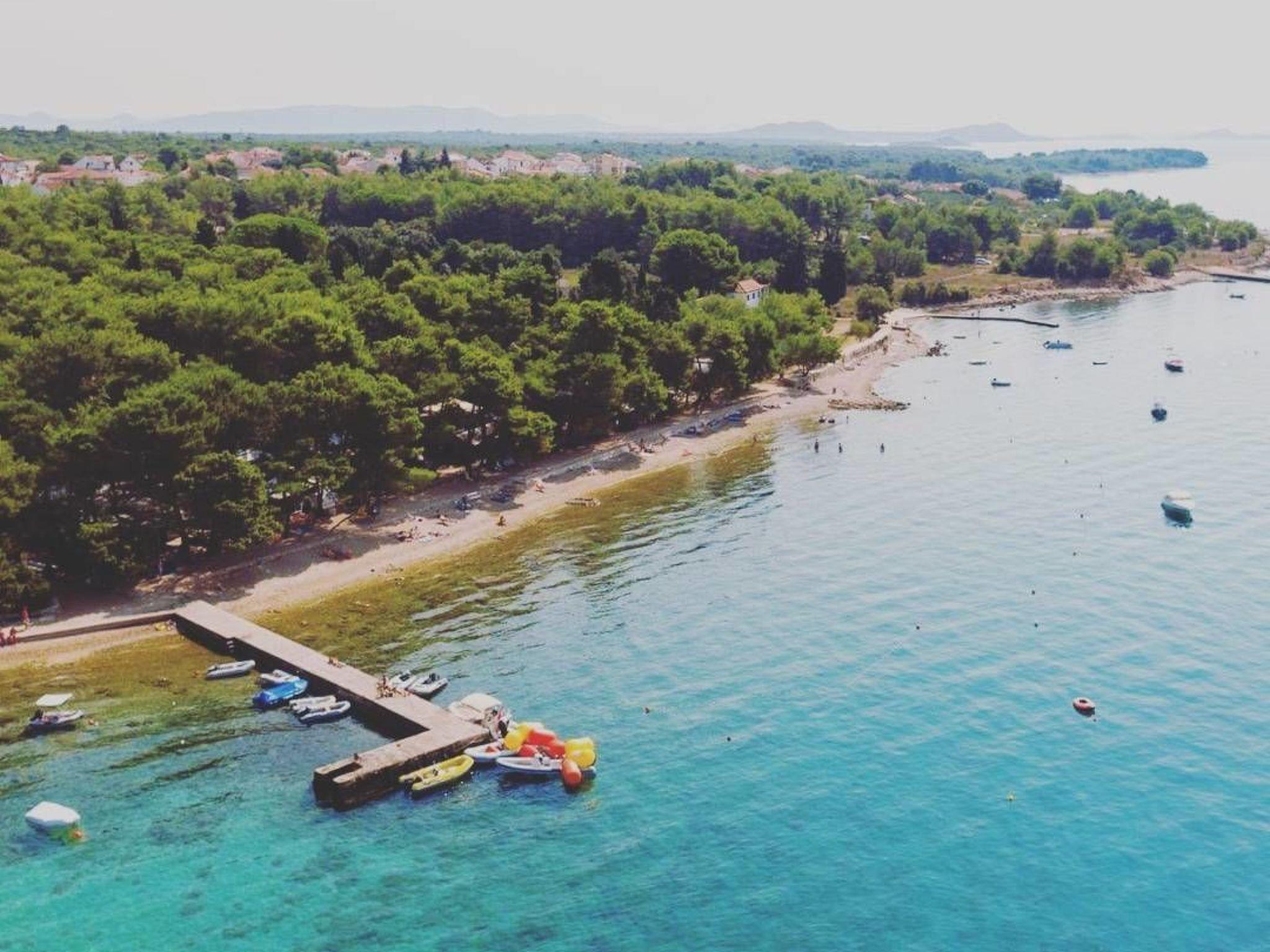 Strand besitzt eine blaue Flagge ( Bezeichnung fur besten Strände in Europa). 80 Meter unterhalb der Wohnung gibt es einen Weg ( nur für Fußgänger), der direkt zur Innenstadt führt. An der Promenade gibt es viele Geschäfte, Restaurants und schöne Strände. Entfernung zur Autobahn 15 km und zum Flughafen Zadar 20 km.