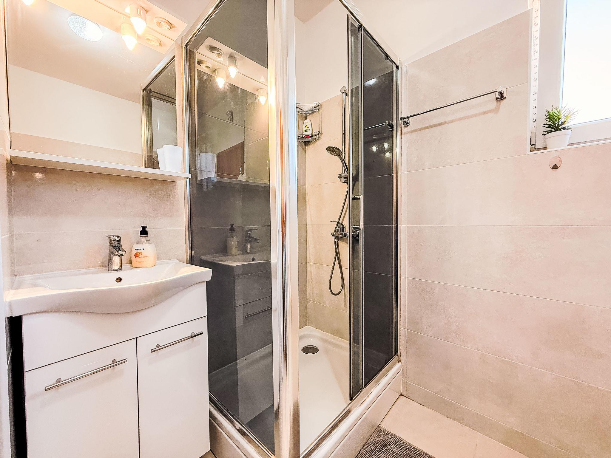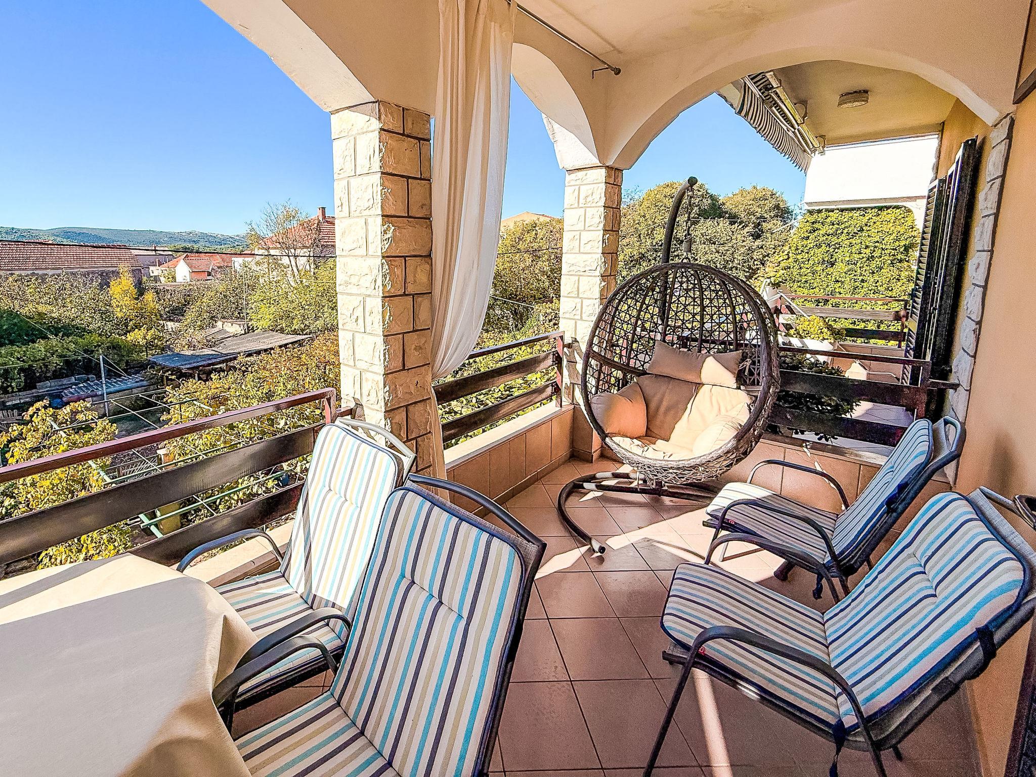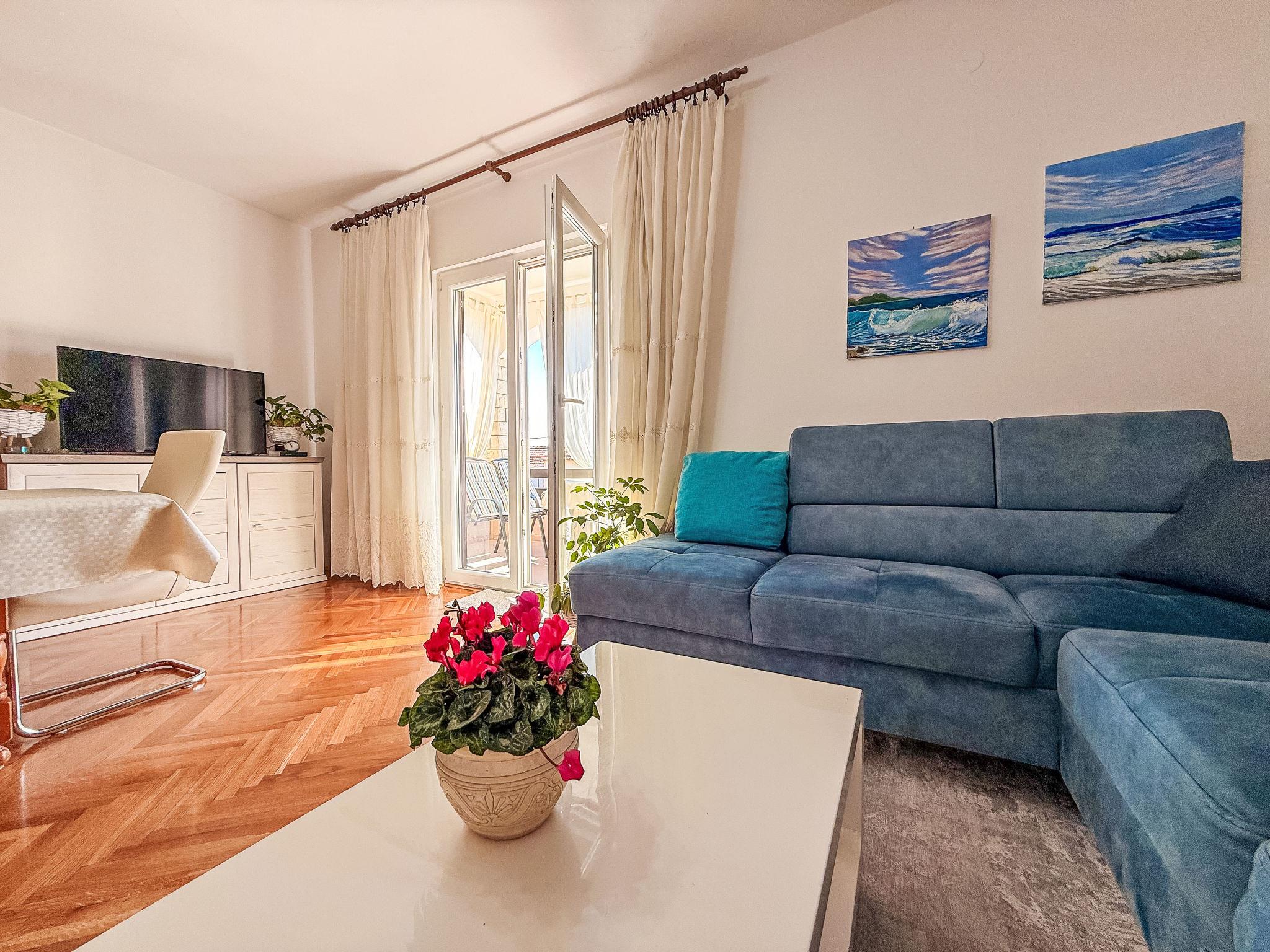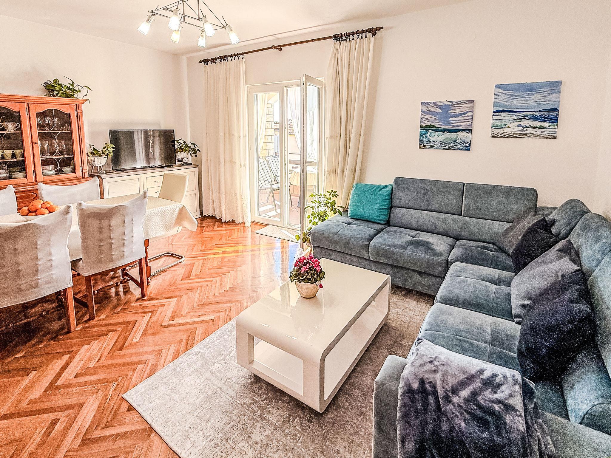 "Ana", 4-Zimmer-Wohnung 100 m2 im 1. Stock. Wohn-/Esszimmer mit Sat-TV und Klimaanlage. Ausgang zum Balkon. 1 Zimmer mit 1 Bett (90 cm, Länge 200 cm), 1 franz. Bett (180 cm, Länge 200 cm). Ausgang zum Balkon. 1 Zimmer mit 1 franz. Bett (160 cm, Länge 200 cm). 1 Zimmer mit 1 franz. Bett (160 cm, Länge 200 cm). Offene Küche (1 Kochplatte, Backofen, 3 Flammen, Toaster, Wasserkocher, Mikrowelle, Tiefkühler, elektrische Kaffeemaschine). Dusche/WC, sep. WC. Keine Heizmöglichkeit. Balkon 10 m2. Balkonmöbel. Zur Verfügung: Waschmaschine (extra). Internet (WLAN, gratis). Bitte beachten: Nichtraucher-Haus.