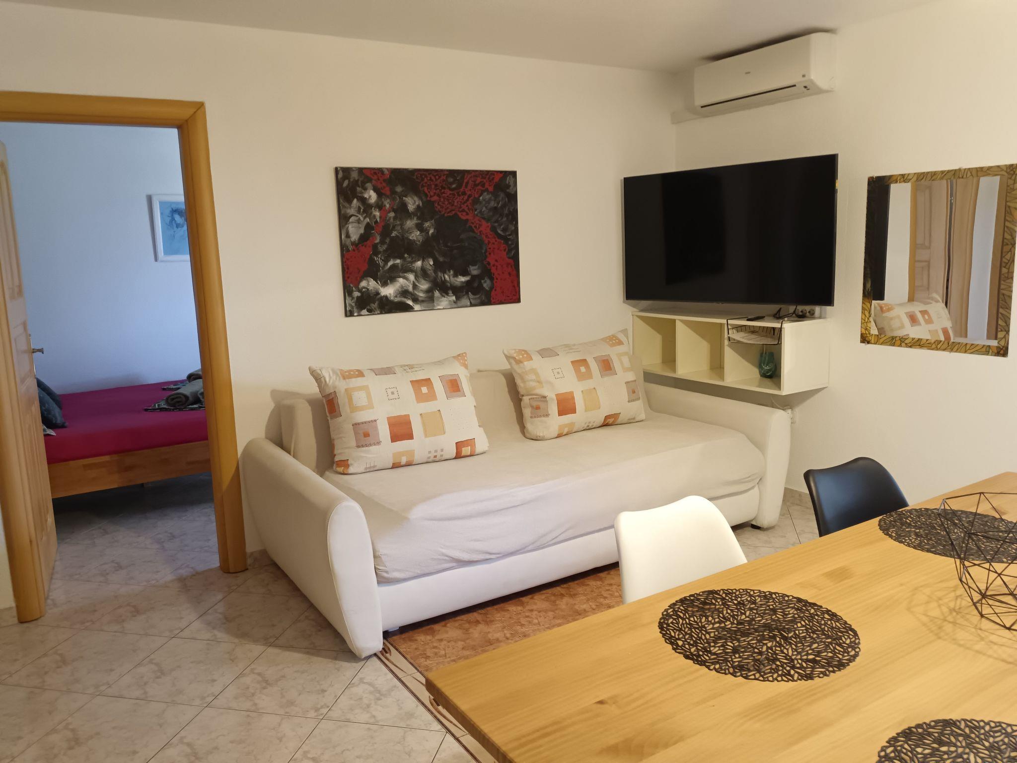 Im Inneren erstreckt sich das Apartment über eine großzügige Fläche von 50 m2, die reichlich Platz für Entspannung und Freizeit bietet. Die gut ausgestattete Küche lässt keine Wünsche offen und sorgt dafür, dass die Zubereitung von Mahlzeiten mühelos und angenehm ist. Die Essecke mit einem gemütlichen Schlafsofa lädt zum Entspannen in einer komfortablen Umgebung ein. Darüber hinaus ist die Wohnung mit den wichtigsten Annehmlichkeiten ausgestattet, darunter Sat-TV, WIFI und Klimaanlage in einem Teil des Raumes, die alle dazu dienen, Ihren Aufenthalt zu verbessern. Ein Ventilator ist ebenfalls vorhanden, um Ihren Komfort an wärmeren Tagen zu gewährleisten.