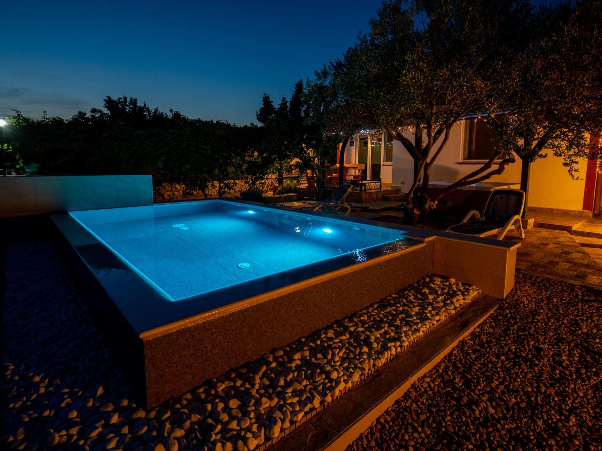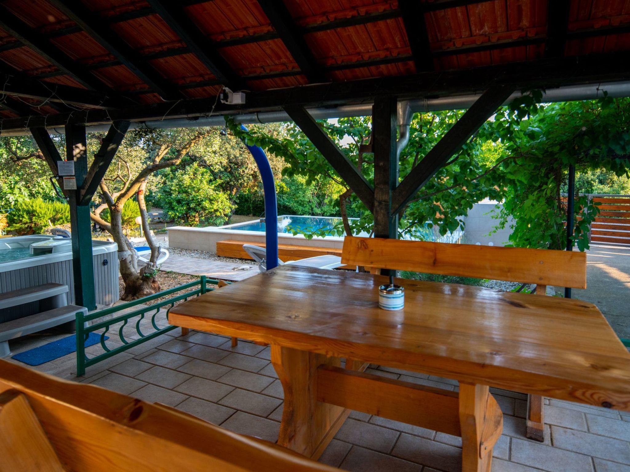 Im Außenbereich gibt es einen privaten Pool, der zu einem erfrischenden Bad in der Sonne einlädt. Der gepflegte Garten lädt zu gemütlichen Nachmittagen ein, und ein Grillplatz steht bereit, um Ihre Lieblingsgerichte zu grillen. Die Kinder können in der Sicherheit des Gartens spielen, während die Erwachsenen auf der Terrasse oder der exklusiven Dachterrasse das warme dalmatinische Klima in aller Ruhe genießen können.