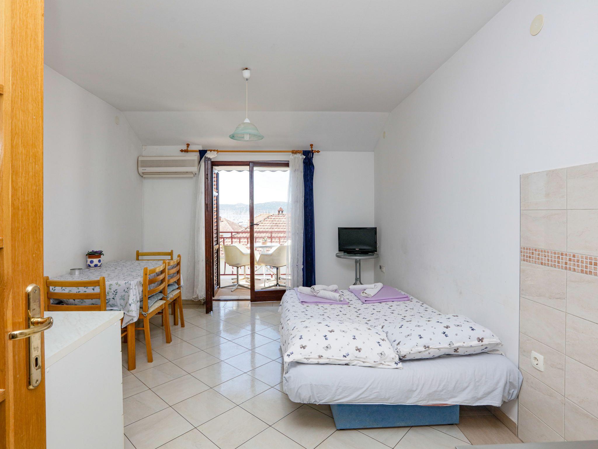 Ferienwohnung bietet Platz für 4 Gäste. Die Betten sind in Schlafzimmern, die es 1 gibt, und in Wohnzimmer, innerhalb einer Gesamtfläche von 29m2, angeordnet. Die Gäste haben eine eigene Terrasse zur Verfügung, auf der sie in warmen Sommernächten genießen können. Das Apartment bietet Meerblick. Es ist erlaubt, Speisen auf dem Gemeinschafts-Grill vorzubereiten. IM PREIS INBEGRIFFEN: Kurtaxe, Endreinigung, Klimatisierung, Parkplatz, Internet, Kinderbett, Bügeleisen, Bügelbrett, Föhn. VERBINDLICHE ZUSÄTZLICHE KOSTEN: Aufzahlung für Kurzaufenthalte (prozentualer Zuschlag pro Nächtigungsanzahl: 30% - 1, 20% - 2, 10% - 3). UNVERBINDLICHE ZUSÄTZLICHE KOSTEN: Zusatzbett (5,00 € pro Nacht). Die Verfügbarkeit zusätzlicher Dienstleistungen in Ihrem reservierten Termin und die Preise derselben (falls nicht aufgeführt) müssen im Voraus überprüft werden. Zusätzliche Dienstleistungen die in der Zahlungsaufforderung nicht aufgeführt sind werden direkt beim Vermieter bezahlt, angenommen der Gast nutzt auch diese.