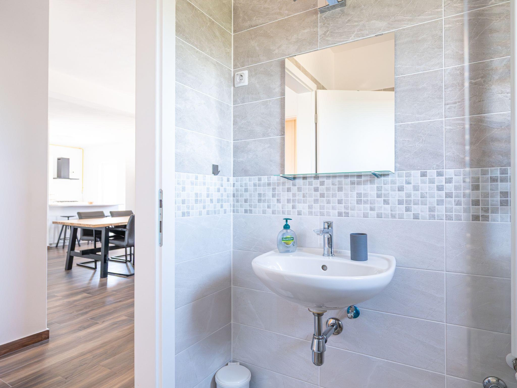 Ferienwohnung bietet Platz für 8 Gäste. Die Betten sind in Schlafzimmern, die es 3 gibt, und in Wohnzimmer, innerhalb einer Gesamtfläche von 86m2, angeordnet. Die Gäste haben eine eigene Terrasse zur Verfügung, auf der sie in warmen Sommernächten genießen können. Es ist erlaubt, Speisen auf dem Gemeinschafts-Grill vorzubereiten. IM PREIS INBEGRIFFEN: Kurtaxe, Endreinigung, Klimatisierung, Parkplatz, Internet, Kinderbett, Föhn. VERBINDLICHE ZUSÄTZLICHE KOSTEN: Aufzahlung für Kurzaufenthalte (prozentualer Zuschlag pro Nächtigungsanzahl: 30% - 1, 20% - 2, 10% - 3). UNVERBINDLICHE ZUSÄTZLICHE KOSTEN: Zentralheizung (5,00 € pro Nacht). Die Verfügbarkeit zusätzlicher Dienstleistungen in Ihrem reservierten Termin und die Preise derselben (falls nicht aufgeführt) müssen im Voraus überprüft werden. Zusätzliche Dienstleistungen die in der Zahlungsaufforderung nicht aufgeführt sind werden direkt beim Vermieter bezahlt, angenommen der Gast nutzt auch diese. Ermäßigung auf den Grundpreis: Gratistag 14=13 (bei einem Aufenthalt von 14 Tagen oder mehr erhalten Sie einen Gratistag für den Aufenthalt bis 31.12.26).