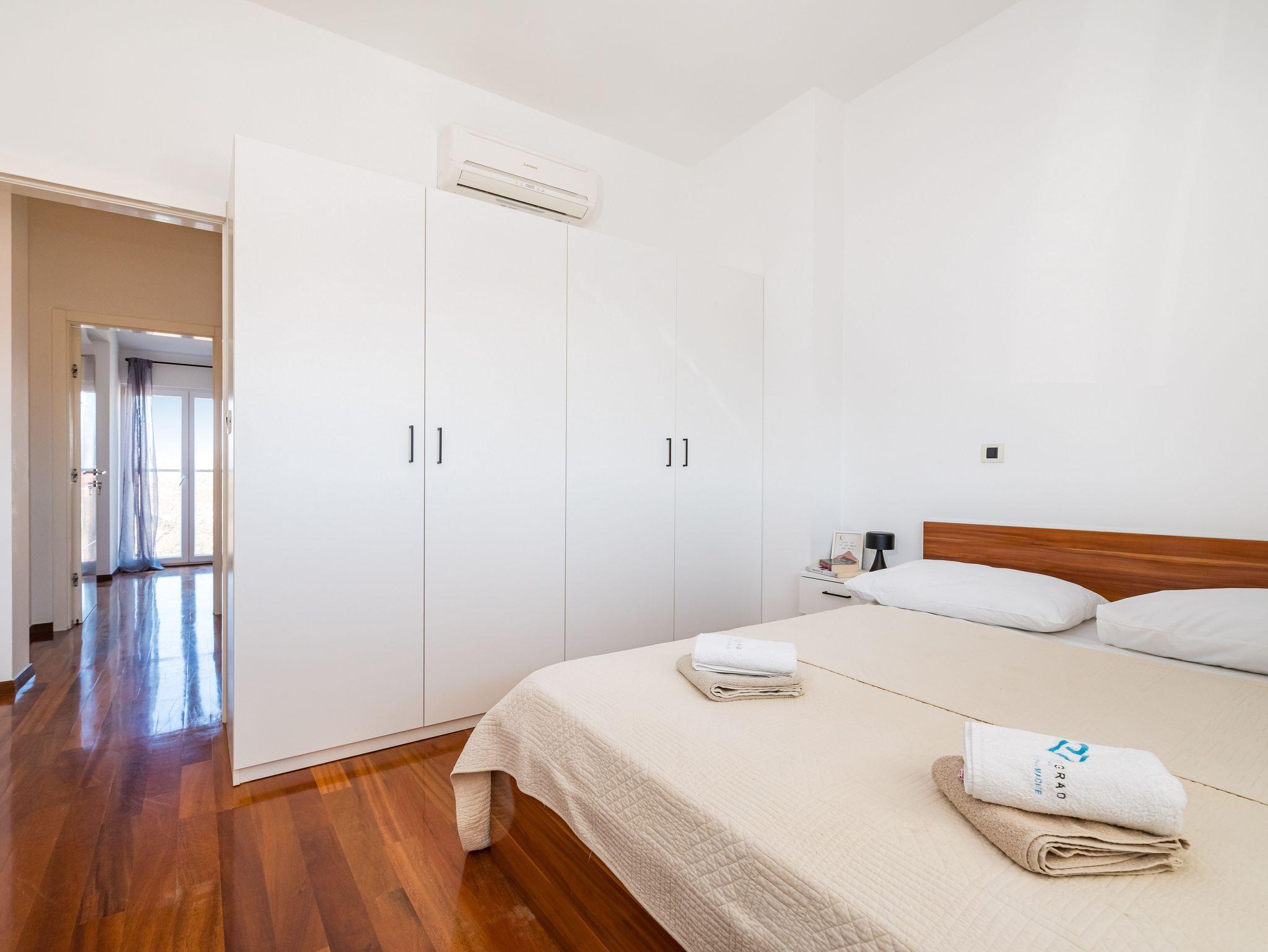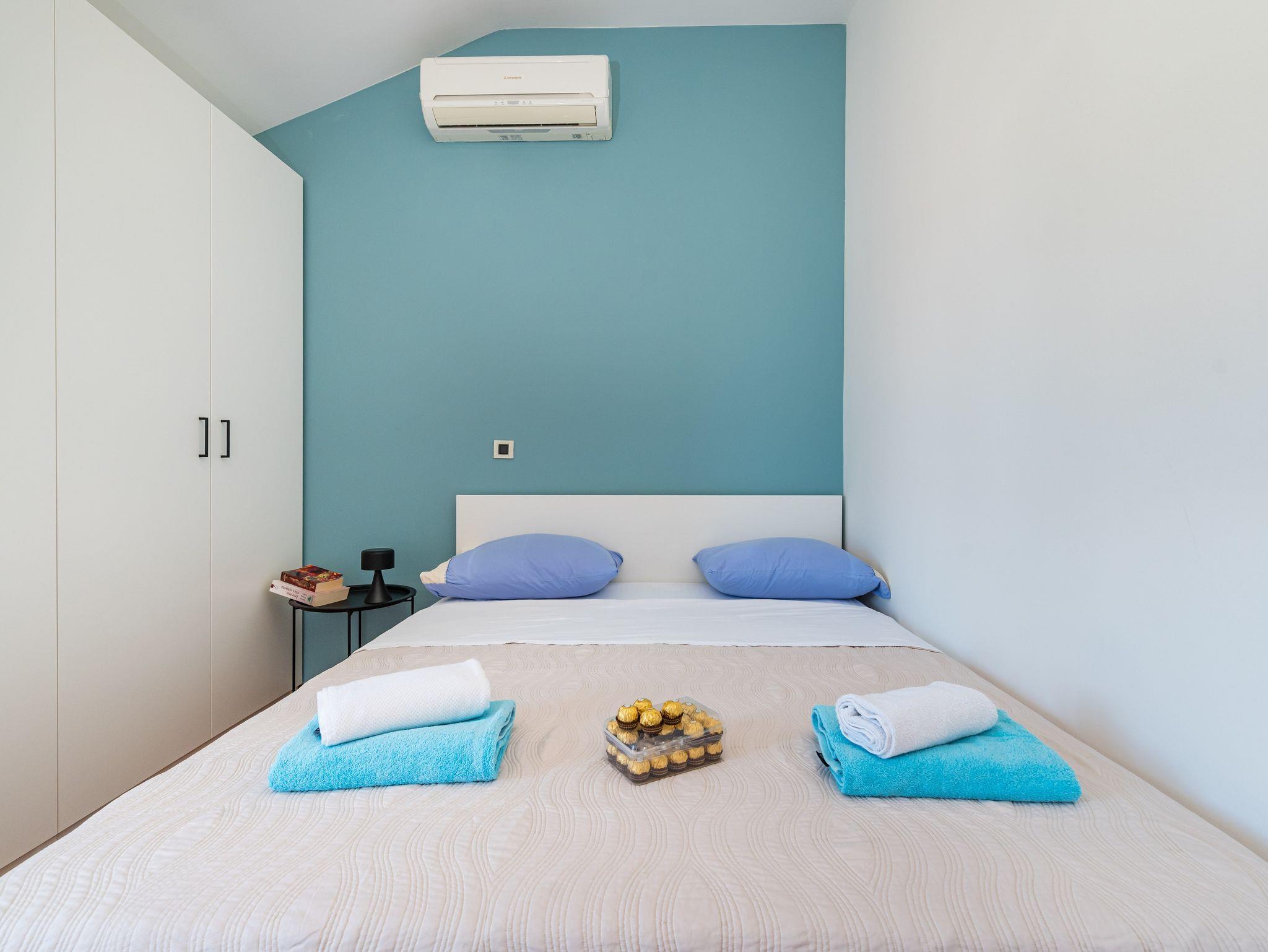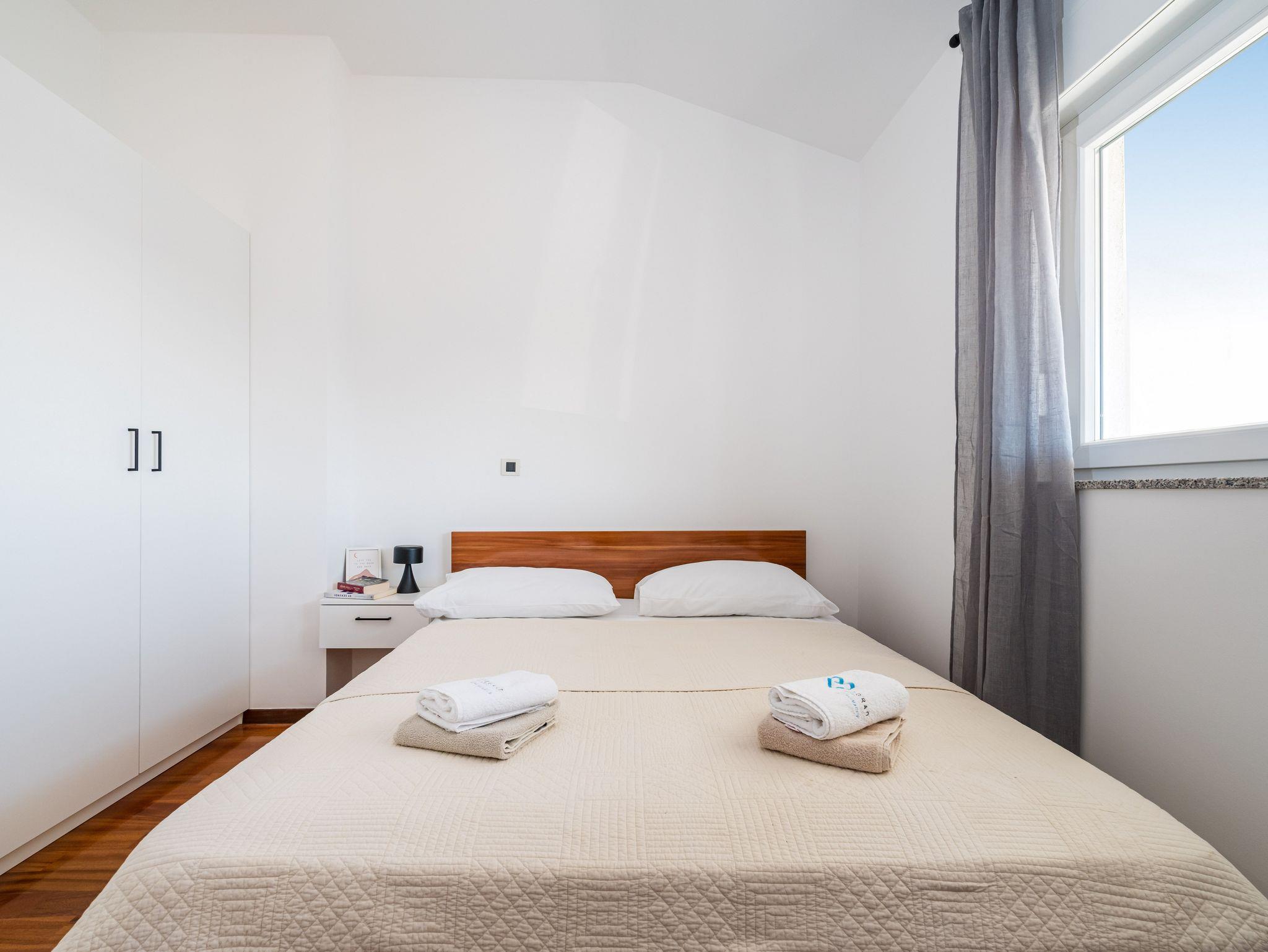Ferienwohnung bietet Platz für 6 Gäste. Die Betten sind in Schlafzimmern, die es 2 gibt, und in Wohnzimmer, innerhalb einer Gesamtfläche von 46m2, angeordnet. Die Gäste haben einen eigenen Balkon zur Verfügung, auf der sie in warmen Sommernächten genießen können. Das Apartment bietet Meerblick. IM PREIS INBEGRIFFEN: Kurtaxe, Endreinigung, Klimatisierung, Parkplatz, Internet, Bügeleisen, Bügelbrett, Föhn. Die Verfügbarkeit zusätzlicher Dienstleistungen in Ihrem reservierten Termin und die Preise derselben (falls nicht aufgeführt) müssen im Voraus überprüft werden. Zusätzliche Dienstleistungen die in der Zahlungsaufforderung nicht aufgeführt sind werden direkt beim Vermieter bezahlt, angenommen der Gast nutzt auch diese. Ermäßigung auf den Grundpreis: Gratistag 14=13 (bei einem Aufenthalt von 14 Tagen oder mehr erhalten Sie einen Gratistag für den Aufenthalt bis 31.12.25).