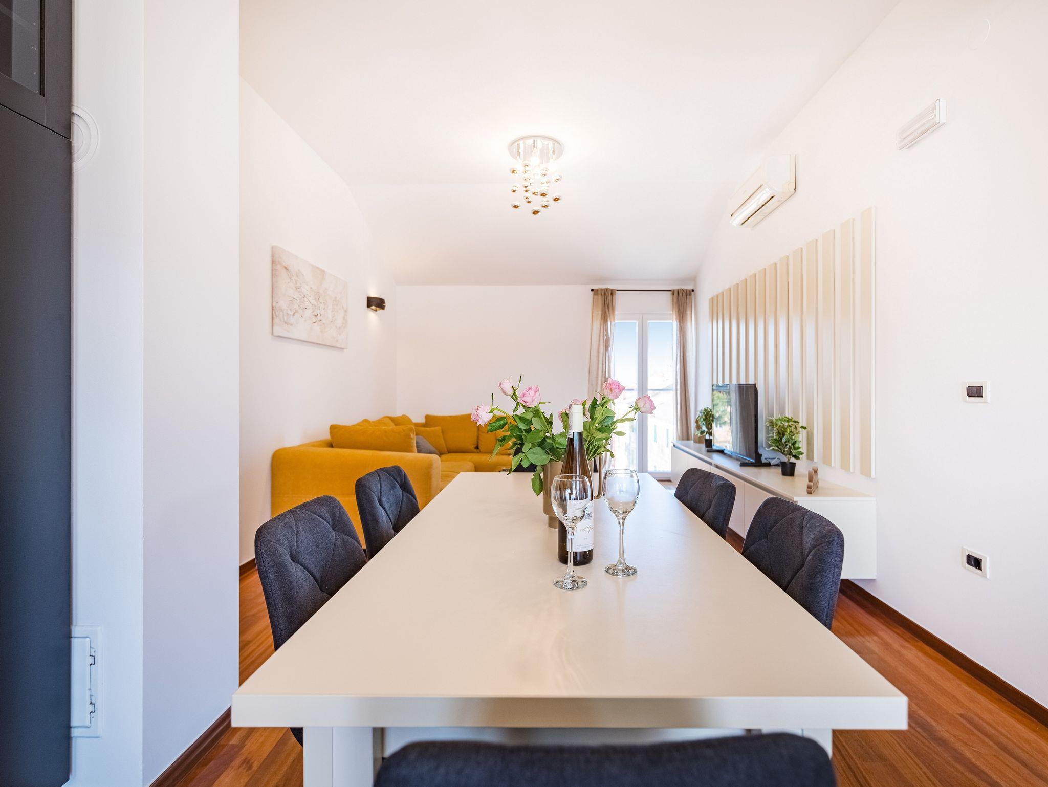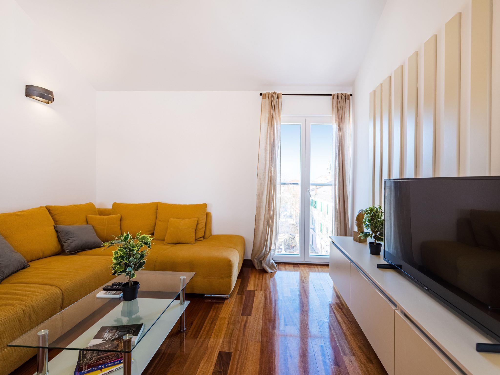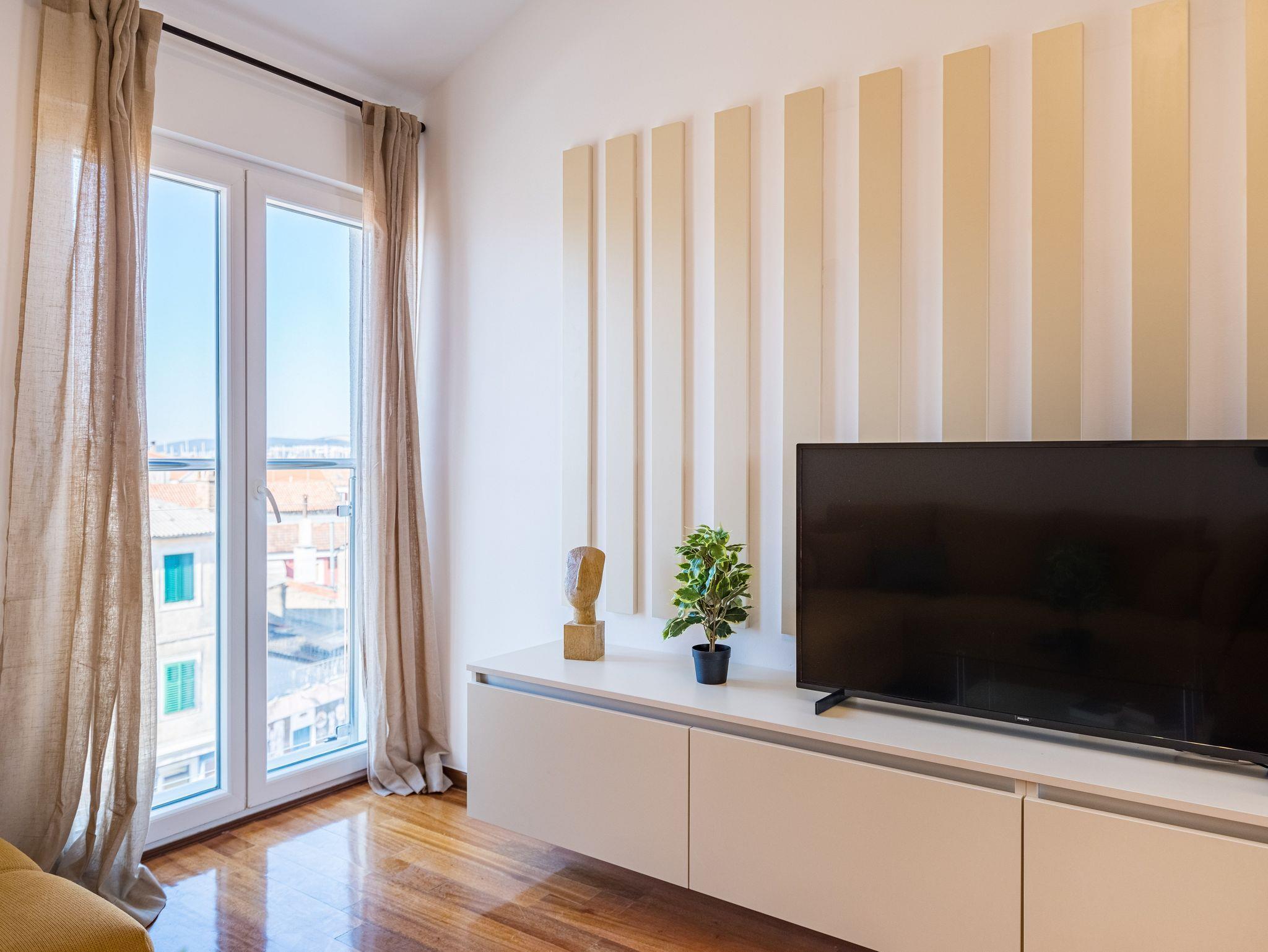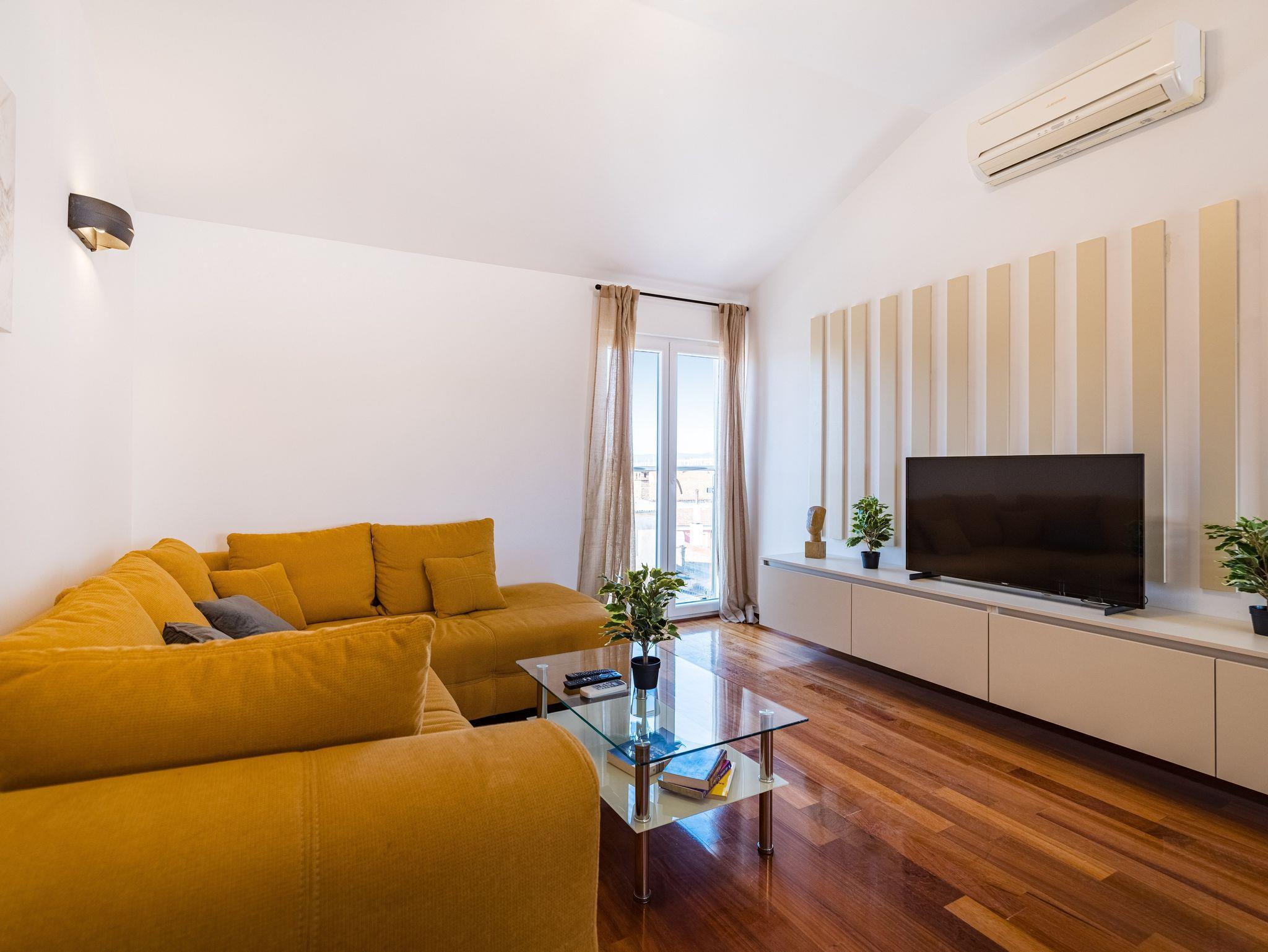 Ferienwohnung bietet Platz für 6 Gäste. Die Betten sind in Schlafzimmern, die es 2 gibt, und in Wohnzimmer, innerhalb einer Gesamtfläche von 46m2, angeordnet. Die Gäste haben einen eigenen Balkon zur Verfügung, auf der sie in warmen Sommernächten genießen können. Das Apartment bietet Meerblick. IM PREIS INBEGRIFFEN: Kurtaxe, Endreinigung, Klimatisierung, Parkplatz, Internet, Bügeleisen, Bügelbrett, Föhn. Die Verfügbarkeit zusätzlicher Dienstleistungen in Ihrem reservierten Termin und die Preise derselben (falls nicht aufgeführt) müssen im Voraus überprüft werden. Zusätzliche Dienstleistungen die in der Zahlungsaufforderung nicht aufgeführt sind werden direkt beim Vermieter bezahlt, angenommen der Gast nutzt auch diese. Ermäßigung auf den Grundpreis: Gratistag 14=13 (bei einem Aufenthalt von 14 Tagen oder mehr erhalten Sie einen Gratistag für den Aufenthalt bis 31.12.25).