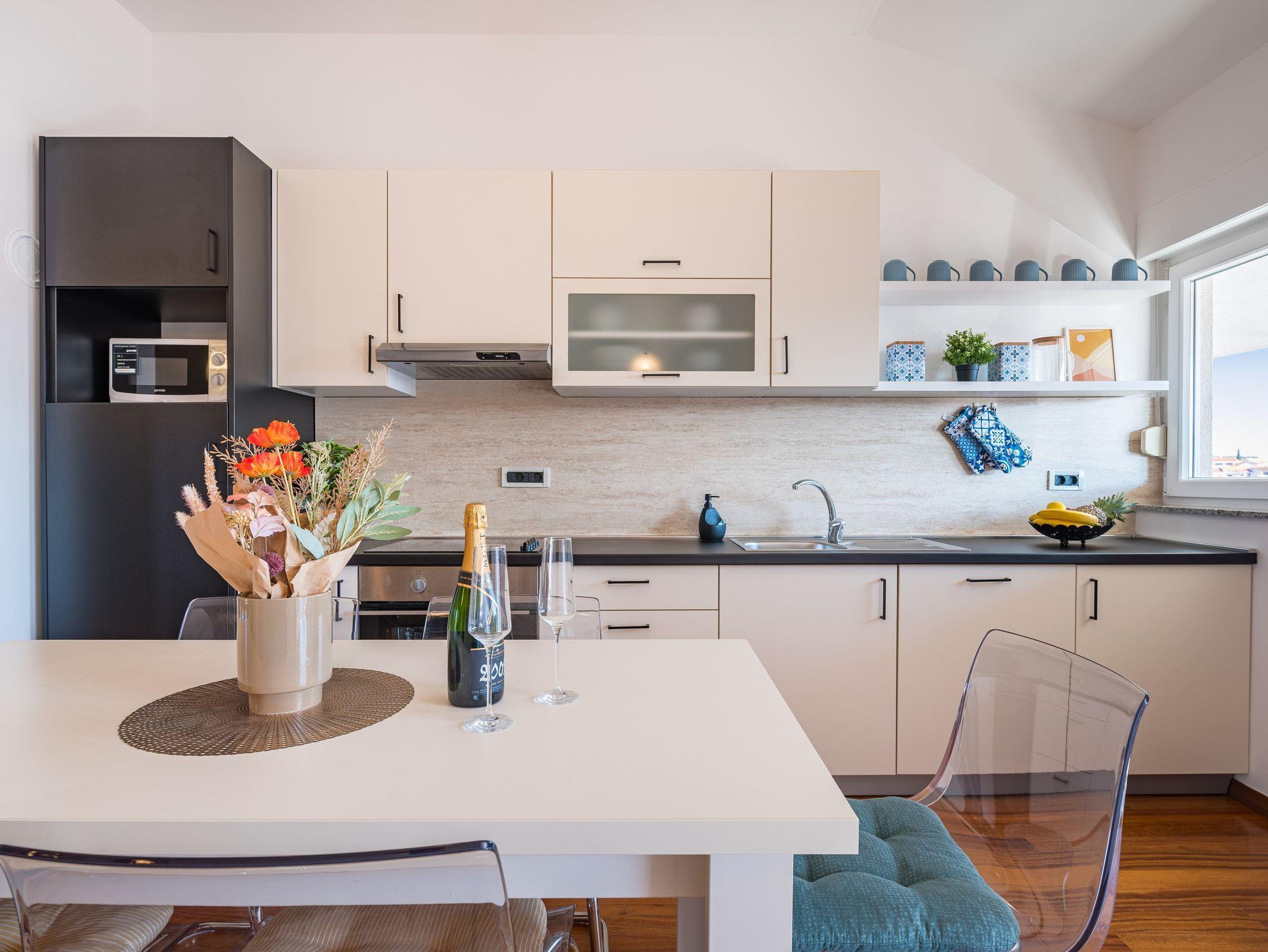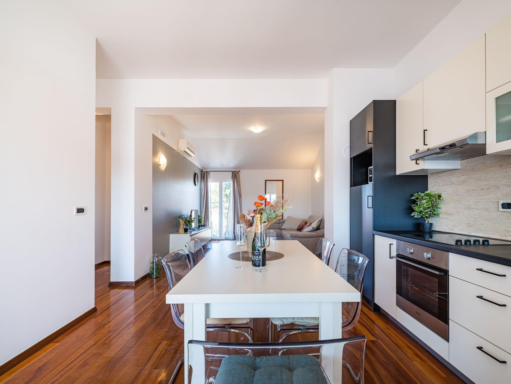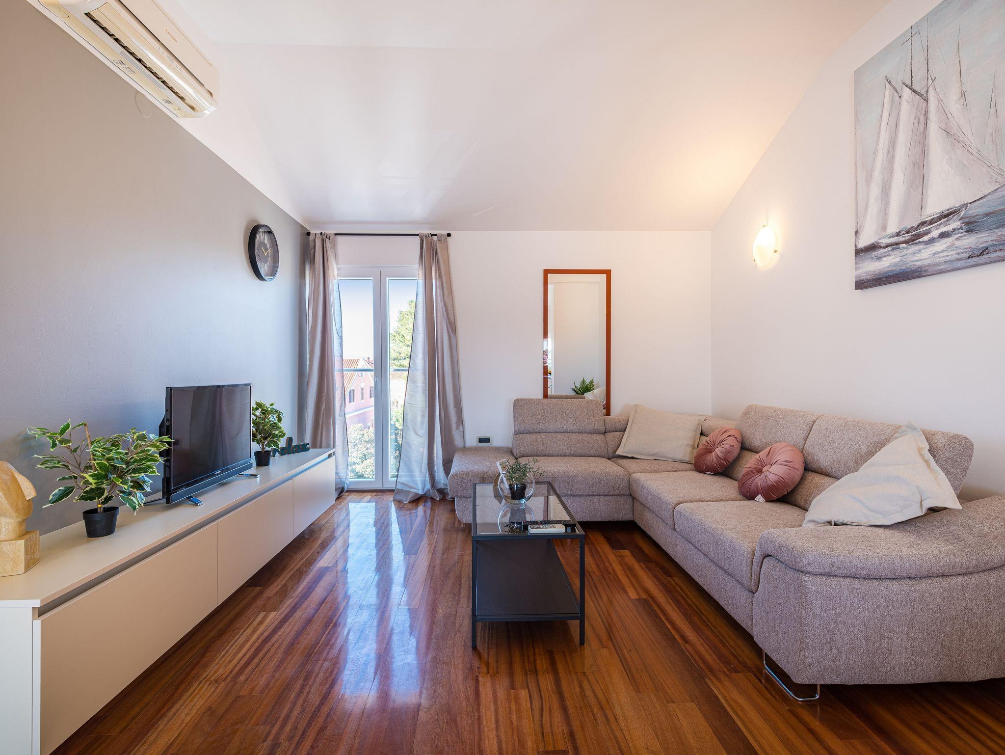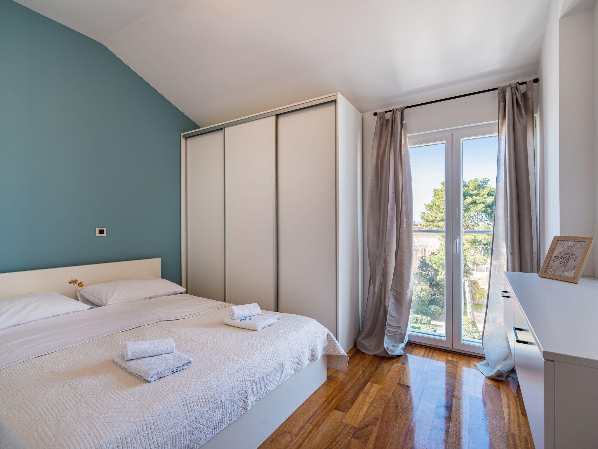 Ferienwohnung bietet Platz für 6 Gäste. Die Betten sind in Schlafzimmern, die es 2 gibt, und in Wohnzimmer, innerhalb einer Gesamtfläche von 46m2, angeordnet. Die Gäste haben einen eigenen Balkon zur Verfügung, auf der sie in warmen Sommernächten genießen können. Das Apartment bietet Meerblick. IM PREIS INBEGRIFFEN: Kurtaxe, Endreinigung, Klimatisierung, Parkplatz, Internet, Bügeleisen, Bügelbrett, Föhn. Die Verfügbarkeit zusätzlicher Dienstleistungen in Ihrem reservierten Termin und die Preise derselben (falls nicht aufgeführt) müssen im Voraus überprüft werden. Zusätzliche Dienstleistungen die in der Zahlungsaufforderung nicht aufgeführt sind werden direkt beim Vermieter bezahlt, angenommen der Gast nutzt auch diese. Ermäßigung auf den Grundpreis: Gratistag 14=13 (bei einem Aufenthalt von 14 Tagen oder mehr erhalten Sie einen Gratistag für den Aufenthalt bis 31.12.25).