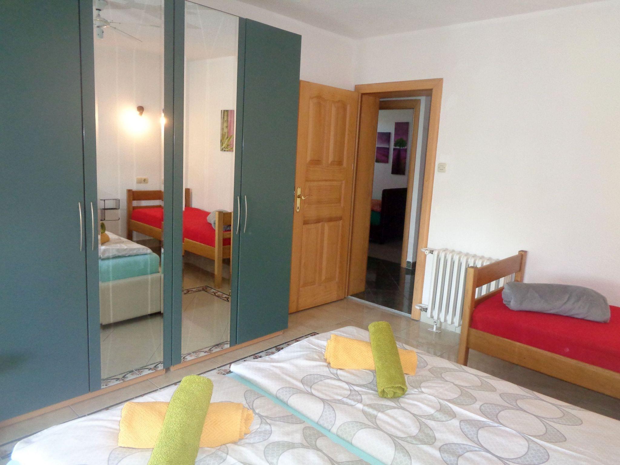 Ferienwohnung bietet Platz für 5 Gäste. Die Betten sind in Schlafzimmern, die es 2 gibt, innerhalb einer Gesamtfläche von 49m2, angeordnet. Die Gäste haben eine eigene Terrasse zur Verfügung, auf der sie in warmen Sommernächten genießen können. Es ist erlaubt, Speisen auf dem Gemeinschafts-Grill vorzubereiten. In der Unterkunftseinheit besteht die Möglichkeit des Mitbringens von Haustieren gegen Aufpreis. IM PREIS INBEGRIFFEN: Kurtaxe, Endreinigung, Klimatisierung, Zentralheizung, Parkplatz, Internet. VERBINDLICHE ZUSÄTZLICHE KOSTEN: Aufzahlung für Kurzaufenthalte (prozentualer Zuschlag pro Nächtigungsanzahl: 30% - 1, 20% - 2, 10% - 3). UNVERBINDLICHE ZUSÄTZLICHE KOSTEN: Haustiere (8,00 € pro Nacht). Die Verfügbarkeit zusätzlicher Dienstleistungen in Ihrem reservierten Termin und die Preise derselben (falls nicht aufgeführt) müssen im Voraus überprüft werden. Zusätzliche Dienstleistungen die in der Zahlungsaufforderung nicht aufgeführt sind werden direkt beim Vermieter bezahlt, angenommen der Gast nutzt auch diese.