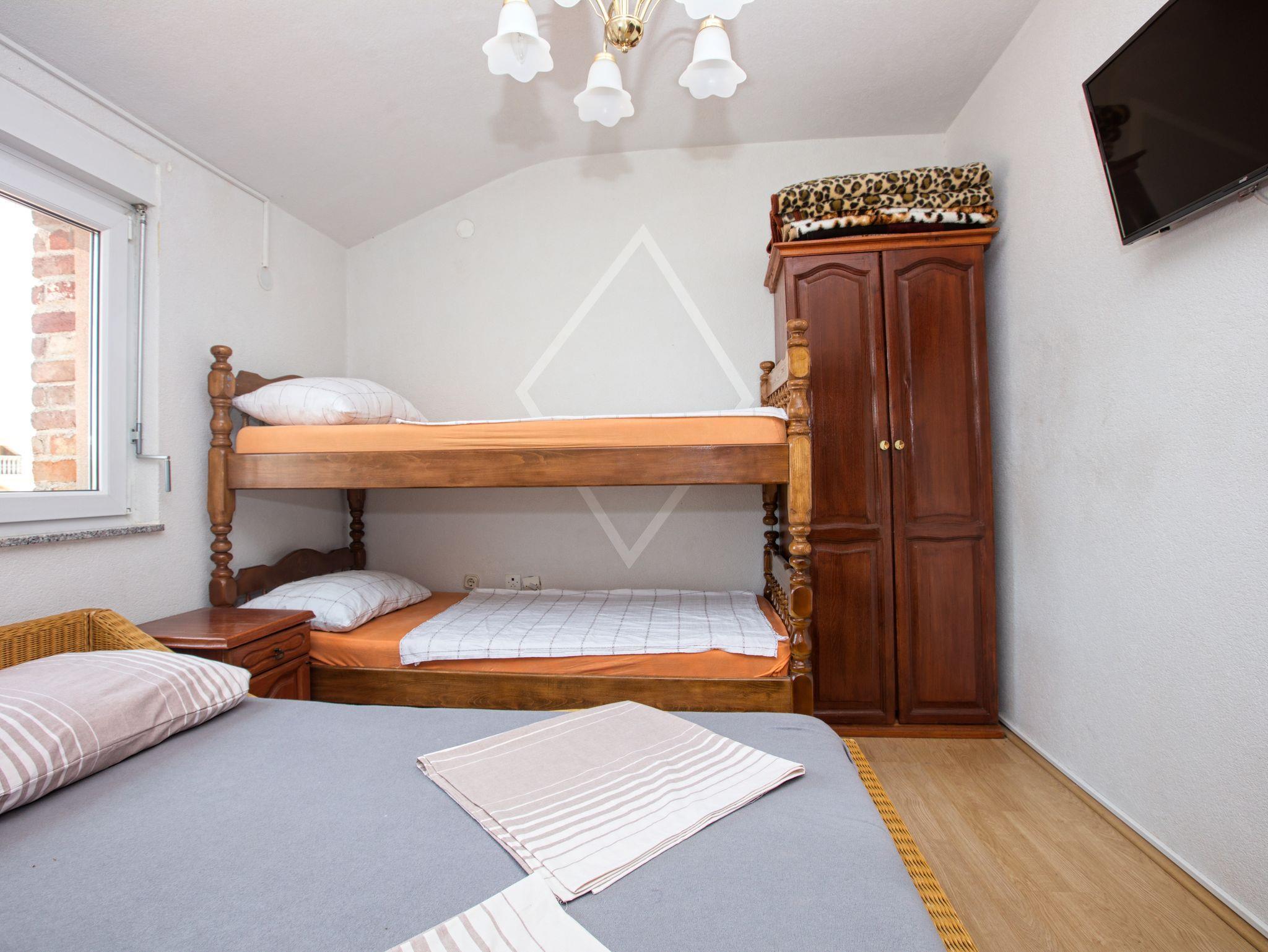 Zimmer bietet Platz für 4 Gäste. Die Betten sind in Schlafzimmern, die es 1 gibt, innerhalb einer Gesamtfläche von 19m2, angeordnet. Es ist erlaubt, Speisen auf dem Gemeinschafts-Grill vorzubereiten. In der Unterkunftseinheit besteht die Möglichkeit des Mitbringens von Haustieren gegen Aufpreis. Die reservierte Unterkunftseinheit ist ein Zimmer mit eigenem Badezimmer ohne die Möglichkeit der Nutzung einer Küche. Die reservierte Unterkunftseinheit verfügt über einen gemeinsamen Balkon. Unterkunftseinheit hat Räume, die von dem Rest der Einheit abgetrennt werden. IM PREIS INBEGRIFFEN: Kurtaxe, Endreinigung, Klimatisierung, Parkplatz, Internet. VERBINDLICHE ZUSÄTZLICHE KOSTEN: Aufzahlung für Kurzaufenthalte (prozentualer Zuschlag pro Nächtigungsanzahl: 30% - 1, 20% - 2, 10% - 3). UNVERBINDLICHE ZUSÄTZLICHE KOSTEN: Halbpension (15,00 €, 50% Nachlass für Kinder zwischen 4 und 12 Jahren, Kinder bis 4 Jahre sind frei.), Wäschewaschen (5,00 € Waschen), Haustiere (10,00 € pro Nacht), Fahrrad (10,00 € täglich (pro Stück)). Die Verfügbarkeit zusätzlicher Dienstleistungen in Ihrem reservierten Termin und die Preise derselben (falls nicht aufgeführt) müssen im Voraus überprüft werden. Zusätzliche Dienstleistungen die in der Zahlungsaufforderung nicht aufgeführt sind werden direkt beim Vermieter bezahlt, angenommen der Gast nutzt auch diese. Ermäßigung auf den Grundpreis: Gratistag 14=13 (bei einem Aufenthalt von 14 Tagen oder mehr erhalten Sie einen Gratistag für den Aufenthalt bis 31.12.26).