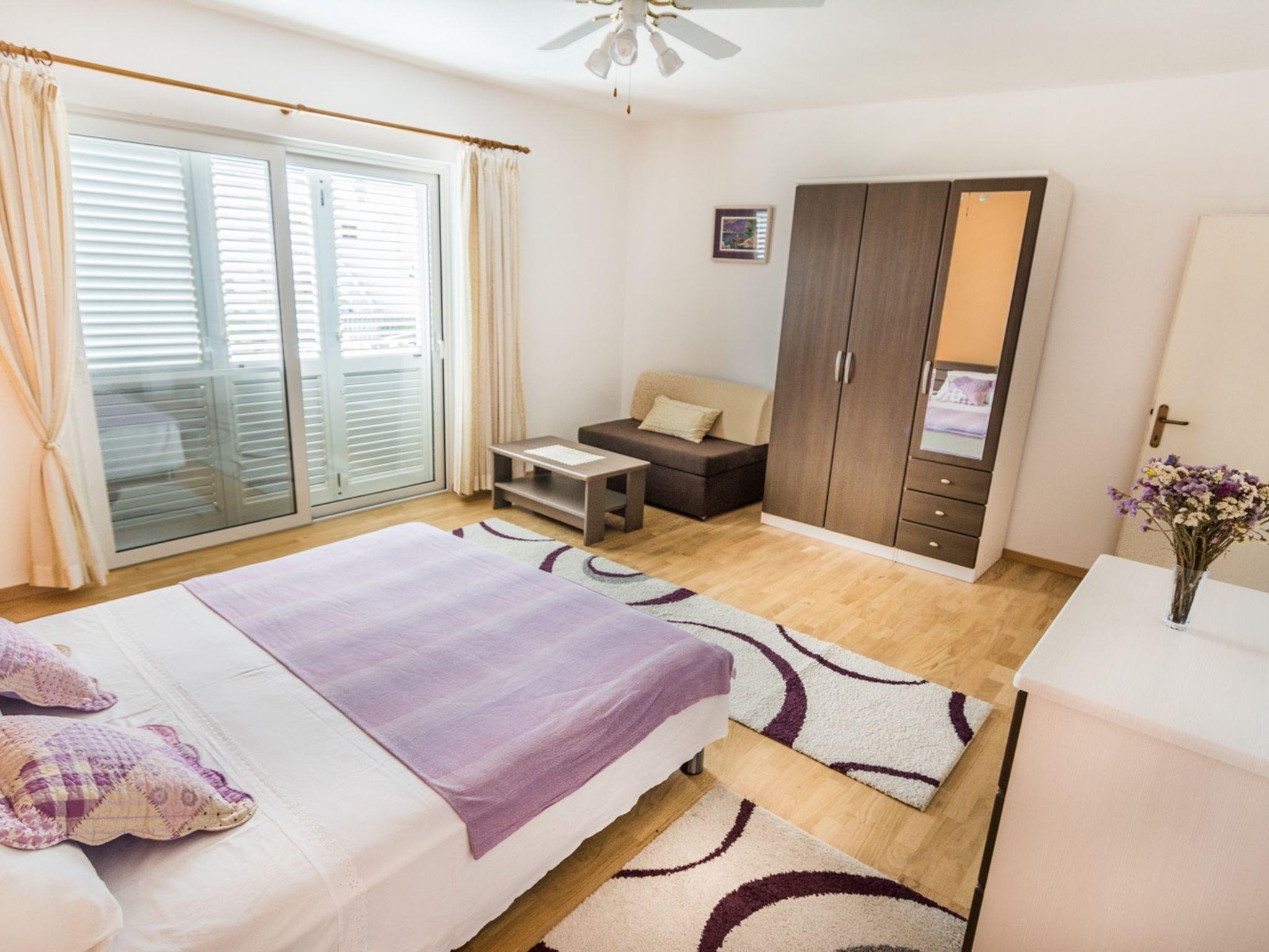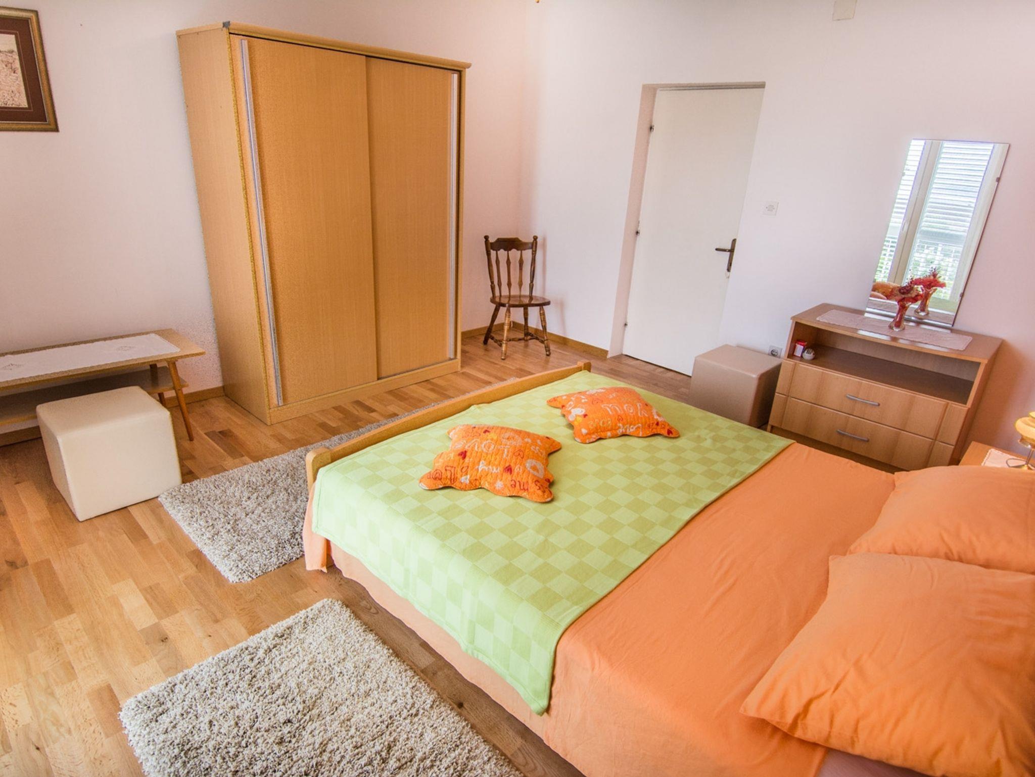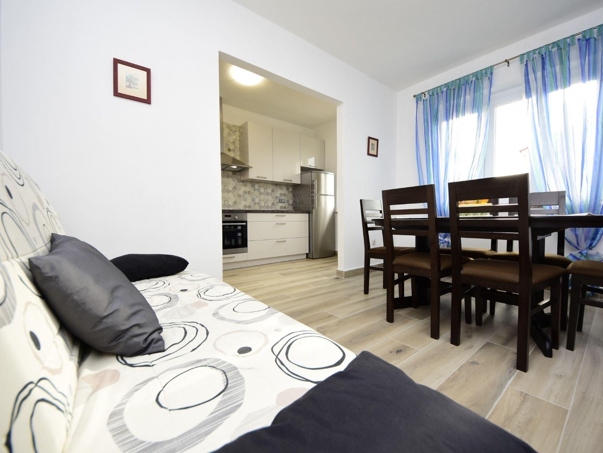 Ferienwohnung bietet Platz für 4 Gäste. Die Betten sind in Schlafzimmern, die es 2 gibt, innerhalb einer Gesamtfläche von 80m2, angeordnet. Die Gäste haben eine eigene Terrasse zur Verfügung, auf der sie in warmen Sommernächten genießen können. Das Apartment bietet Meerblick. Es ist erlaubt, Speisen auf dem Gemeinschafts-Grill vorzubereiten. IM PREIS INBEGRIFFEN: Kurtaxe, Endreinigung, Klimatisierung, Parkplatz, Internet, Kinderbett, Bügeleisen, Bügelbrett, Föhn, tragbarer Grill. Die Verfügbarkeit zusätzlicher Dienstleistungen in Ihrem reservierten Termin und die Preise derselben (falls nicht aufgeführt) müssen im Voraus überprüft werden. Zusätzliche Dienstleistungen die in der Zahlungsaufforderung nicht aufgeführt sind werden direkt beim Vermieter bezahlt, angenommen der Gast nutzt auch diese. Ermäßigung auf den Grundpreis: Gratistag 14=13 (bei einem Aufenthalt von 14 Tagen oder mehr erhalten Sie einen Gratistag für den Aufenthalt bis 31.12.26).