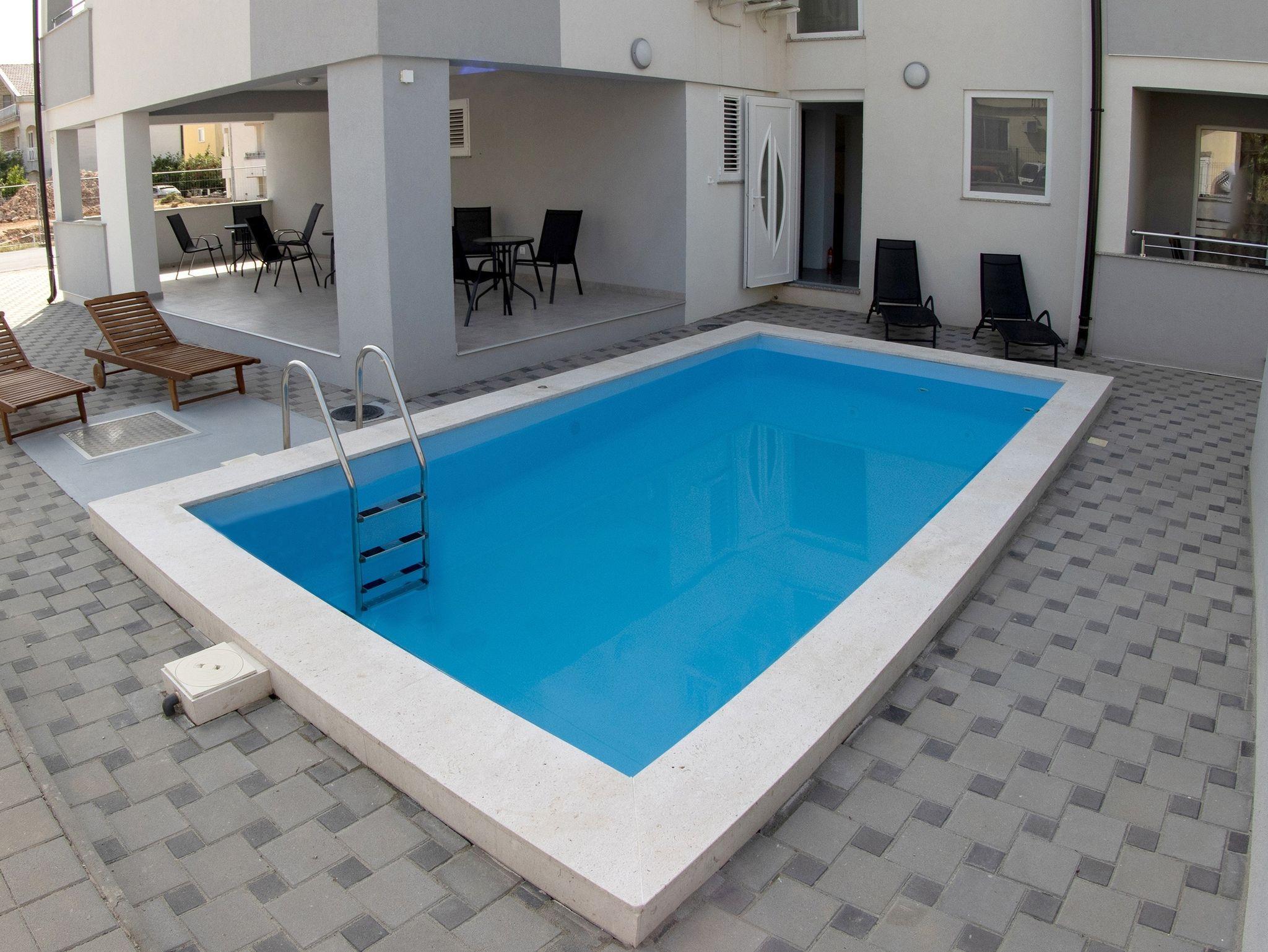 Objekt 23912 im Ort Biograd na Moru, Biograd - Norddalmatien bietet Ihnen Unterkünfte mit folgenden Einheitstypen an Ferienwohnung (5), Studio (3) und ist 950 m vom Meer entfernt. Der nächste Strand zu dieser Unterkunft ist ein sandig. Dieses Objekt befindet sich in der Kategorie Objekte mit Schwimmbad. In diesem Objekt befinden sich mehrere Unterkunftseinheiten so dass zu erwarten ist, dass Sie auch andere Gäste antreffen werden. Während Ihres Aufenthaltes werden die Hausbesitzer im Objekt wohnen. Der Eigentümer ist nicht verpflichtet, zusätzliche unangemeldete Personen und Haustiere zu akzeptieren. Sie sollten im Voraus bekannt gegeben werden. INHALT