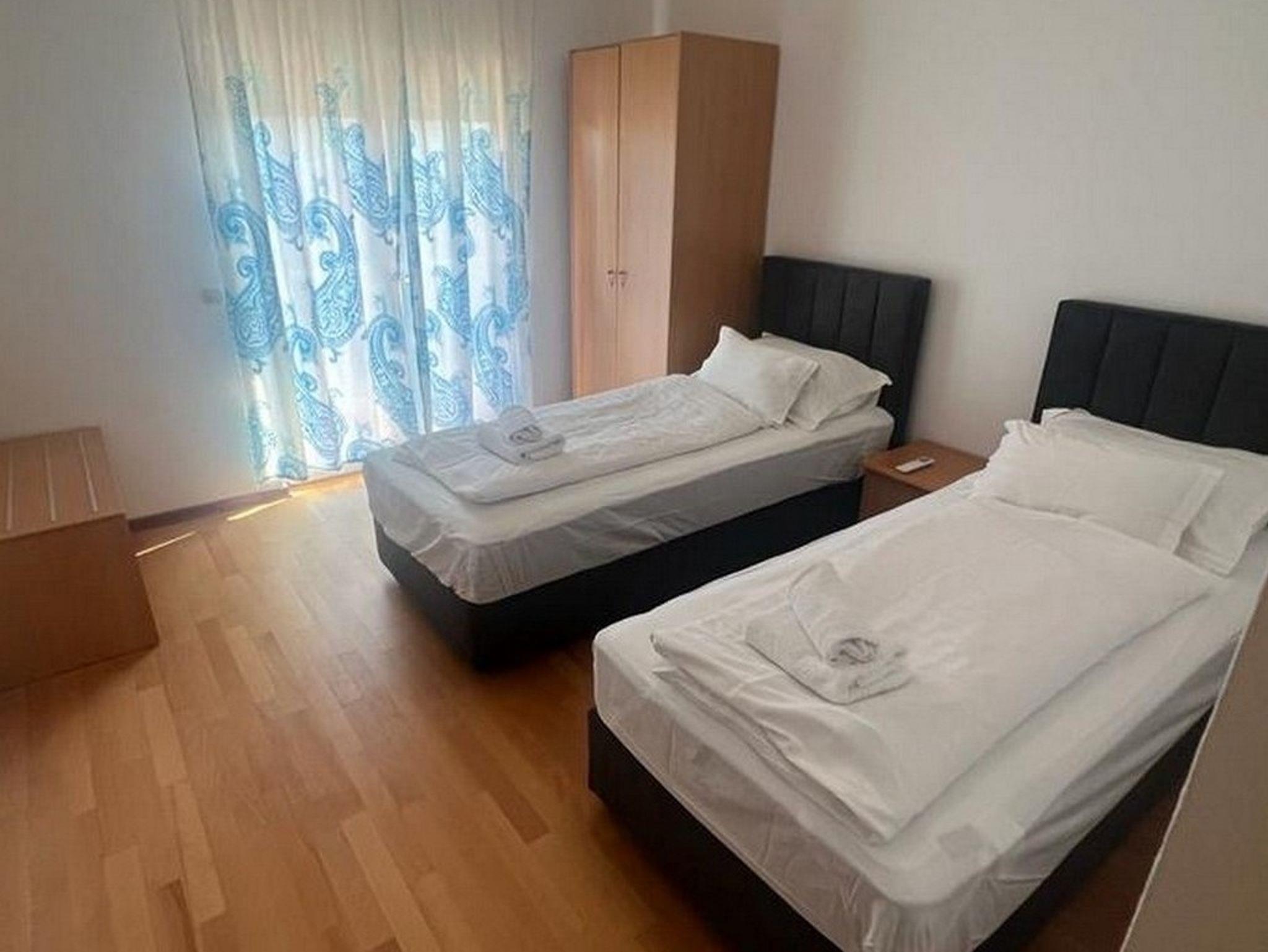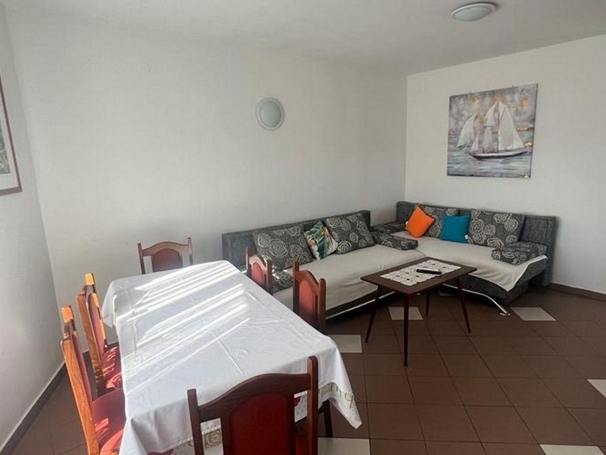 Ferienwohnung bietet Platz für 6 Gäste. Die Betten sind in Schlafzimmern, die es 2 gibt, und in Wohnzimmer, innerhalb einer Gesamtfläche von 65m2, angeordnet. Die Gäste haben eine eigene Terrasse zur Verfügung, auf der sie in warmen Sommernächten genießen können. Das Apartment bietet Meerblick. Es ist erlaubt, Speisen auf dem Gemeinschafts-Grill vorzubereiten. IM PREIS INBEGRIFFEN: Kurtaxe, Endreinigung, Klimatisierung, Parkplatz, Internet, Zusatzbett, Bügeleisen, Bügelbrett, Föhn, tragbarer Grill. Die Verfügbarkeit zusätzlicher Dienstleistungen in Ihrem reservierten Termin und die Preise derselben (falls nicht aufgeführt) müssen im Voraus überprüft werden. Zusätzliche Dienstleistungen die in der Zahlungsaufforderung nicht aufgeführt sind werden direkt beim Vermieter bezahlt, angenommen der Gast nutzt auch diese.