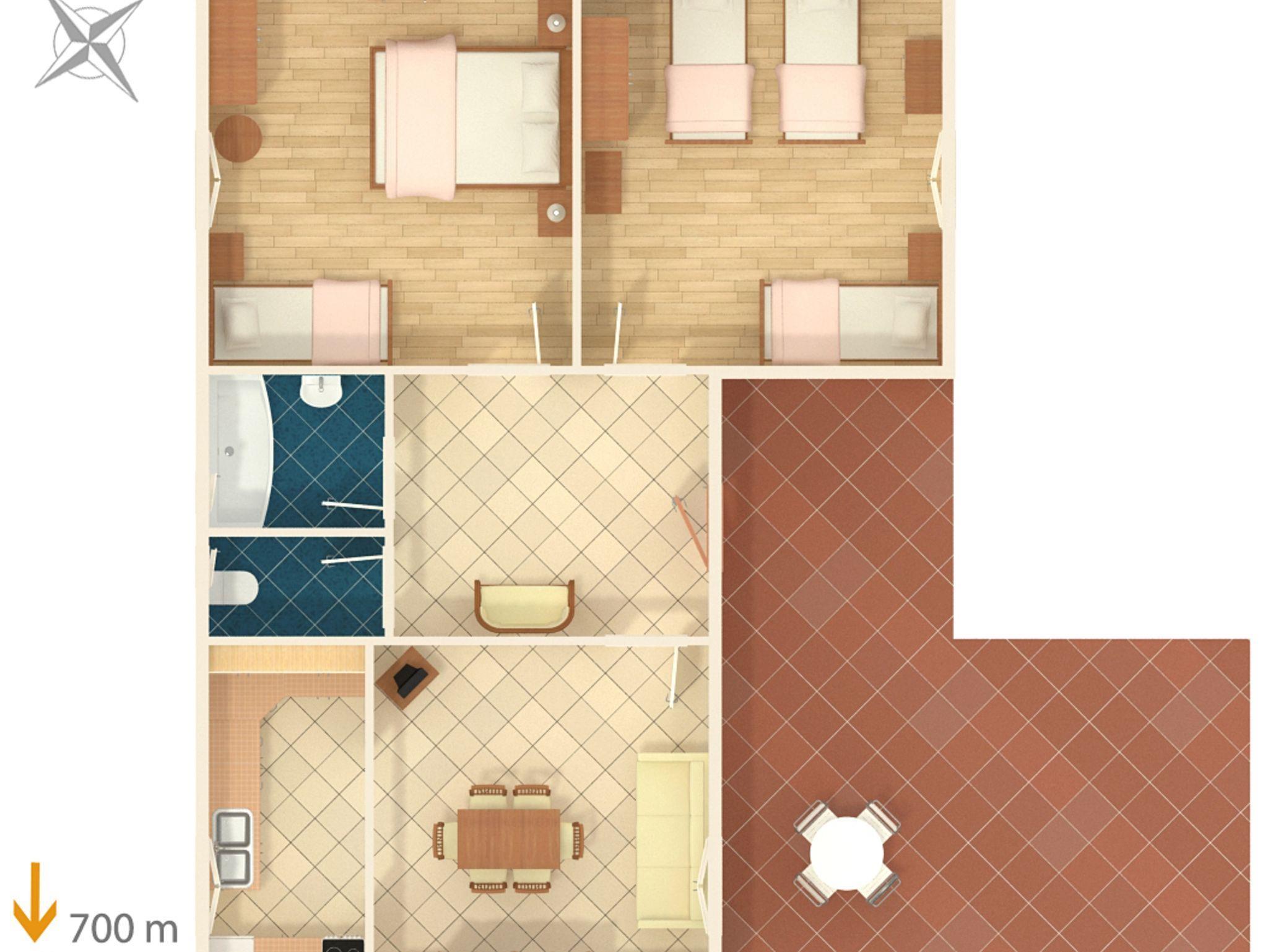 Ferienwohnung bietet Platz für 7 Gäste. Die Betten sind in Schlafzimmern, die es 2 gibt, und in Esszimmer, innerhalb einer Gesamtfläche von 69m2, angeordnet. Die Gäste haben eine eigene Terrasse zur Verfügung, auf der sie in warmen Sommernächten genießen können. Es ist erlaubt, Speisen auf dem Gemeinschafts-Grill vorzubereiten. IM PREIS INBEGRIFFEN: Kurtaxe, Endreinigung, Parkplatz, Internet, Bügeleisen, Bügelbrett, Föhn. VERBINDLICHE ZUSÄTZLICHE KOSTEN: Aufzahlung für Kurzaufenthalte (prozentualer Zuschlag pro Nächtigungsanzahl: 30% - 1, 20% - 2, 10% - 3). Die Verfügbarkeit zusätzlicher Dienstleistungen in Ihrem reservierten Termin und die Preise derselben (falls nicht aufgeführt) müssen im Voraus überprüft werden. Zusätzliche Dienstleistungen die in der Zahlungsaufforderung nicht aufgeführt sind werden direkt beim Vermieter bezahlt, angenommen der Gast nutzt auch diese.