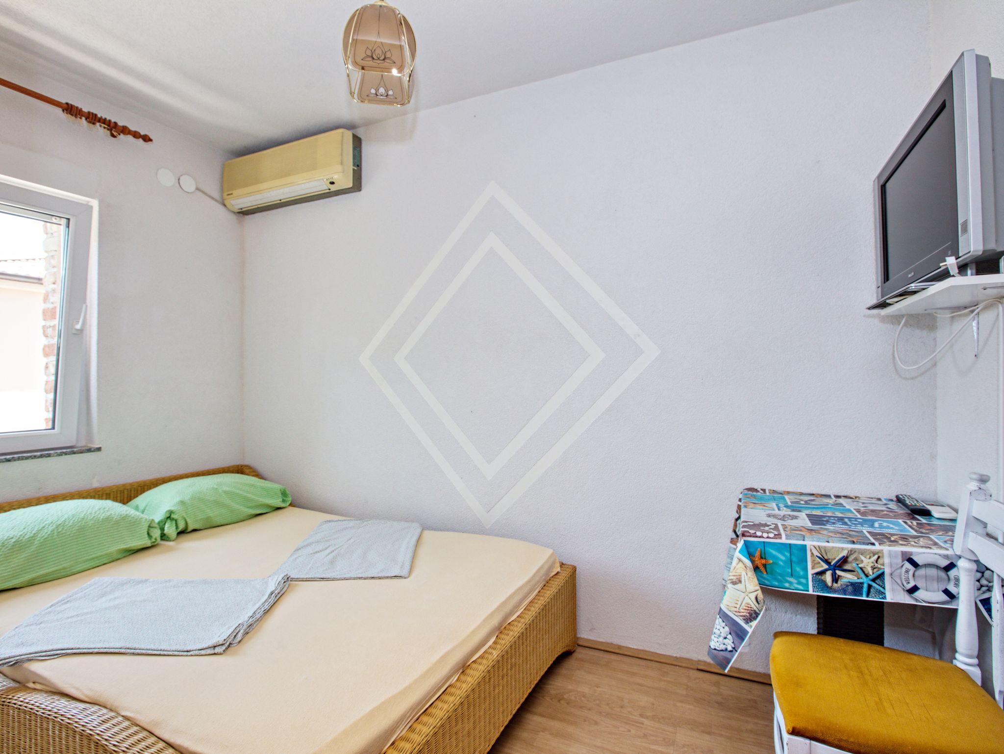 Zimmer bietet Platz für 2 Gäste. Die Betten sind in Schlafzimmern, die es 1 gibt, innerhalb einer Gesamtfläche von 12m2, angeordnet. Es ist erlaubt, Speisen auf dem Gemeinschafts-Grill vorzubereiten. In der Unterkunftseinheit besteht die Möglichkeit des Mitbringens von Haustieren gegen Aufpreis. Die reservierte Unterkunftseinheit ist ein Zimmer mit eigenem Badezimmer ohne die Möglichkeit der Nutzung einer Küche. Die reservierte Unterkunftseinheit verfügt über einen gemeinsamen Balkon. Unterkunftseinheit hat Räume, die von dem Rest der Einheit abgetrennt werden. IM PREIS INBEGRIFFEN: Kurtaxe, Endreinigung, Klimatisierung, Parkplatz, Internet. VERBINDLICHE ZUSÄTZLICHE KOSTEN: Aufzahlung für Kurzaufenthalte (prozentualer Zuschlag pro Nächtigungsanzahl: 30% - 1, 20% - 2, 10% - 3). UNVERBINDLICHE ZUSÄTZLICHE KOSTEN: Halbpension (15,00 €, 50% Nachlass für Kinder zwischen 4 und 12 Jahren, Kinder bis 4 Jahre sind frei.), Wäschewaschen (5,00 € Waschen), Haustiere (10,00 € pro Nacht), Fahrrad (10,00 € täglich (pro Stück)). Die Verfügbarkeit zusätzlicher Dienstleistungen in Ihrem reservierten Termin und die Preise derselben (falls nicht aufgeführt) müssen im Voraus überprüft werden. Zusätzliche Dienstleistungen die in der Zahlungsaufforderung nicht aufgeführt sind werden direkt beim Vermieter bezahlt, angenommen der Gast nutzt auch diese. Ermäßigung auf den Grundpreis: Gratistag 14=13 (bei einem Aufenthalt von 14 Tagen oder mehr erhalten Sie einen Gratistag für den Aufenthalt bis 31.12.26).