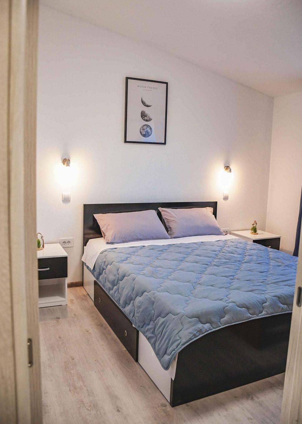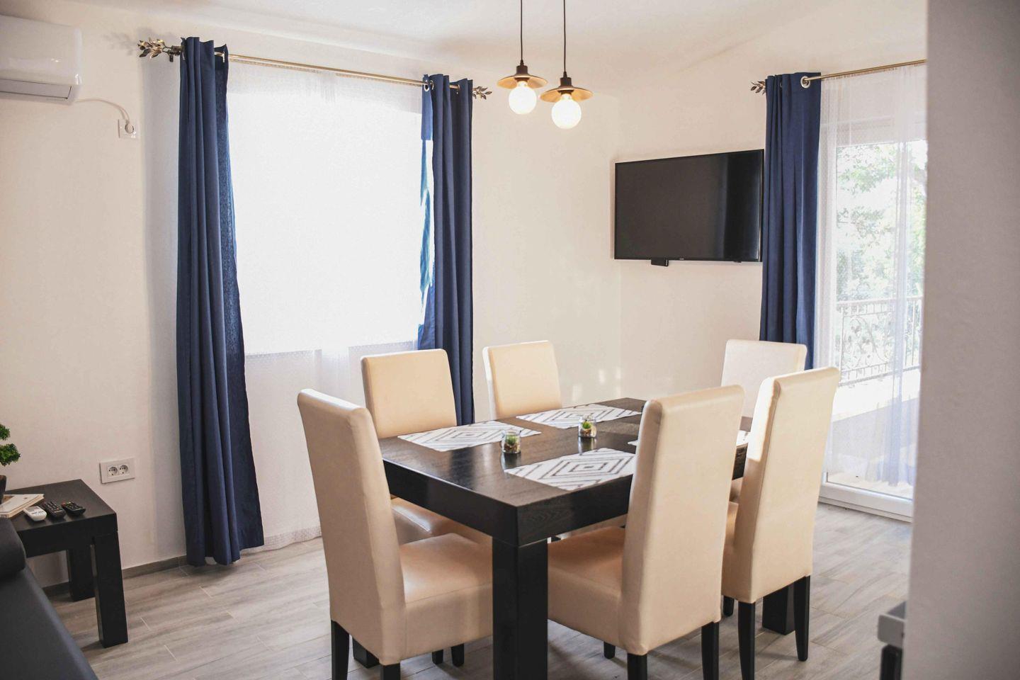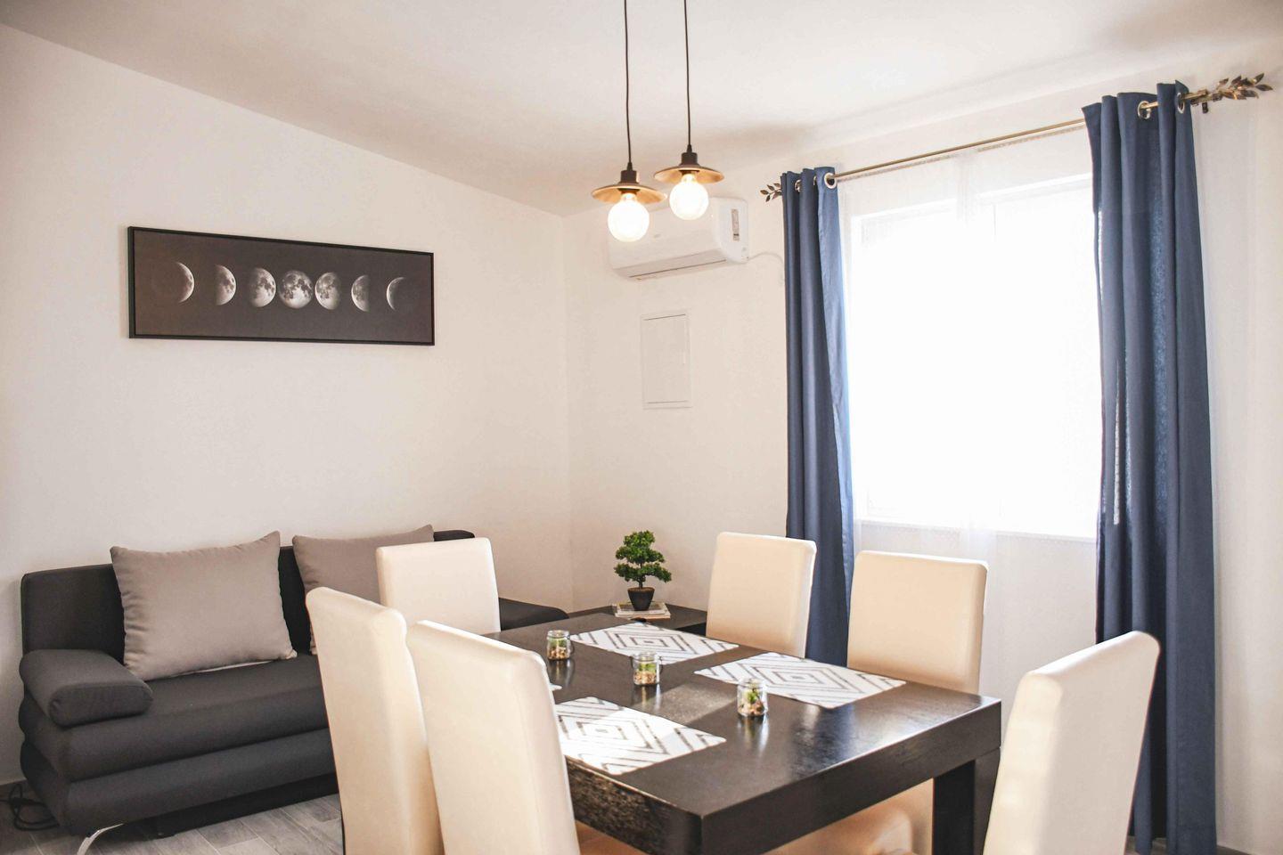 Komfortables, klimatisiertes Apartment mit zwei Schlafzimmern, Wohnzimmer mit Schlafsofa, voll ausgestatteter Küche und modernem Bad mit ebenerdiger Dusche. Eigener Eingang, Grill, Flachbild-TV mit Streamingdiensten, schallisolierte Wände und Gartenblick. Highlight: der Pool mit traumhafter Aussicht – ideal für entspannte Urlaubstage.