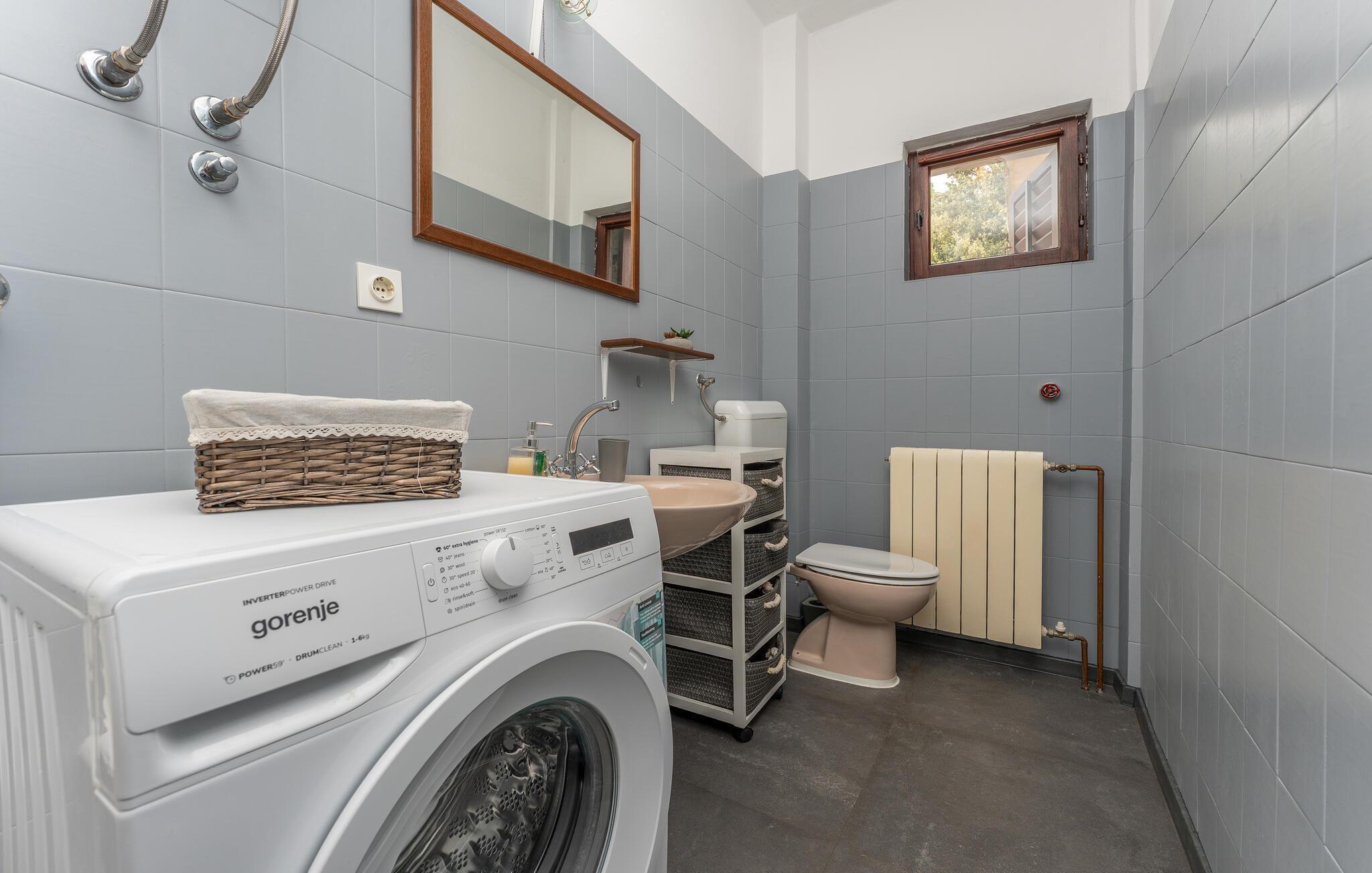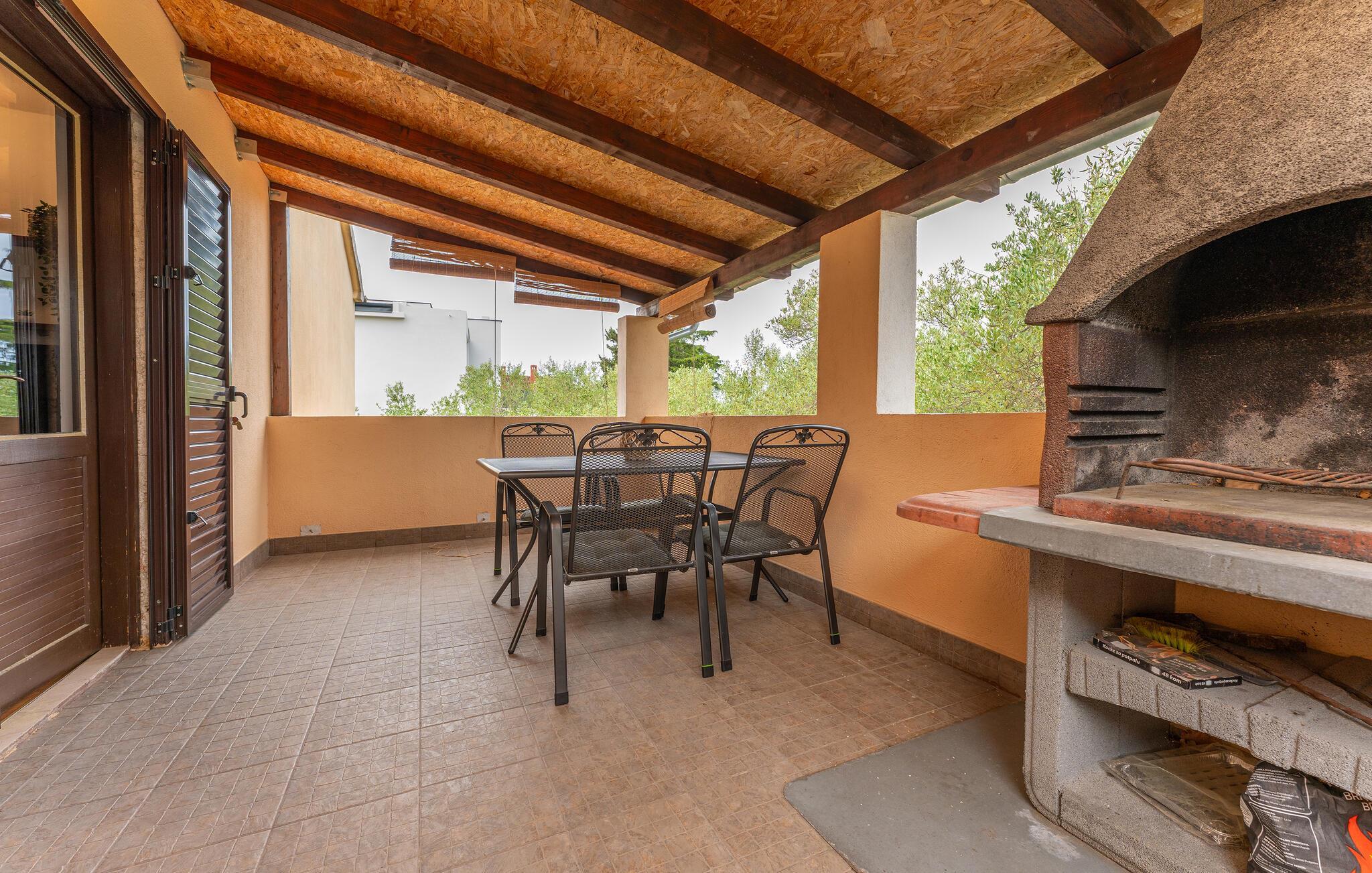 Frühstücken Sie draußen auf der großen, überdachten Terrasse und grillen Sie abends lokale Spezialitäten. Der fest eingebaute Steingrill bietet Ihnen die Möglichkeit, authentische Gerichte zuzubereiten. Während die Sonne langsam untergeht und eine angenehme Abendbrise weht, begleitet Sie das sanfte Zirpen der Zikaden – der perfekte Klangteppich für einen gelungenen Urlaubstag.
