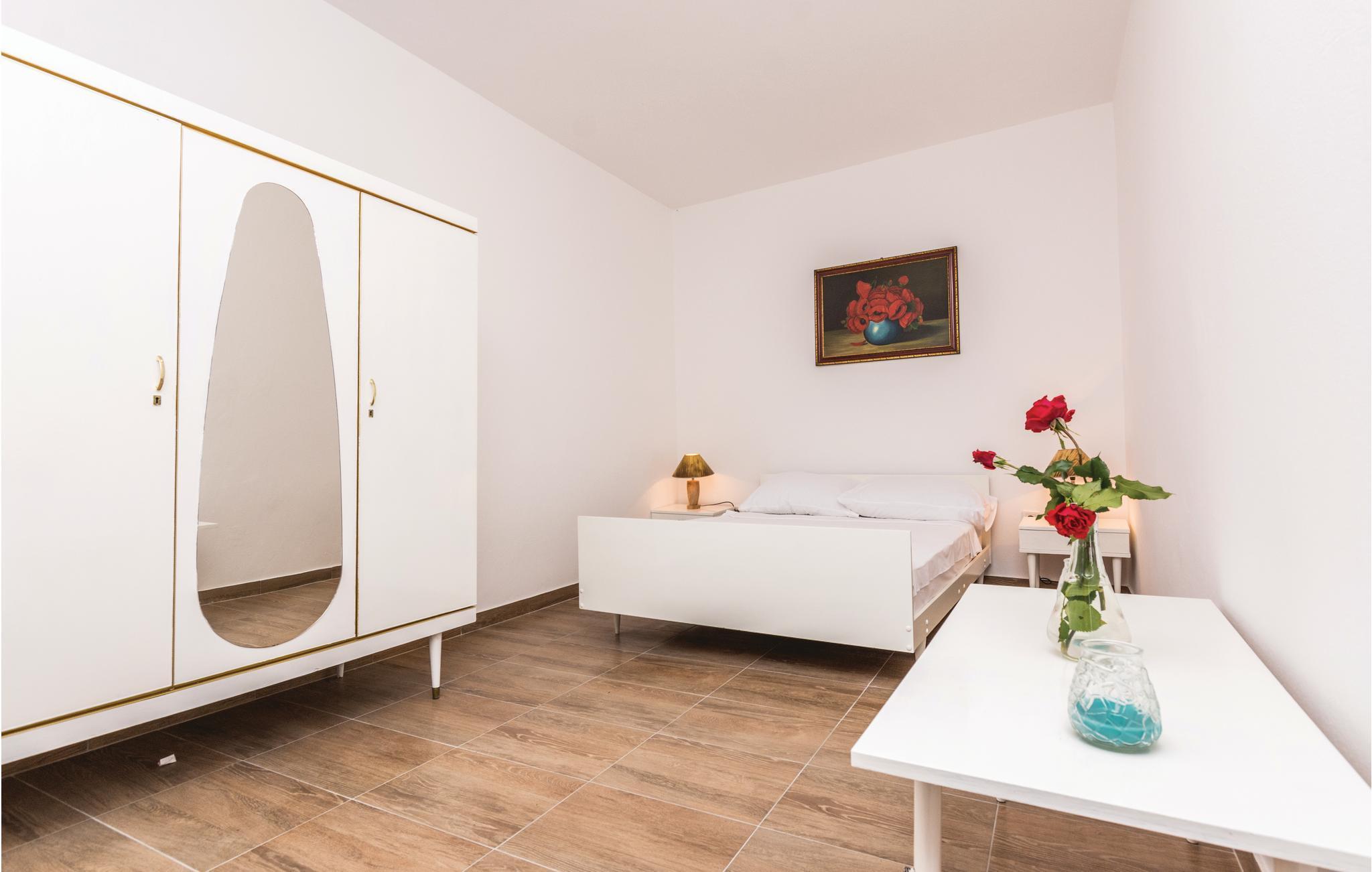 Dieses Reihenhaus mit Pool liegt im Hinterland von Sv. Petar na moru, nur ca. 3 km vom Meer entfernt. Es besteht aus zwei getrennten Wohneinheiten in der ersten Etage und zwei Zimmern mit Bad im Erdgeschoss, die beide nur von außen zugänglich sind. Im Erdgeschoss befindet sich zusätzlich noch eine Konoba mit Blick auf den Pool. Der Hauseigentümer wohnt im Haus nebenan. Die Gäste der Wohnung (mit den Zimmern 5 und 6) teilen die Außentreppe mit dem Hauseigentümer. Besuchen Sie die königliche Stadt Biograd mit reichem kulturellen Erbe, Restaurants und Sandstrand in nur ca. 3 km Entfernung.