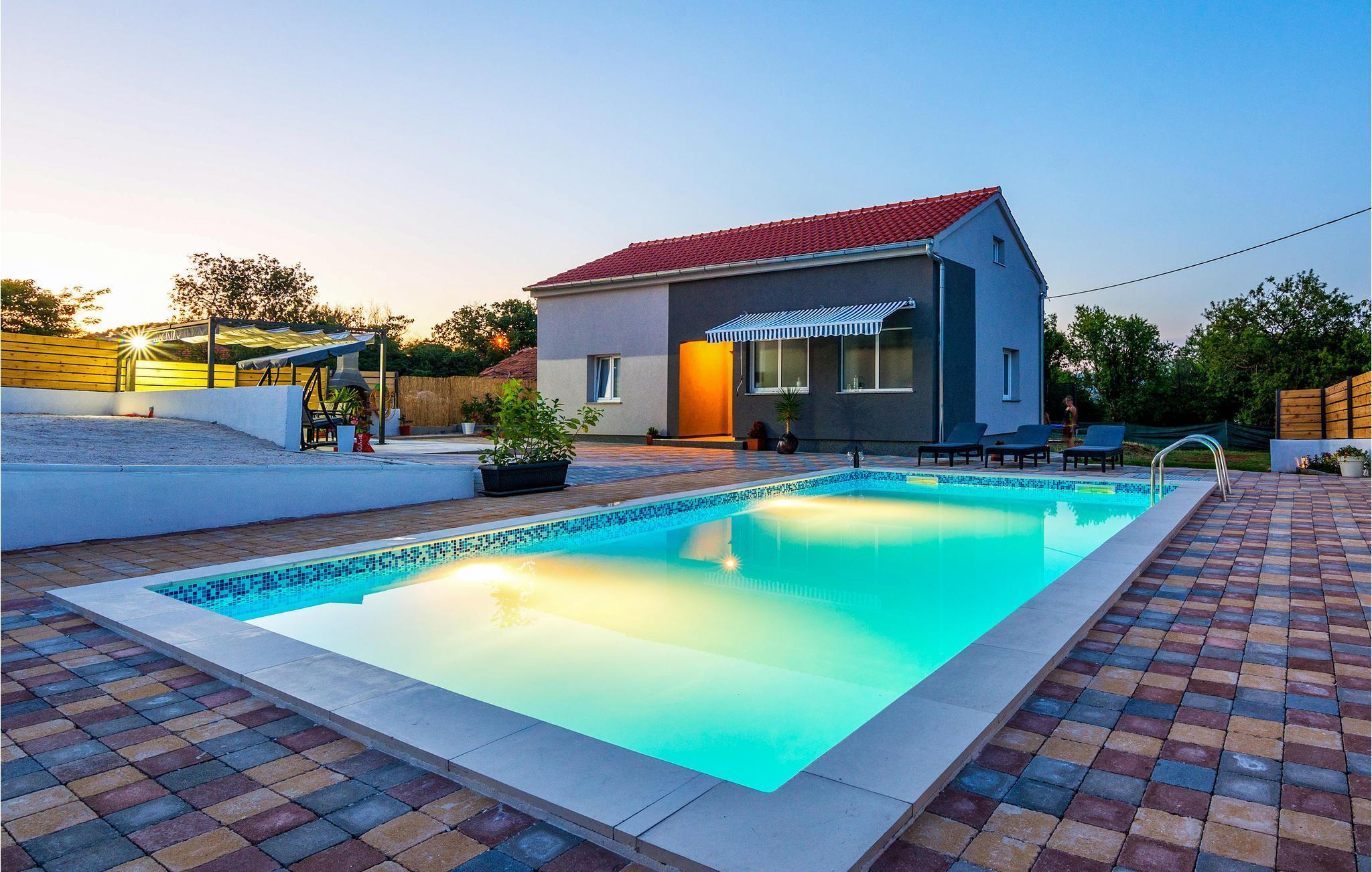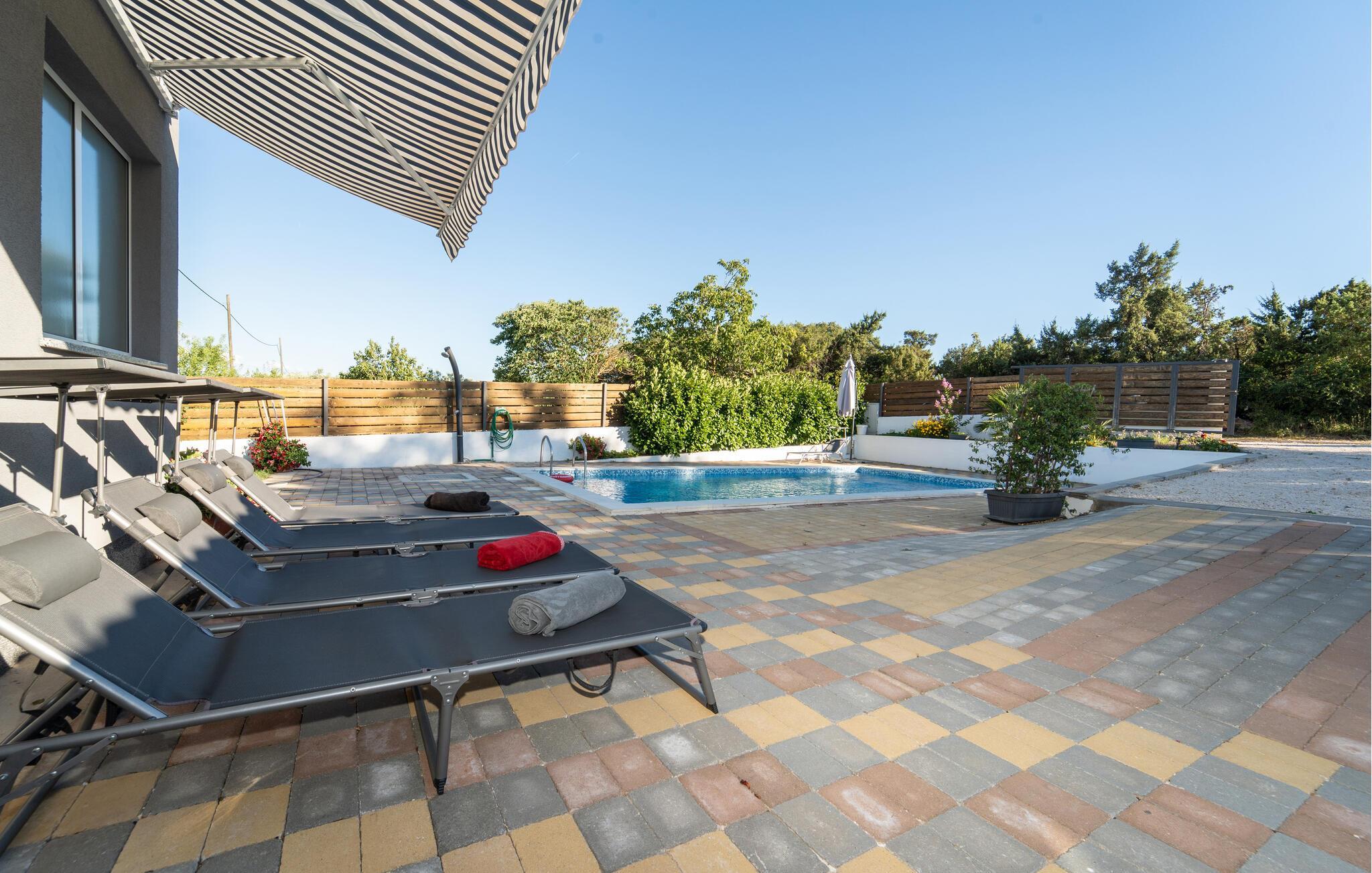 Dieses modern eingerichtete Ferienhaus mit Pool, mit attraktiver Sommerterrasse und tollem Spielzubehör für Kinder, befindet sich im kleinen Ort Donje Raštane. Im Erdgeschoss befinden sich zwei Schlafzimmer, ein Badezimmer und eine Küche mit Esszimmer und Wohnzimmer. In das Obergeschoss führt eine Innentreppe zu einem weiteren geräumigen Schlafzimmer, mit freiem Zugang zum Badezimmer. Das Ferienhaus und der Außenbereich strahlen einen besonderen Charme und Flair aus, wo jeder seine besondere Ecke zum Entspannen finden wird. Im Ort Sveti Petar na moru (4 km) kommt auch der Badespaß nicht zu kurz. Hier können Sie den ganzen Tag am Hauptstrand Iza Banja verbringen, der viel Unterhaltungsmöglichkeiten bietet und zudem auch über einen schattenspendenden kleinen Kiefernwald verfügt. Die Stadt Biograd ist nur 15 km entfernt und bietet einen interessanten Vergnügungspark, in dem Sie mit der ganzen Familie Spaß haben werden. Biograd ist auch der ideale Ausgangspunkt für einen Tagesausflug mit dem Boot zur Insel Pasman oder zu einem der Nationalparks Paklenica, Kornati und Krka sowie zum Naturpark Telašcica.