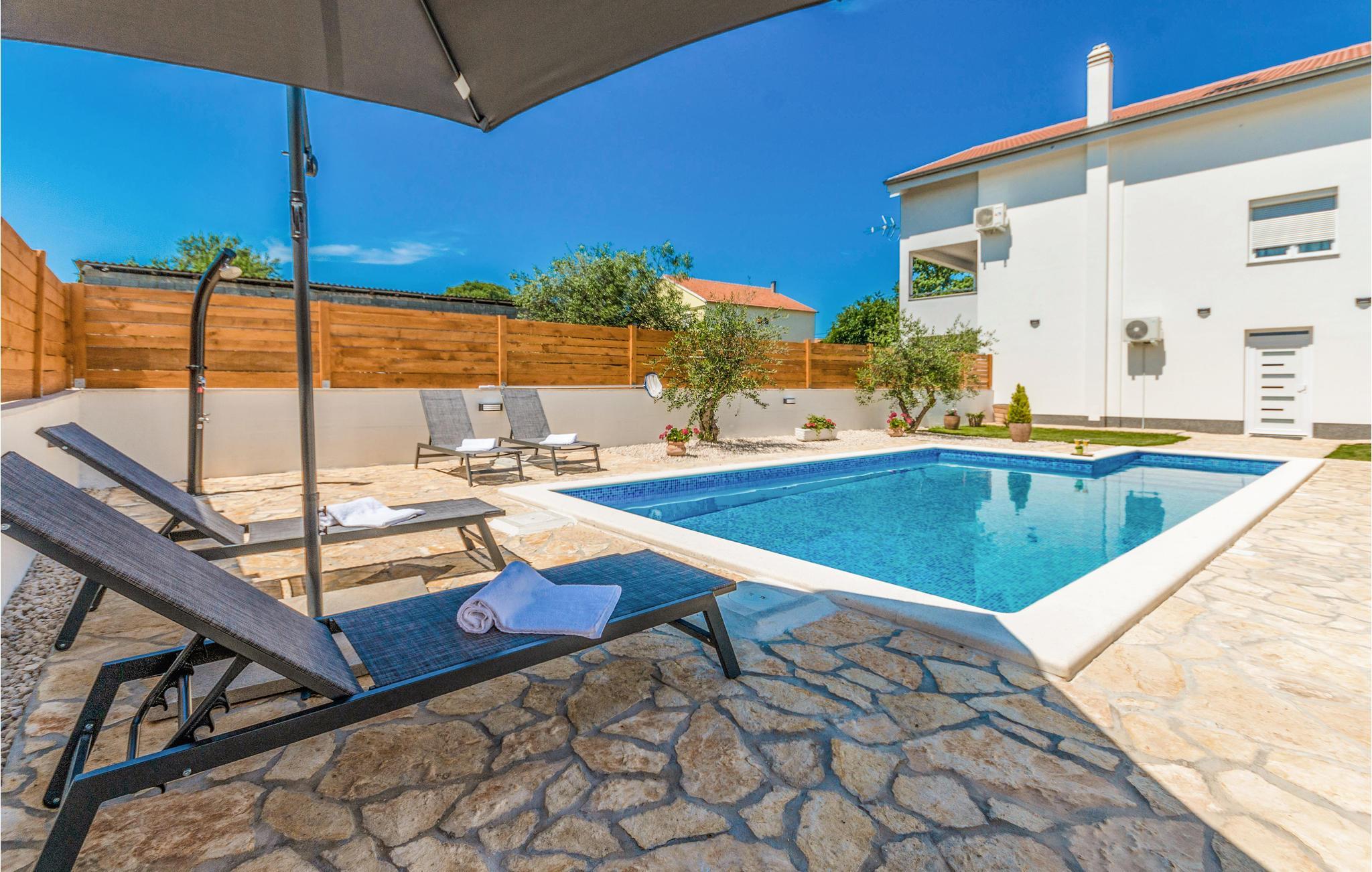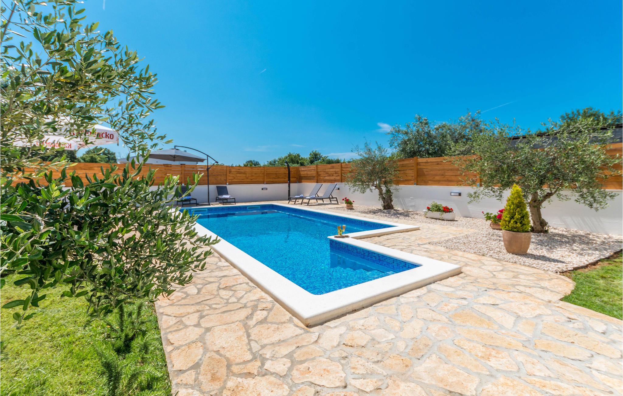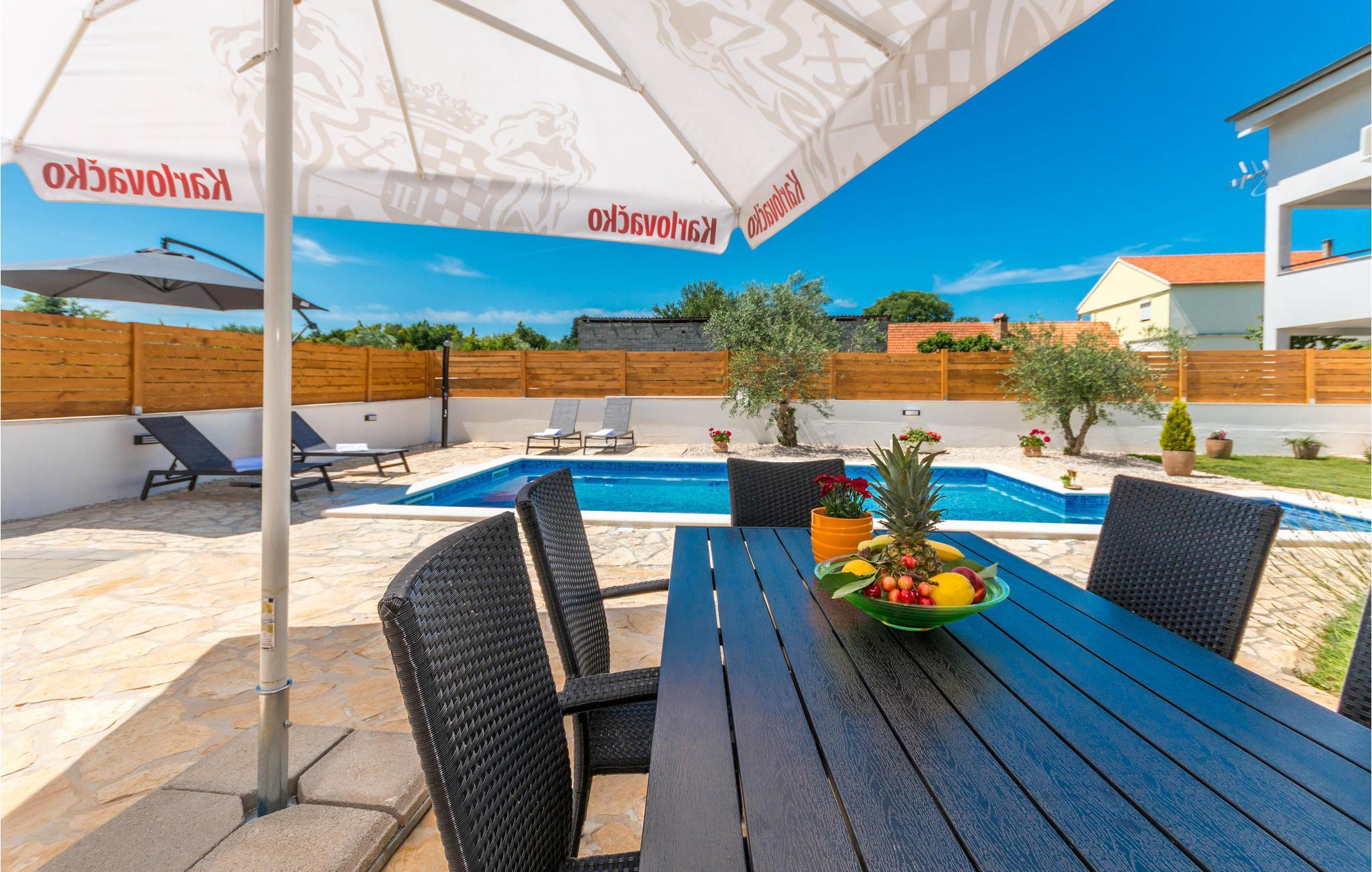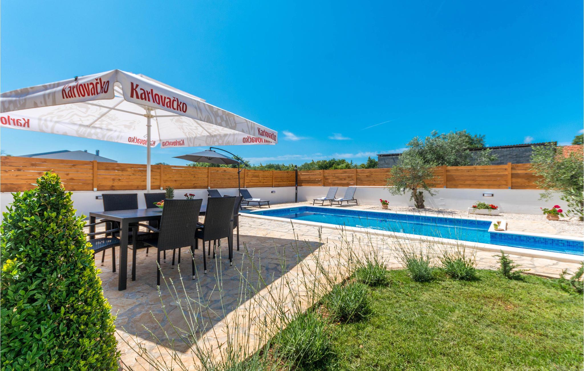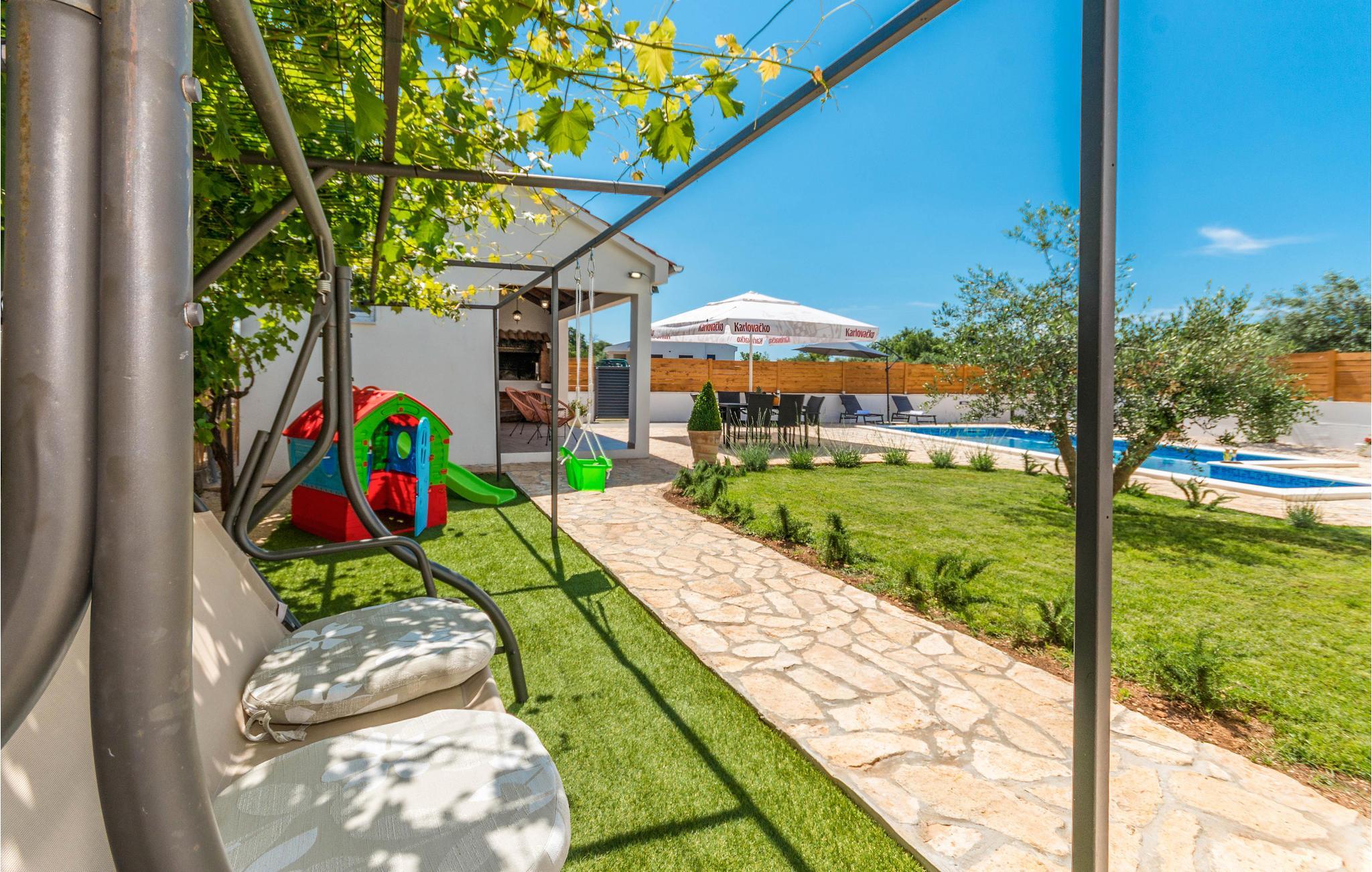 Verbringen Sie einen tollen und entspannten Urlaub in dieser schönen Ferienwohnung. Komfortable und hochwertige Ausstattung und Einrichtung sowie ein moderner Fliesenboden bieten Ihnen die idealen Rahmen für einen unbeschwerten Urlaub. Während die helle Wohnung Ihnen alles zum Wohlfühlen bietet, können Sie auch im Freien viele Stunden verbringen. Der schön angelegte Garten, in deren Herzen der Pool liegt, wird zu Ihrem natürlichem Familientreffpunkt. Baden, sonnen und spielen Sie im Garten und kochen und grillen am Abend im Gartenhaus.