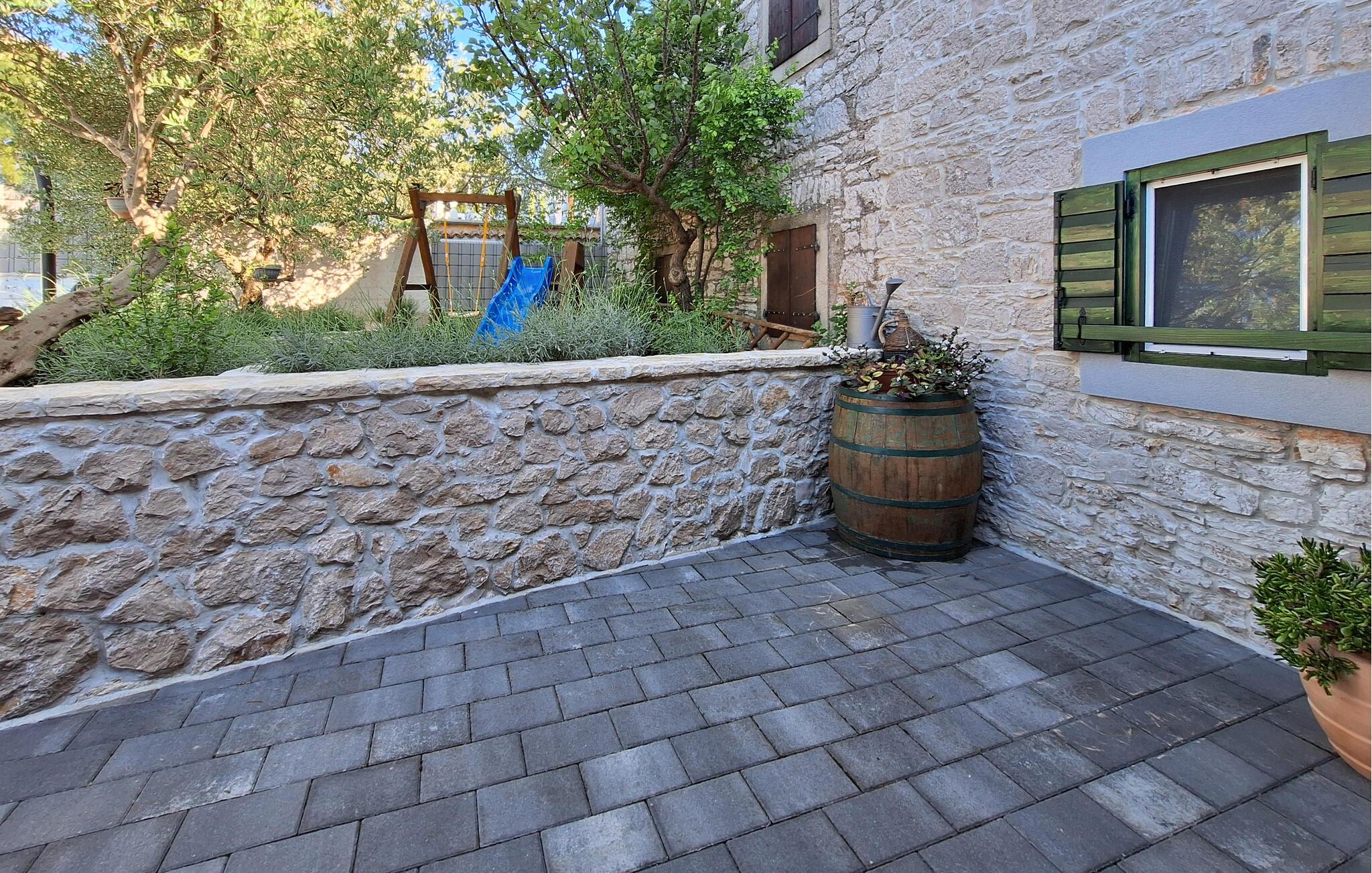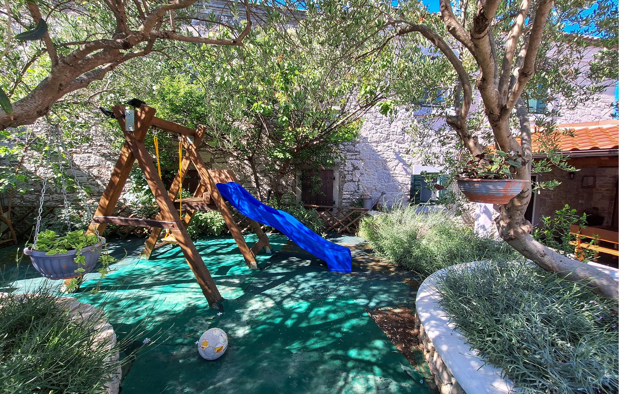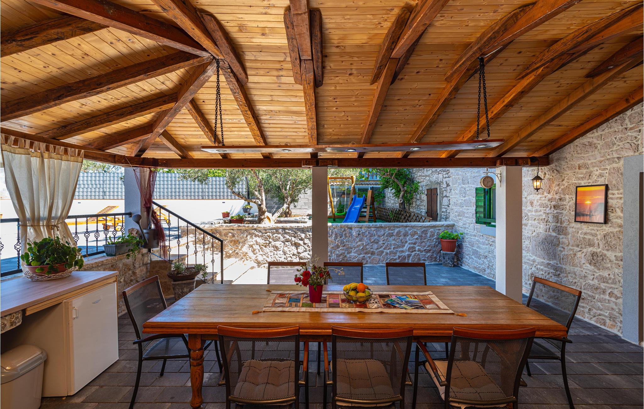 Lassen Sie die Kinder im Pool planschen, während Sie auf den Sonnenliegen entspannen oder auf der überdachten Terrasse ein kühles Getränk zu sich nehmen. Die Kinder werden auch die Schaukel lieben, auf der sie viele Stunden verbringen können. Auf dem eingezäunten Grundstück können sie sicher spielen.