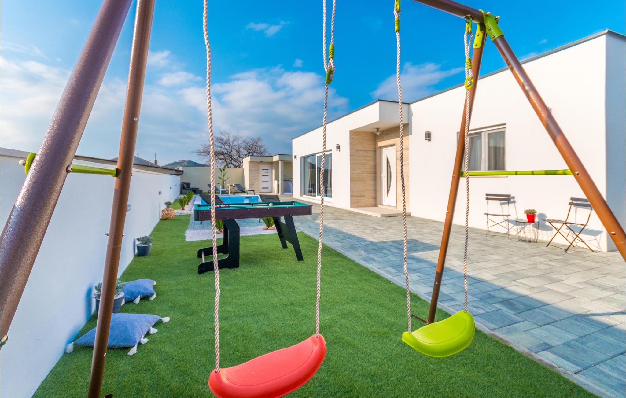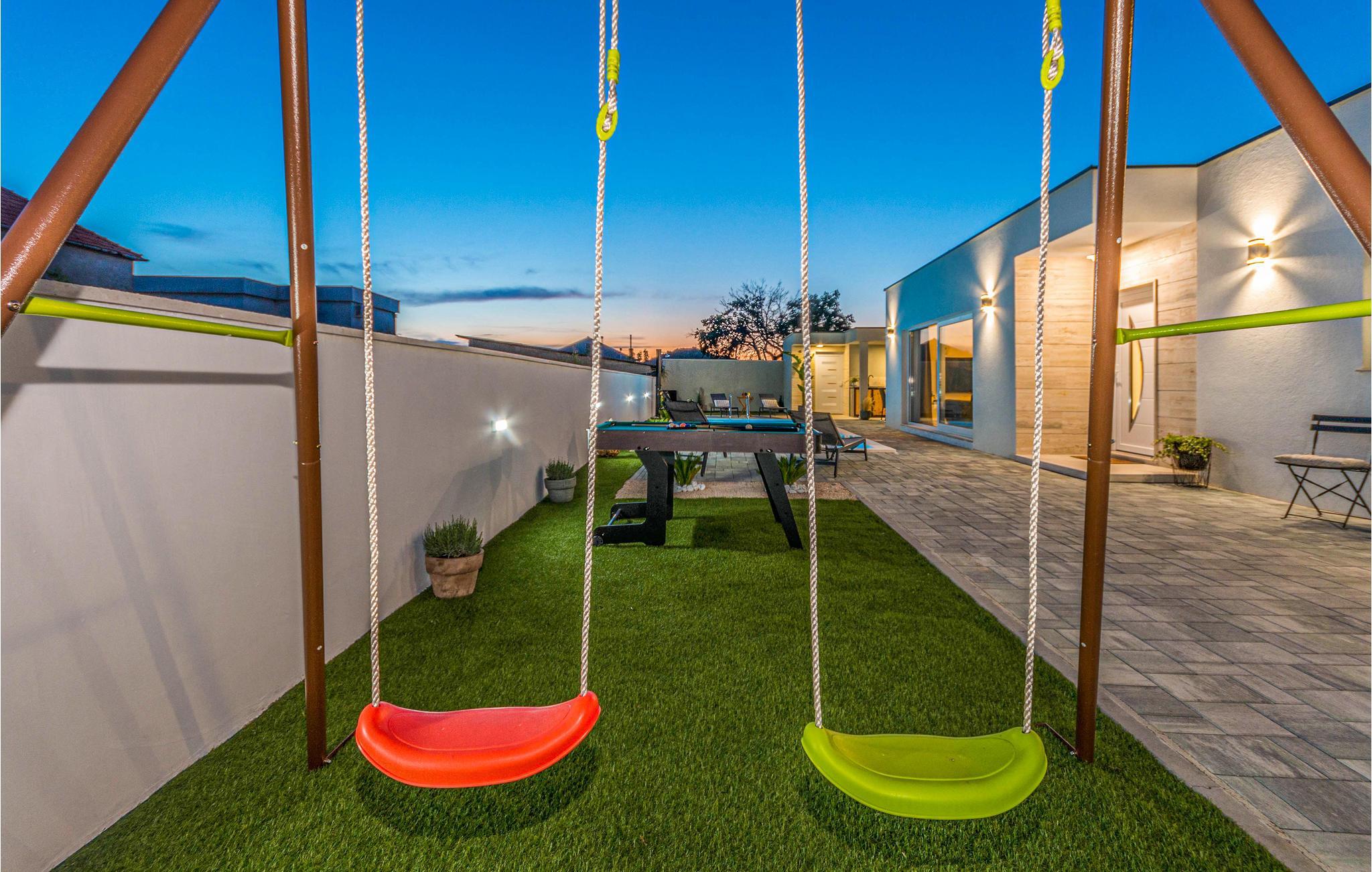 Kommen Sie mit Ihrer Familie an und fühlen sich in diesem komfortablen und sehr geschmackvollen Ferienhaus wie zuhause. Bei der Einrichtung des Hauses wurde auf Qualität und schönes Design Wert gelegt, die Sie beim gemeinsamen Kochen, Spielen am Esstisch oder Relaxen auf dem Sofa deutlich werden. Kommen Sie zur Ruhe und genießen die tolle Wohlfühlatmosphäre. Auch im Freien können Sie es sich so richtig gutgehen lassen. Kühlen Sie sich an warmen Tagen in Ihrem privaten Pool ab, spielen Sie Billard oder schauen Ihren Kindern beim Schaukeln und Umhertoben zu. Laue Sommerabende können Sie bei gegrillten Speisen unter freiem Himmel ausklingen lassen und die Gesellschaft Ihrer Lieben genießen.