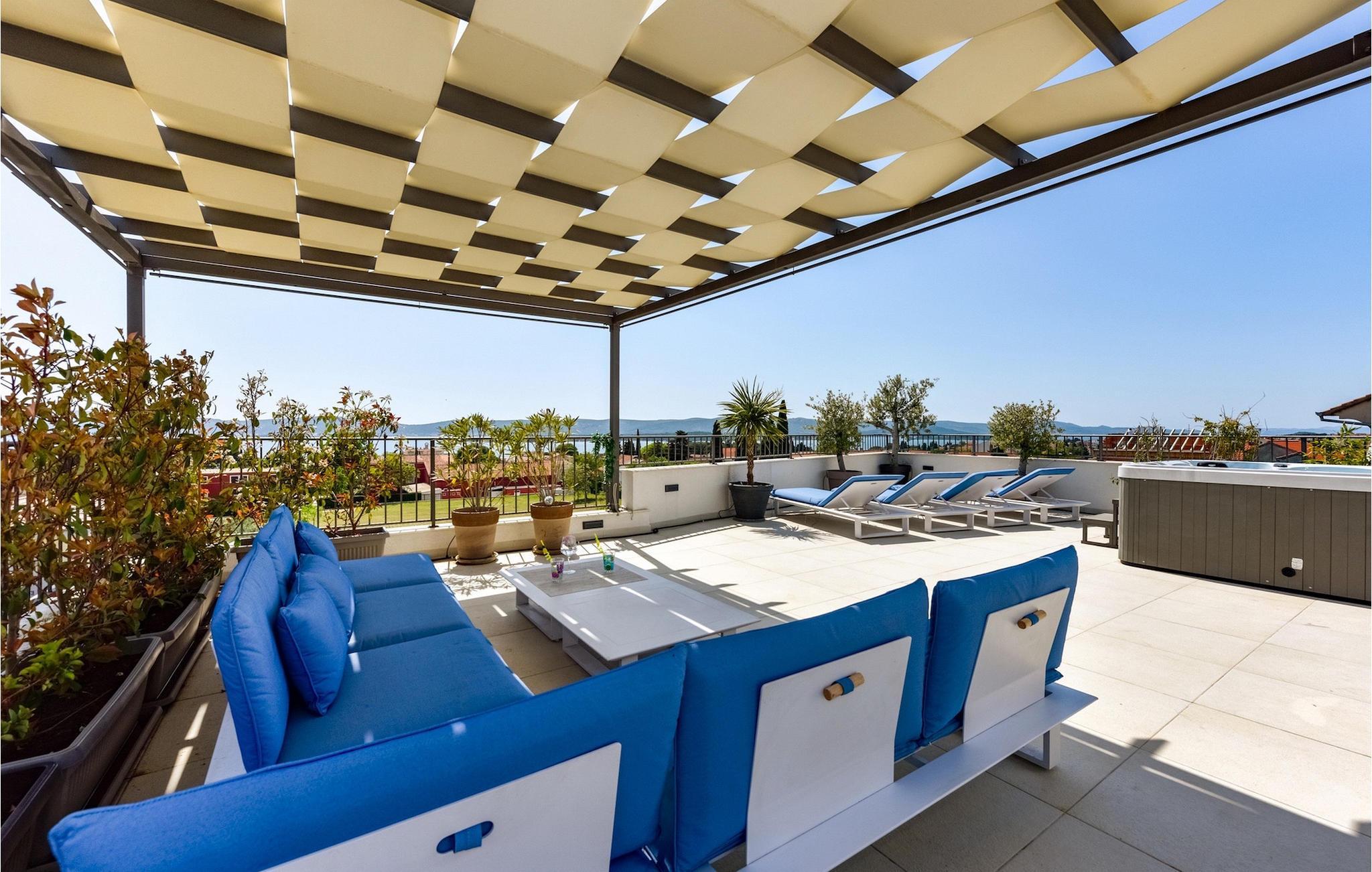 All diese Unterkunftsmöglichkeiten haben bereits einen guten Eindruck hinterlassen, aber die Dachterrasse mit Outdoor-Whirlpool ist das i-Tüpfelchen. Die großzügig bepflanzte Dachterrasse bietet Ihnen überdachte Liegestühle und Gartenmöbel, sodass Sie es hier auch in den Sommermonaten mit viel Sonne genießen können. Genießen Sie den Sonnenuntergang mit einem Cocktail in der Hand auf dem Dach dieses wunderschönen Villa!