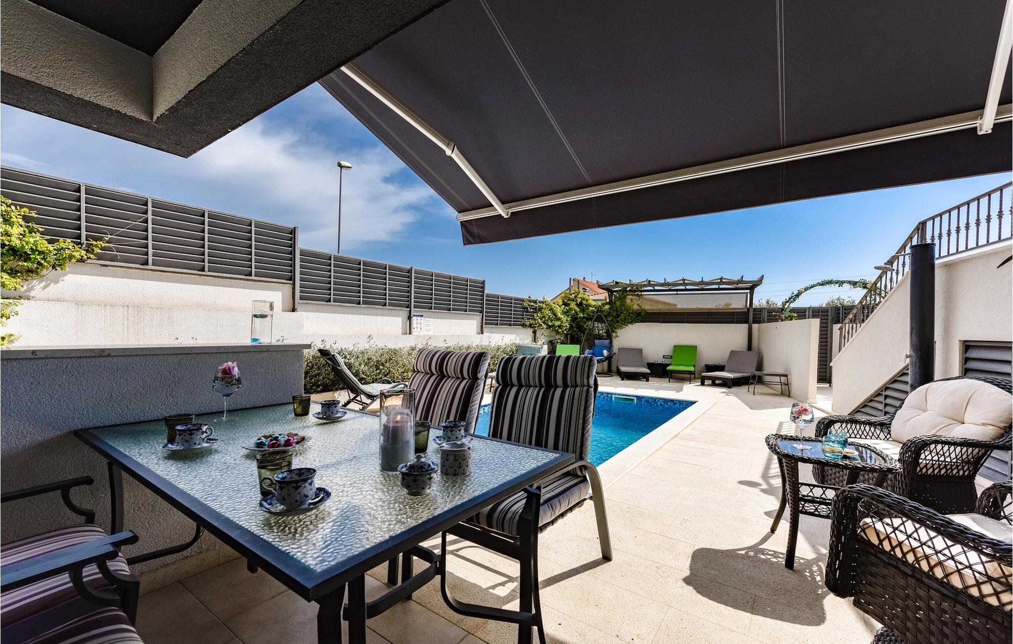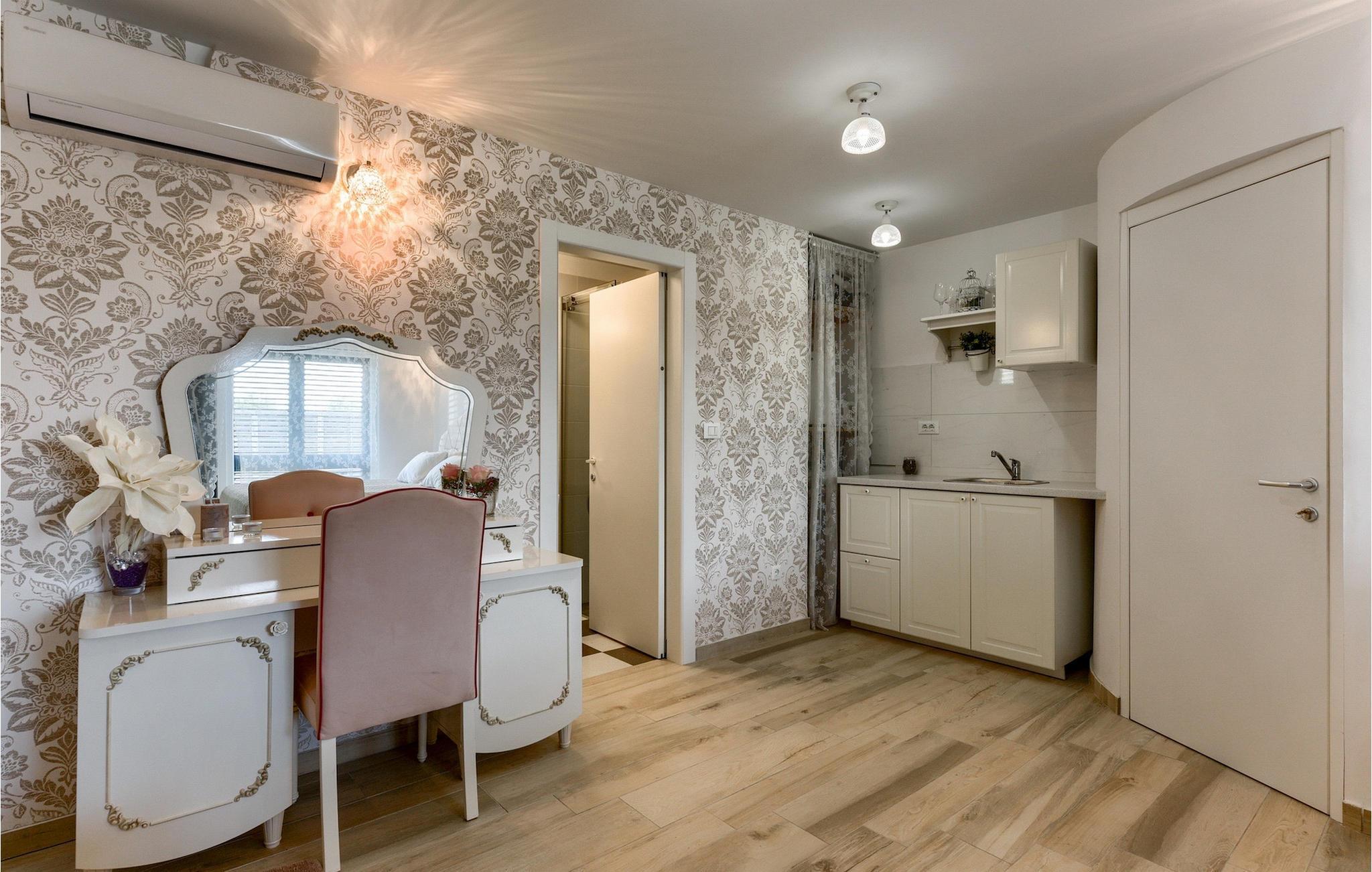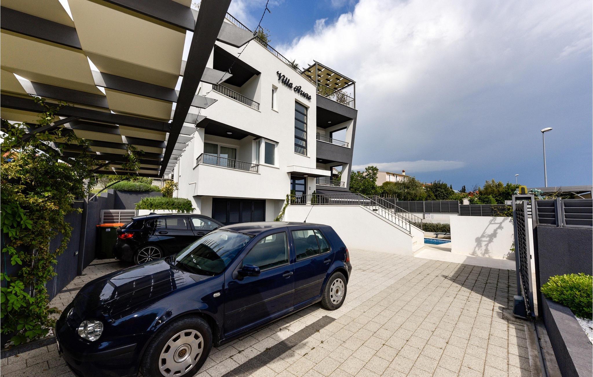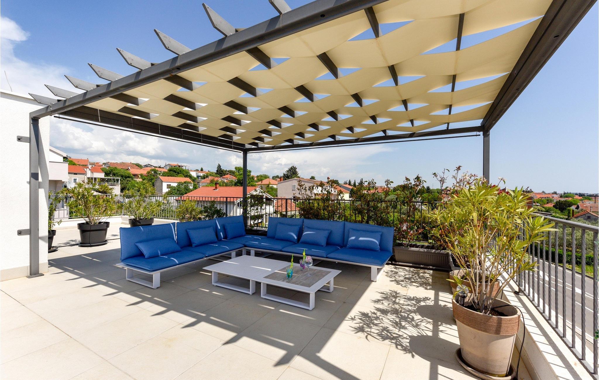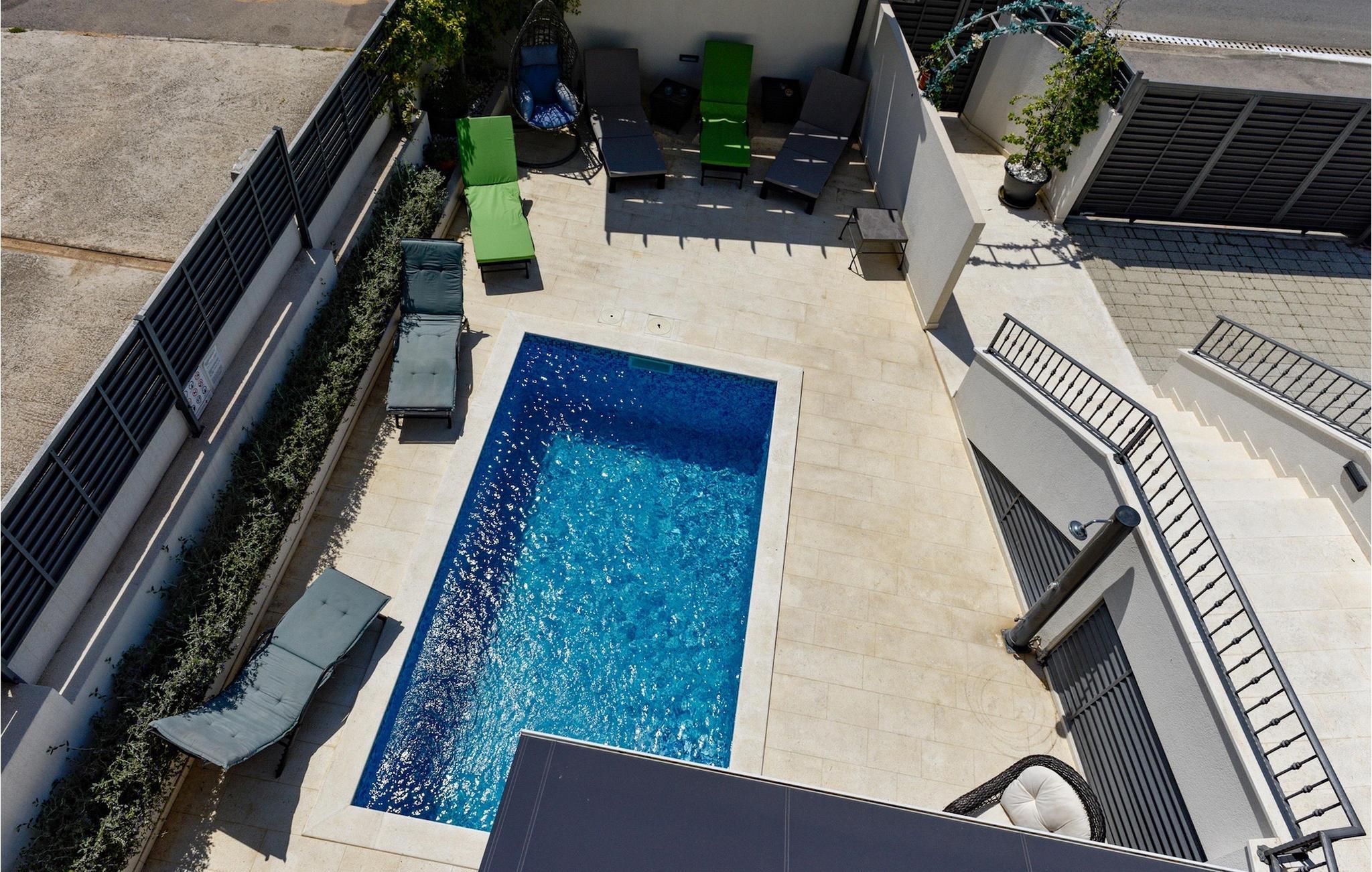 Abgerundet wird das Bild dieser Villa dadurch, dass das Grundstück komplett eingezäunt ist und sich in diesem inneren Teil des Hofs 4 teilweise überdachte Parkplätze befinden.Sveti Filip i Jakov befindet sich in unmittelbarer Nähe von Zadar und Biograd na Moru, sowie gegenüber der Insel Pašman. Diese kleine dalmatinische Stadt mit Blick auf das Meer hat eine reiche Geschichte, wobei die ersten schriftlichen Aufzeichnungen dieser Stadt aus dem 14. Jahrhundert stammen. Geschichtsliebhaber können historische Denkmäler wie die Kirche des Hl. Roko aus dem 11. Jahrhundert erkunden. Diese Gegend war berühmt für die Sommerresidenzen von Adelsfamilien, wie die Wahrzeichen Borelli-Haus mit Arboretum und Borelli-Park belegen, die nach der gleichnamigen Adelsfamilie benannt sind.