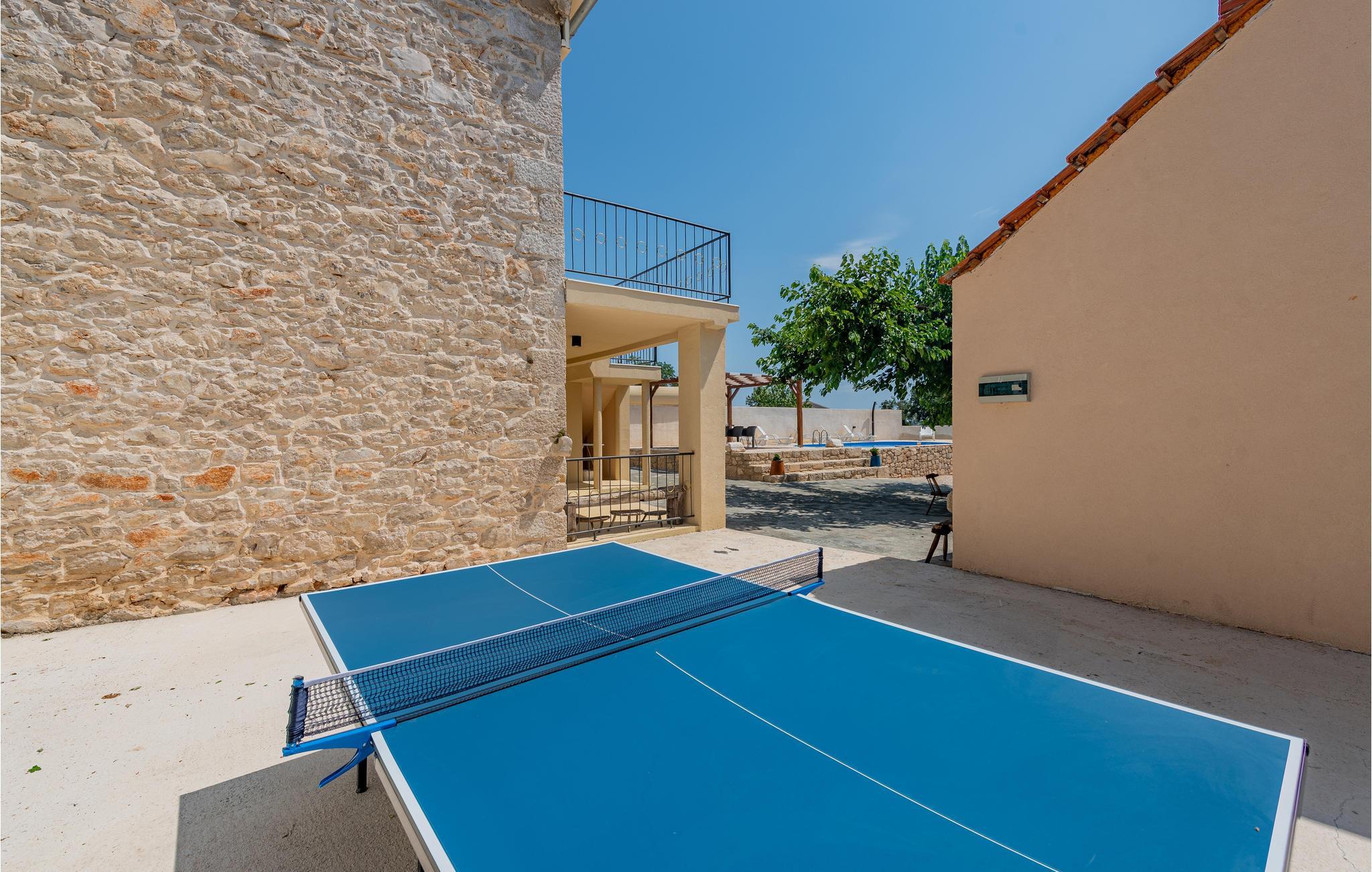 Das schöne Steinhaus und Nebengebäude ist Ihr Familienparadies für Ihren Kroatienurlaub. Hier können Sie zusammen entspannen, spielen und die Zeit bei gutem Essen und Getränken genießen. Genießen Sie als Familie den schönen, eingezäunten Außenbereich. Ihre Kinder werden ein Leuchten in Ihren Augen bekommen, denn Schaukel, Rutsche, Sandkasten und viel Spielzeuge stehen draußen bereit. Auch die Erwachsenen können Sie mit Outdoor-Aktivitäten vergnügen. Eine Bocciabahn, Tischtennis und ein Badmintonfeld tragen zu Ihrer Unterhaltung bei. Der große Swimmingpool wird der Treffpunkt Ihrer Familie sein und Ihnen viele spaßige Stunden bereiten.
