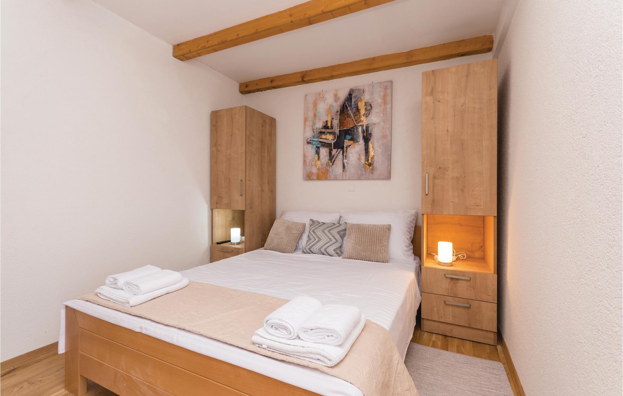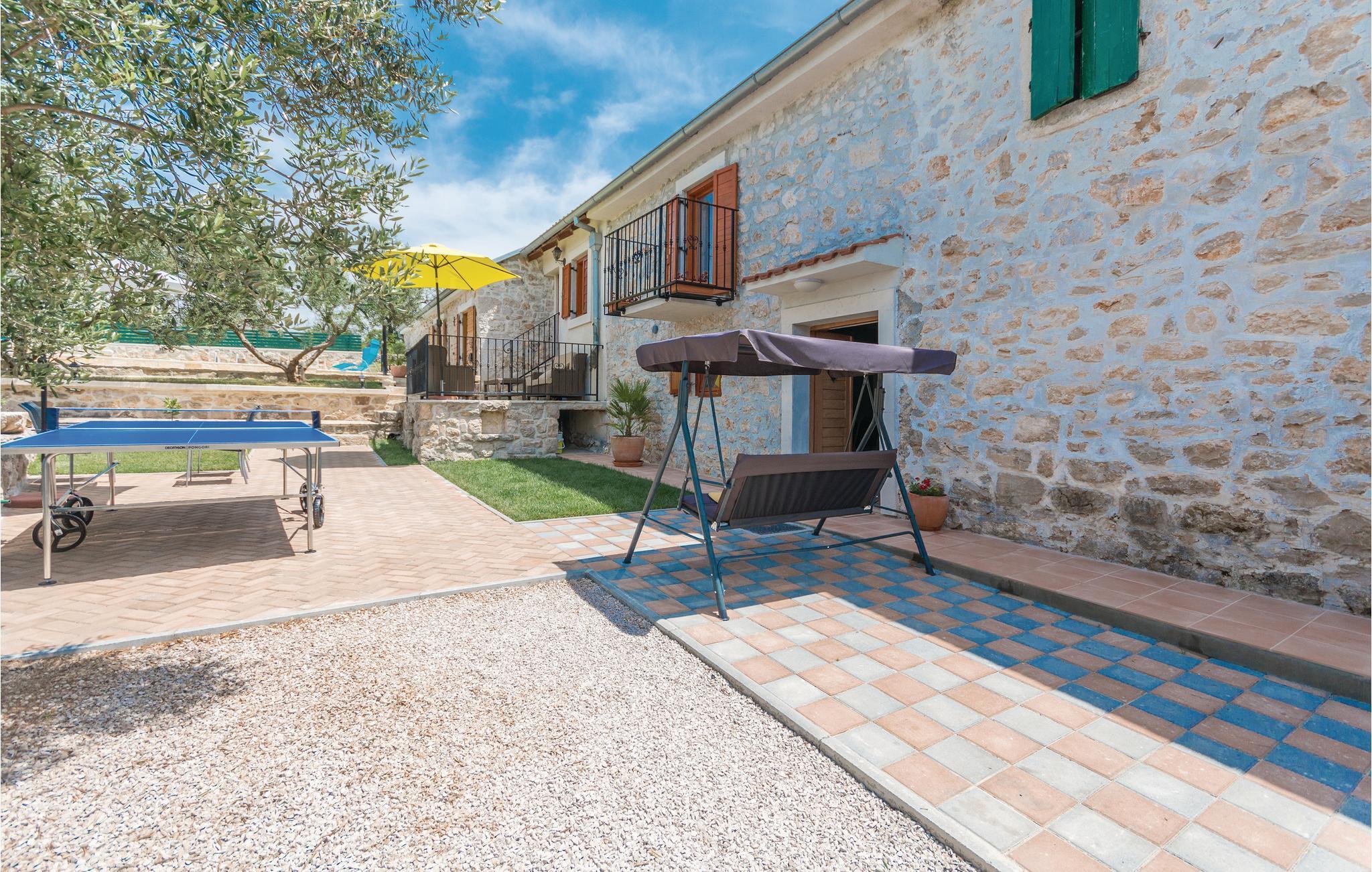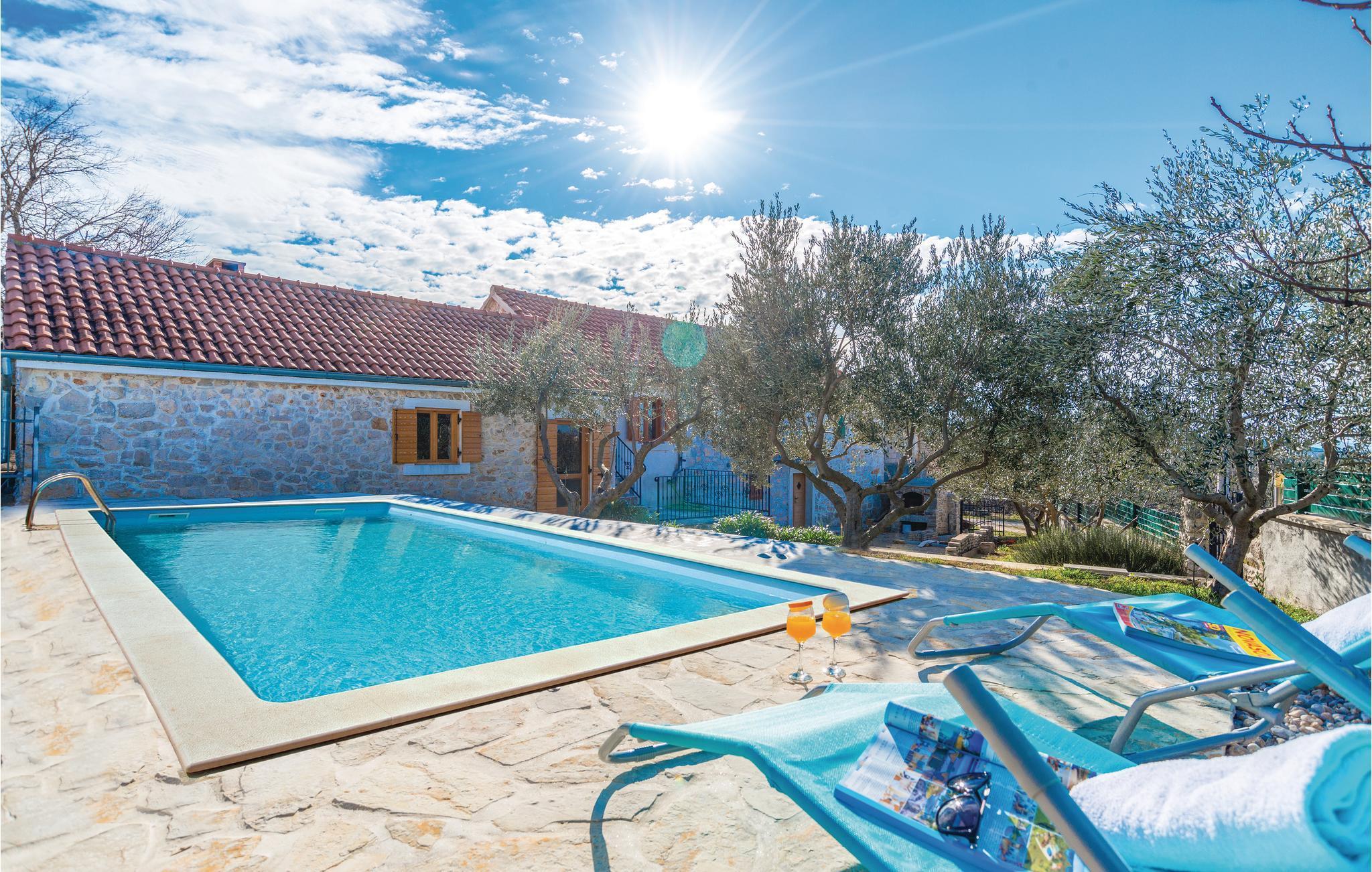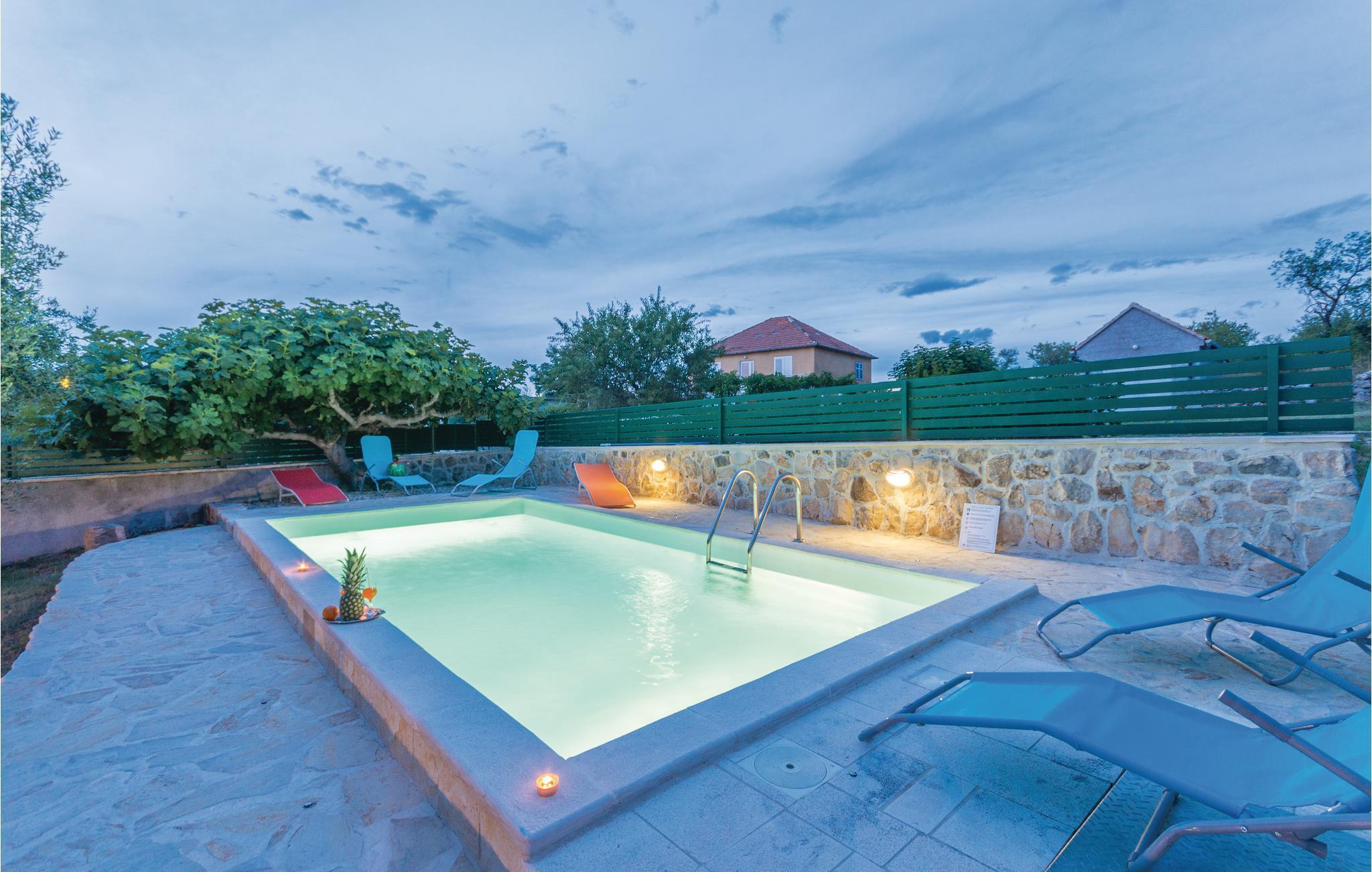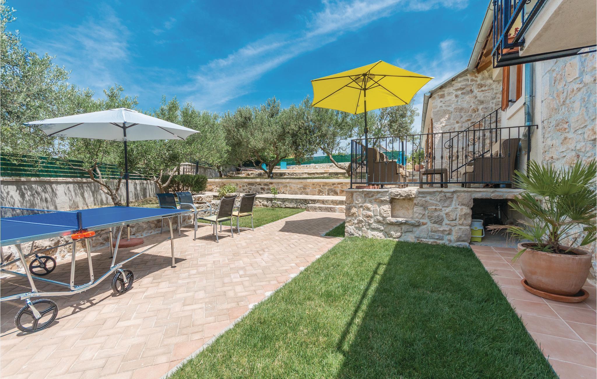 Dieses schöne Ferienhaus mit Pool und Blick auf den grünen Garten, lädt zum Entspannen ein. Der Wohnbereich ist geschmackvoll eingerichtet und im Garten können Sie mit Ihrer Familie oder Freunden angenehme Momente verbringen, indem Sie Ihre Lieblingsgerichte vom Grill zubereiten, Musik hören oder ein gutes Glas lokalen Weins trinken. In der Nähe befindet sich der See Vransko mit seinem Vogelschutzgebiet und daneben gibt es ausgezeichnete Radweg e sowie den Aussichtspunkt Kamenjak, von dem aus Sie den gesamten Kornati-Archipel sehen können. Die Stadt Biograd liegt ebenfalls in der Nähe, zwischen den beiden großen Städten Zadar und Šibenik, die reich an kulturellen und historischen Sehenswürdigkeiten sind. Ein Schlafzimmer ist ein Durchgangszimmer und hat eine ausziehbare Schlafcouch.