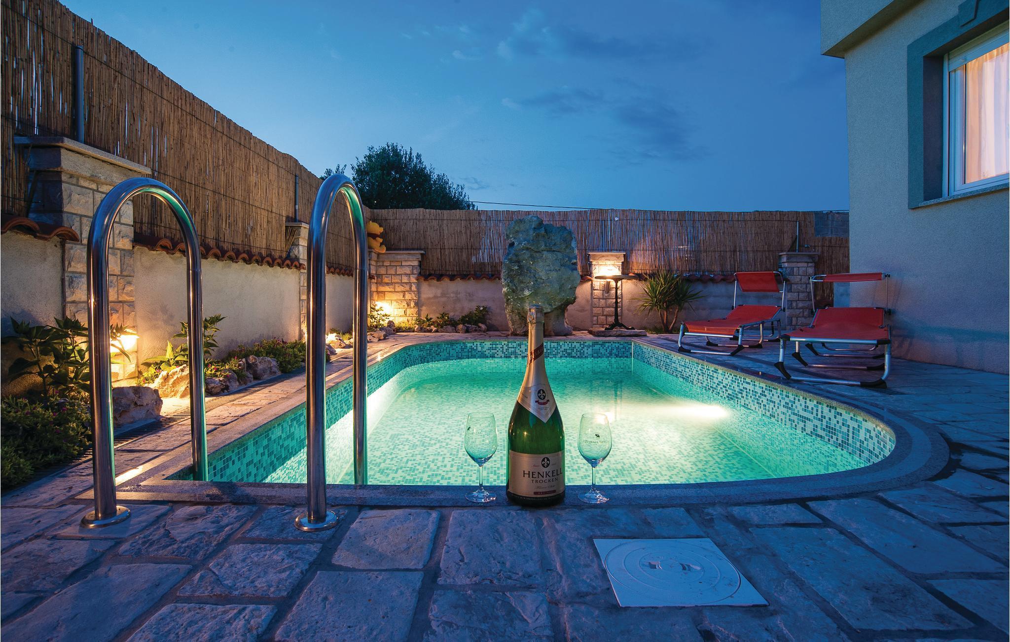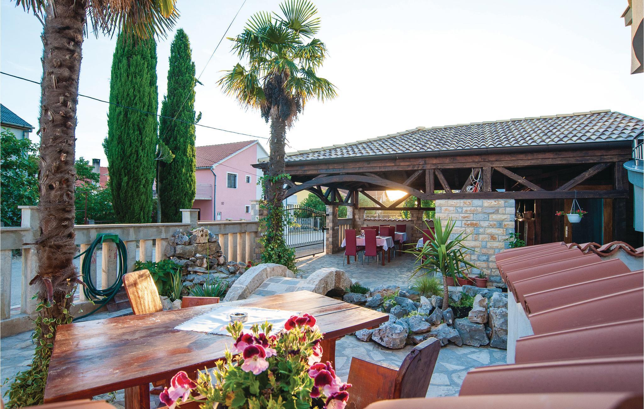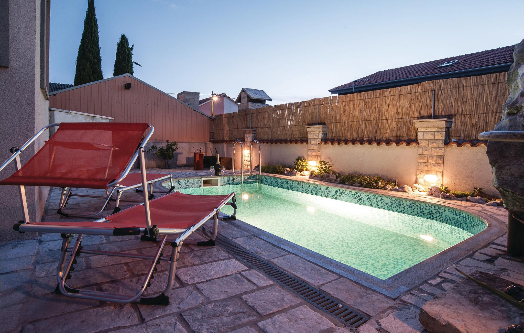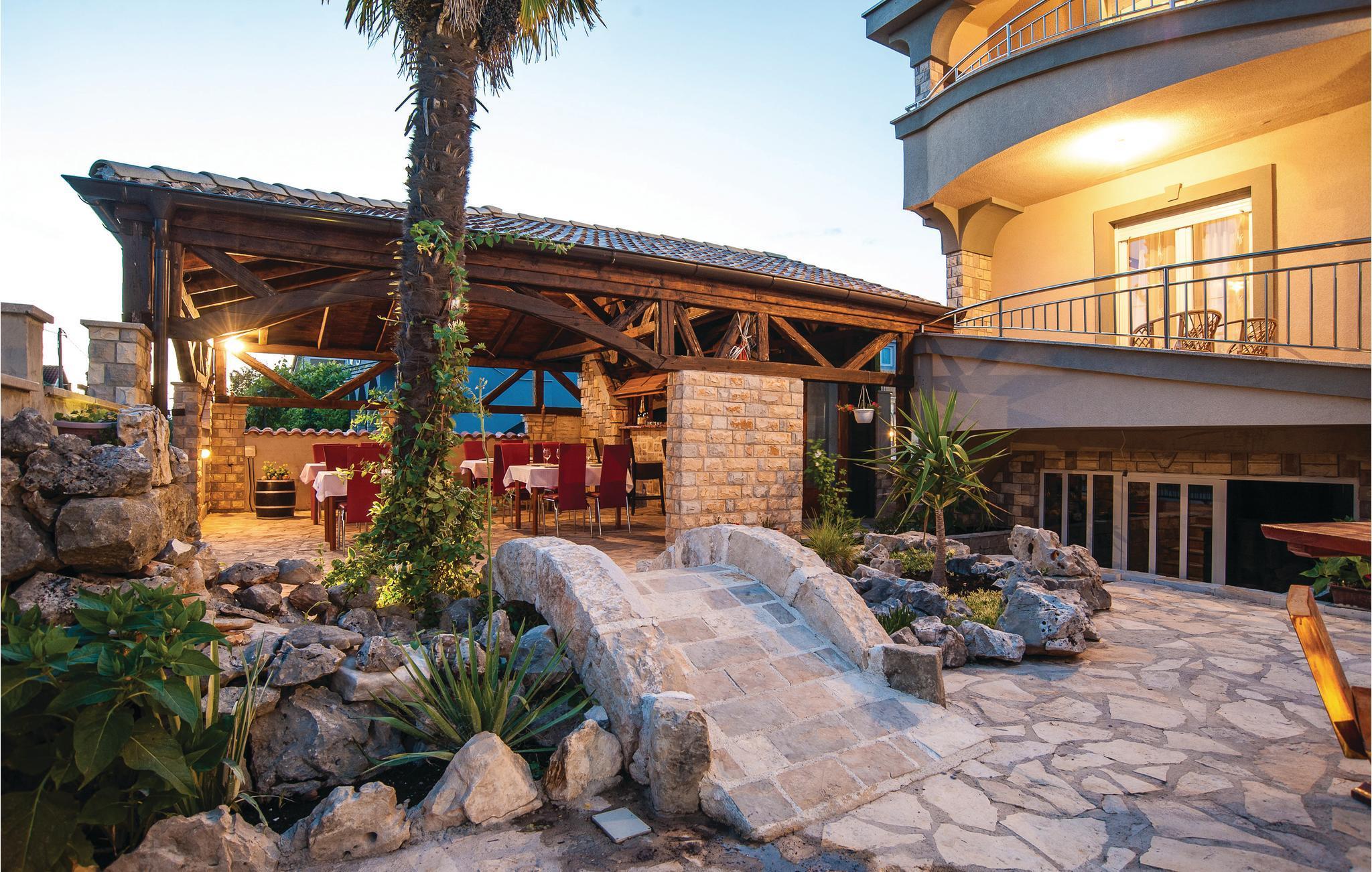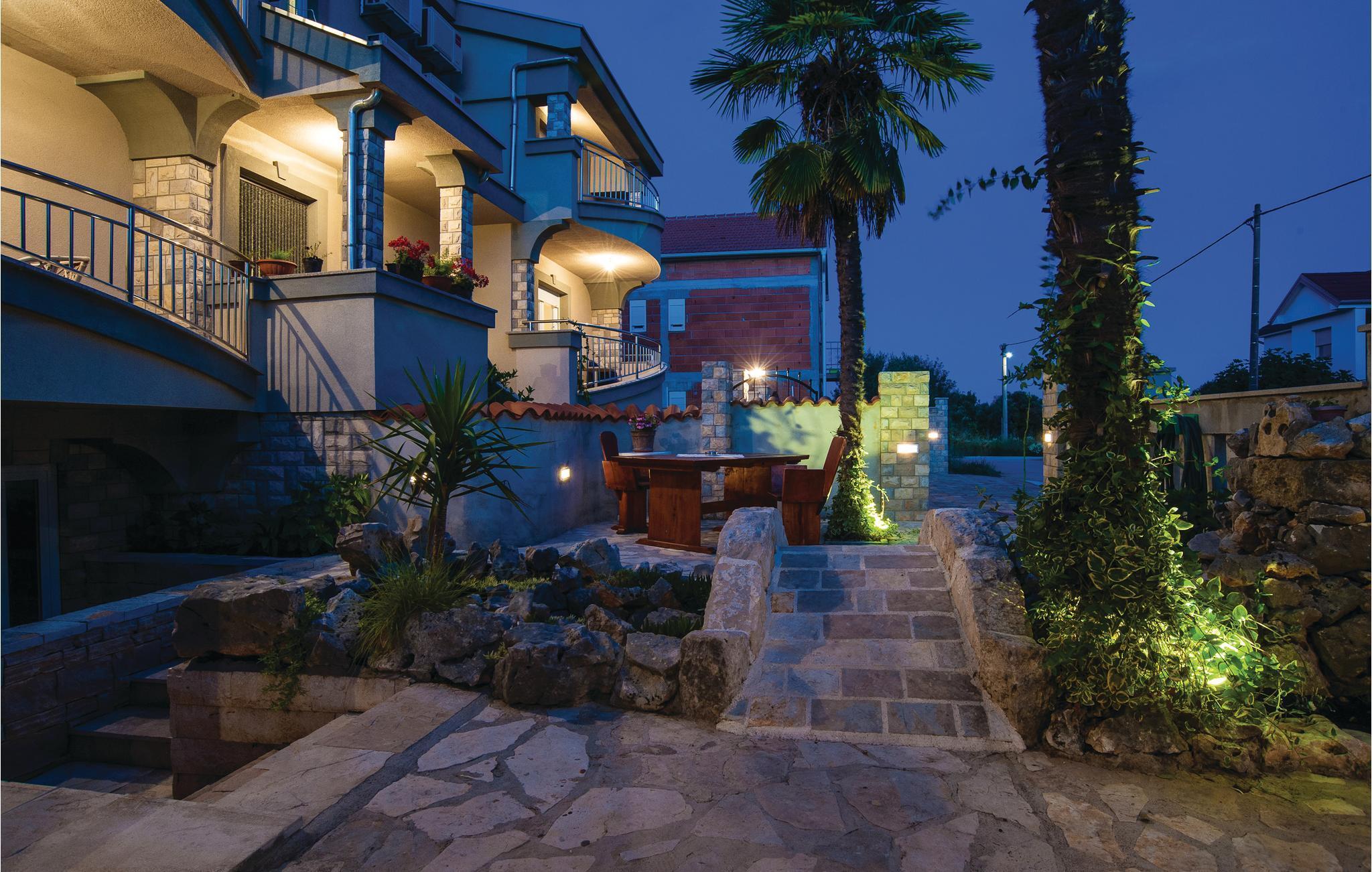 Dieses Ferienhaus mit Pool befindet sich im Ort Kakma, im Hinterland des beliebten Ortes Biograd na Moru. Hier kann eine große Anzahl von Personen zusammen ihren Urlaub verbringen. Es besteht aus Erdgeschoß, 1. und 2. Stock sowie zwei Zwischenetagen mit Außen- und Innentreppen. Die niedrigste Deckenhöhe beträgt 80 cm. Erfrischen Sie sich im Pool und erleben gesellige Stunden auf der überdachten Fläche mit Behelfsküche und Kamin. Besuchen Sie den alten Stadtkern von Vrana sowie die Festung Maskovic Han aus dem Jahr 1644, wo jedes Jahr detailgetreu die Rittertage von Vrana nachgespielt werden.