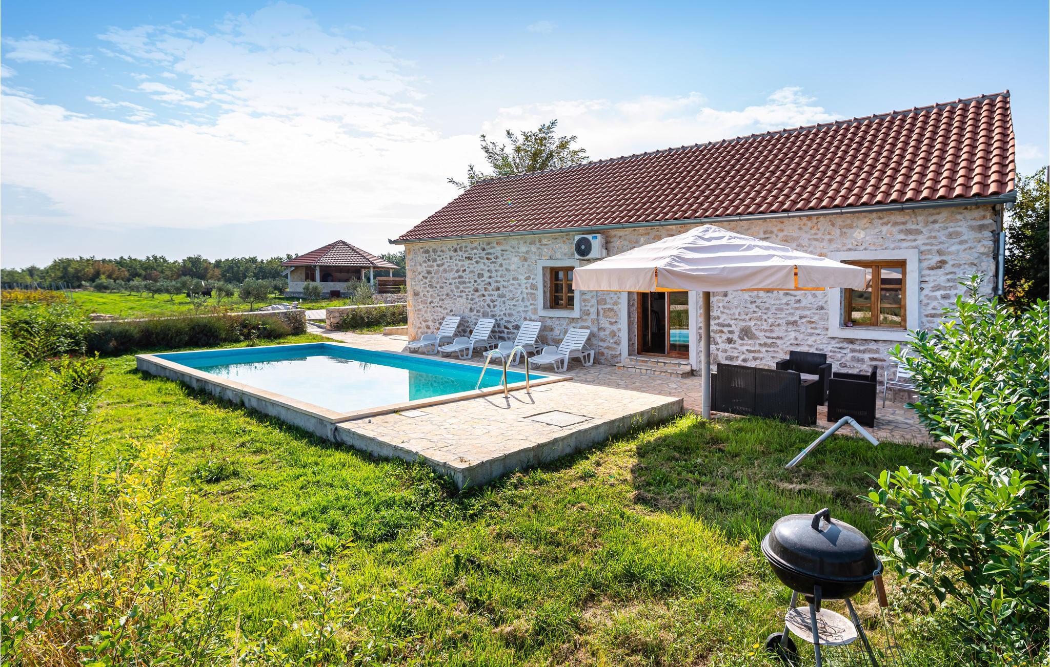 Das fantastische Steinhaus liegt in der grünen Umgebung eines Ökodorfes auf einem schönen Grundstück und besteht aus zwei Häusern. Dem Anwesen wurde eine Verjüngungskur verpasst und so erstrahlt es von Innen und Außen in gepflegtem Glanz. Eine Wohnung besteht aus einer Wohnküche, Bad, Toilette und zwei Schlafzimmern, während die andere Wohneinheit zwei Schlafzimmer und zwei Badezimmer beinhaltet. Auf dem Grundstück steht Ihnen ein eigener Pool zur Verfügung, von dem sich eine schöne Aussicht auf die Umgebung bietet. Innerhalb des Ökodorfes in Richtung der weitläufigen Felder gibt es eine große Laube, die gemeinschaftlich genutzt wird. Die nächste Stadt ist Biodgrad. die für ihre zwei Yachthäfen bekannt ist. Sehenswert sind die Altstadt von Zadar und der Naturpark am Vrana See.