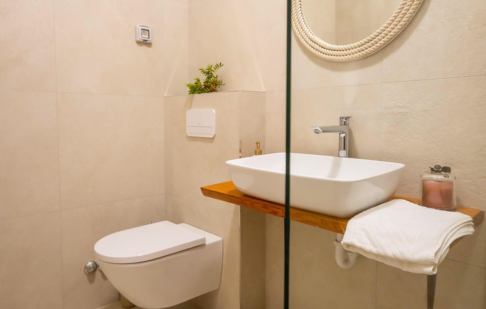 Badezimmer (nr. 4) - WC. Warmes und kaltes Wasser. Dusche
