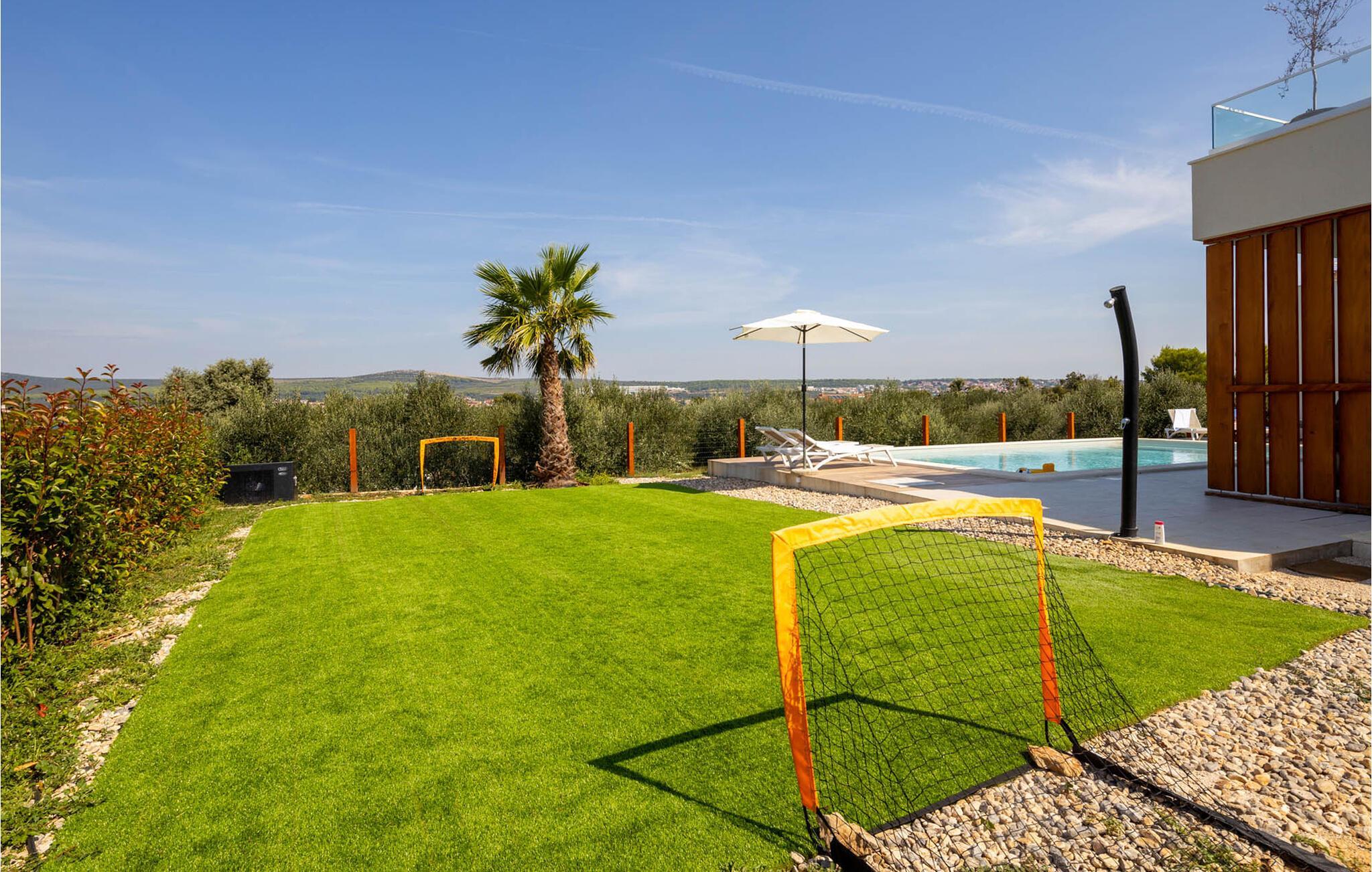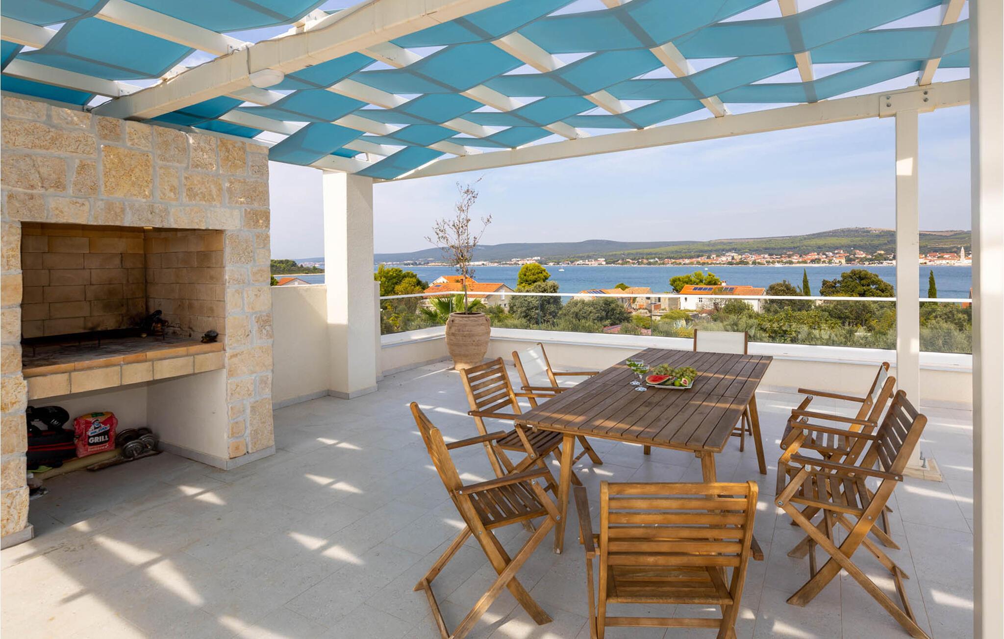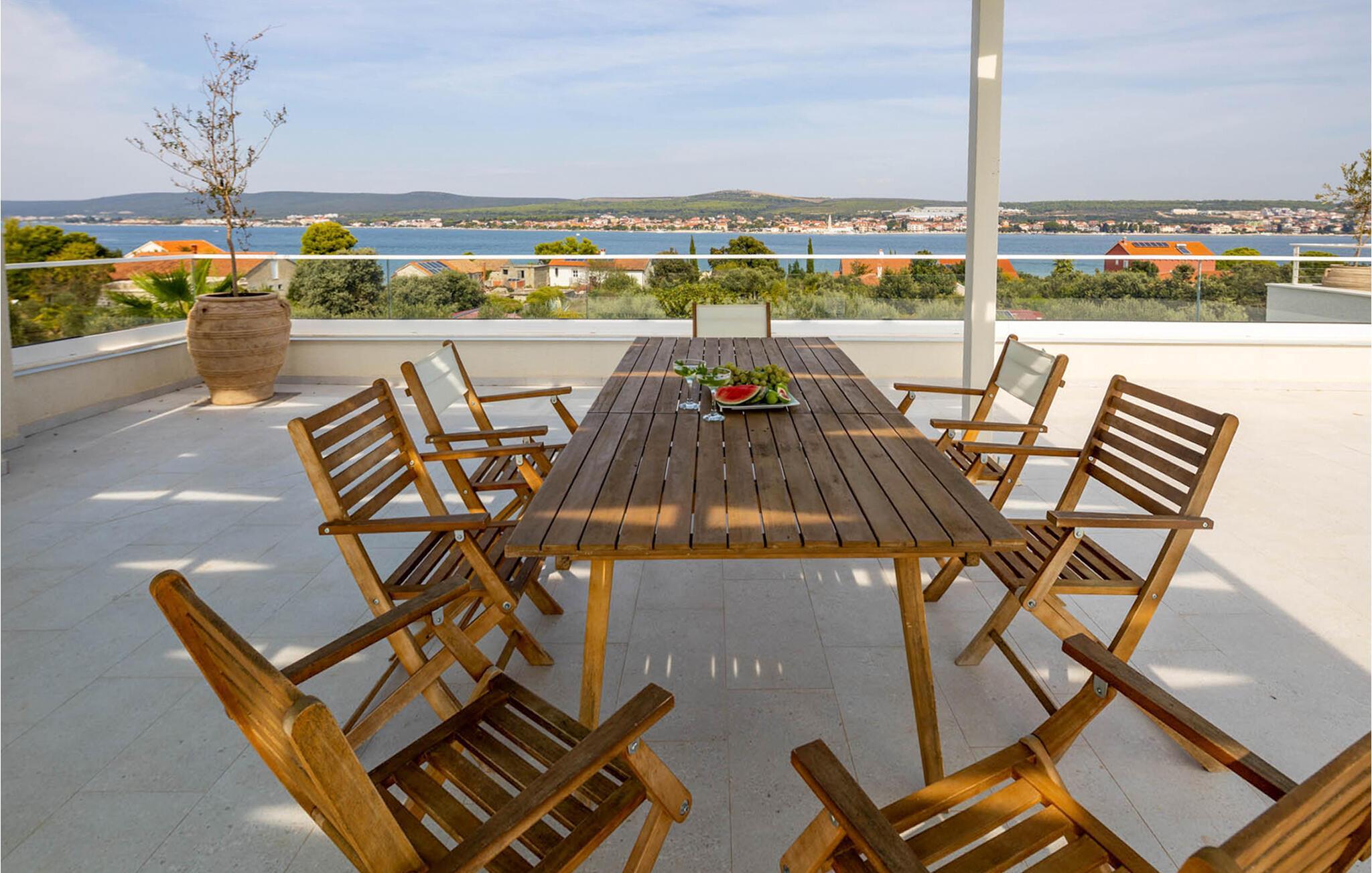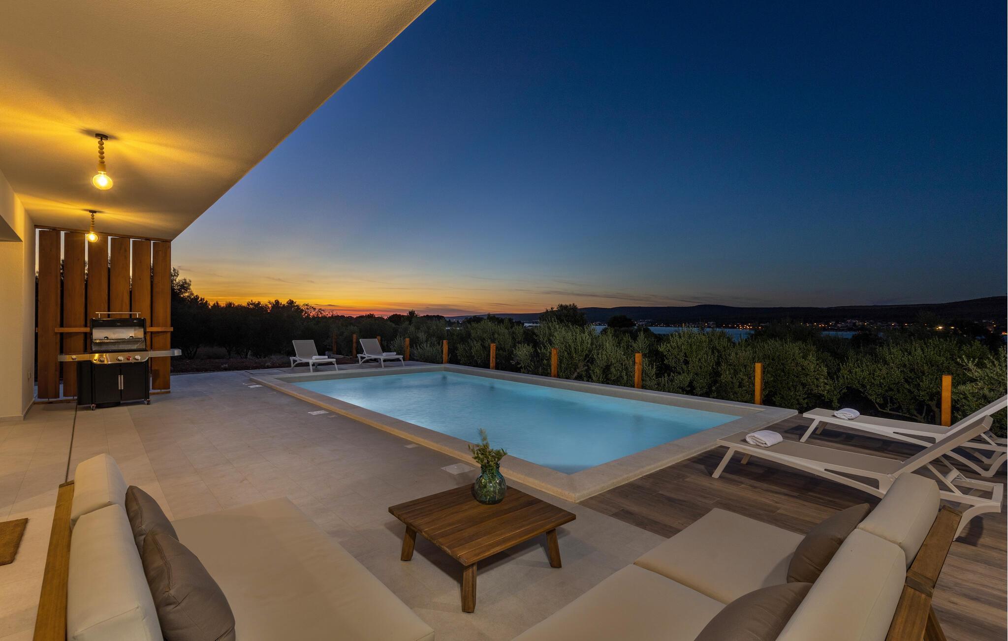 Die Villa Santa Lucia liegt auf der Insel Babac, die zwischen der Stadt Biograd na Moru und der Insel Pašman liegt. Die Insel Babac ist die einzige bewohnte Insel im Archipel aus 16 Inseln vor der Insel Pašman. Die Insel ist voller versteckter Buchten und Sandstrände und eignet sich ideal für einen ruhigen und ruhigen Urlaub. Wenn Sie dem hektischen Alltag entfliehen und den Charme dieser wunderschönen Insel genießen möchten, dann ist Villa Santa Lucia die richtige Wahl für Sie! Es wurde 2022 im zeitgenössischen Baustil erbaut, hat von allen Zimmern aus einen Blick auf die klare Adria und bietet seinen Gästen 207 m2 Wohnfläche, während die Gesamtfläche des Anwesens 780 m2 beträgt. In der Villa können maximal 8 Personen übernachten. Im Erdgeschoss können Sie es sich im Wohnzimmer bequem machen, das über ein Sofa, einen Sessel und einen Fernseher verfügt, und die Kinder werden sich über die PlayStation-Spielekonsole freuen. Außerdem gibt es eine voll ausgestattete Küche und ein Esszimmer mit einem Esstisch für 8 Personen. Sie werden sich in 4 Schlafzimmern wohlfühlen, von denen 2 mit einem Doppelbett und die restlichen zwei mit jeweils zwei Einzelbetten ausgestattet sind. Jedes Schlafzimmer verfügt über ein eigenes Badezimmer mit Dusche. Im Obergeschoss finden Sie eine 220 m² große, begehbare Dachterrasse mit einem Weber-Gasgrill für den Außenbereich, einem Esstisch mit 8 Sitzplätzen sowie Liegestühlen und Trainingsgeräten. Auf der Außenterrasse gibt es einen beheizten Pool von 45 m2, 1,4 m tief, der als zusätzliche Funktionalität über Massage verfügt. Daneben können Sie sich auf den 8 bereitgestellten Sonnenliegen sonnen. Zu den weiteren Annehmlichkeiten der Villa Santa Lucia gehören eine Waschmaschine, ein Bügeleisen und ein separates WC. Wenn Kinder in den Urlaub mitkommen, können Sie einen Futtertrog und ein Babybett nutzen. Wenn Sie mit Ihrem eigenen Boot anreisen, haben Sie die Möglichkeit, den Bootsliegeplatz zu nutzen. Wir bieten Ihnen die Vermietung eines 8-Meter-Bootes MF 795 und eines Skippers für den Transport zum Ufer für Besichtigungen der Inseln Pašman, Komornik und Galesnjak (eine herzförmige Insel) an. Im Preis inbegriffen: