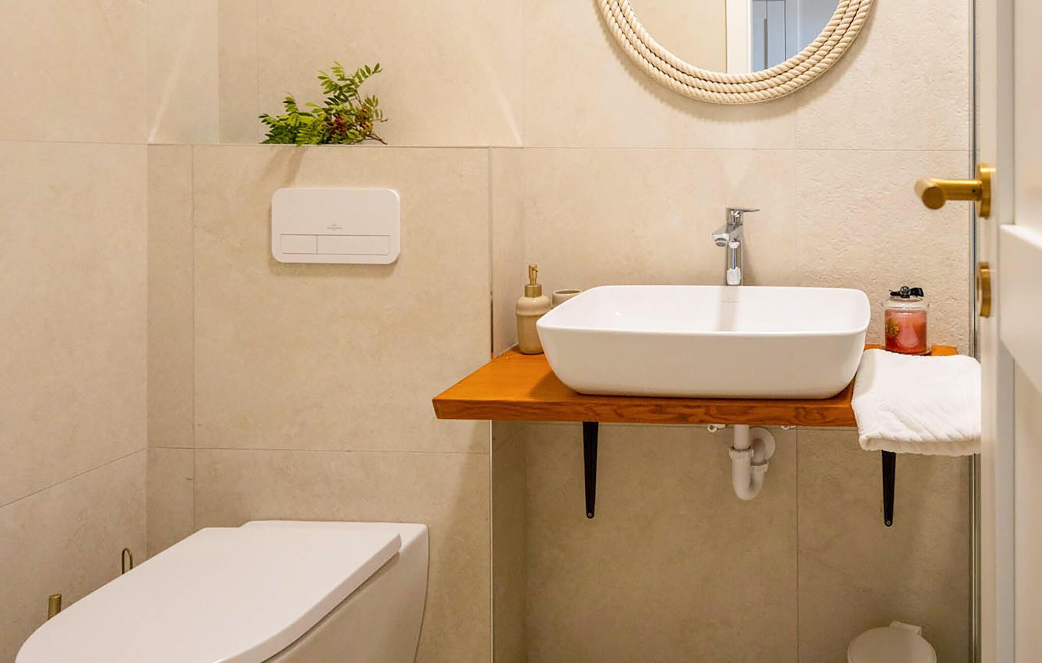 Badezimmer (nr. 1) - WC. Warmes und kaltes Wasser. Dusche