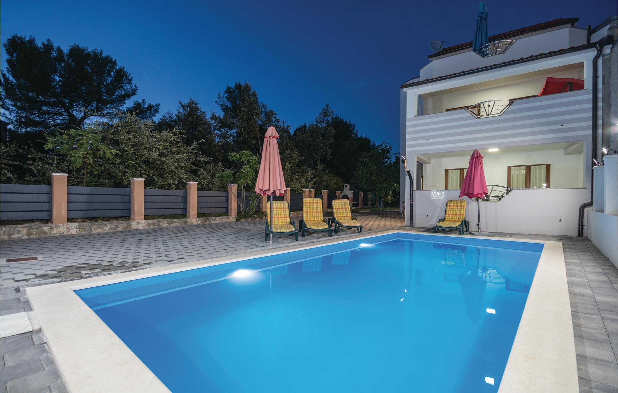 Bis zu acht Personen können in dieser Doppelhaus-Ferienwohnung mit Pool einen entspannten Urlaub erleben. Genießen Sie Ihren Morgenkaffee auf einer der drei großzügigen Terrassen. Das Grundstück ist komplett eingezäunt. Der nahe gelegene und mit Pinienwald umgebene Sandstrand „Pine beach“ ist Gebührenpflichtig. Sie haben die Möglichkeit kulinarische Spezialitäten in der Konoba Galia zu kosten die schnell zu erreichen ist. Wir empfehlen einen Besuch im Naturpark Vrana See, dem türkischen Han sowie der Städte Biograd und Zadar. Ab Juli 2017 ist die Eröffnung des Themenparks Mirnovec geplant, das bestimmt viele Familien mit Kindern anziehen wird.
