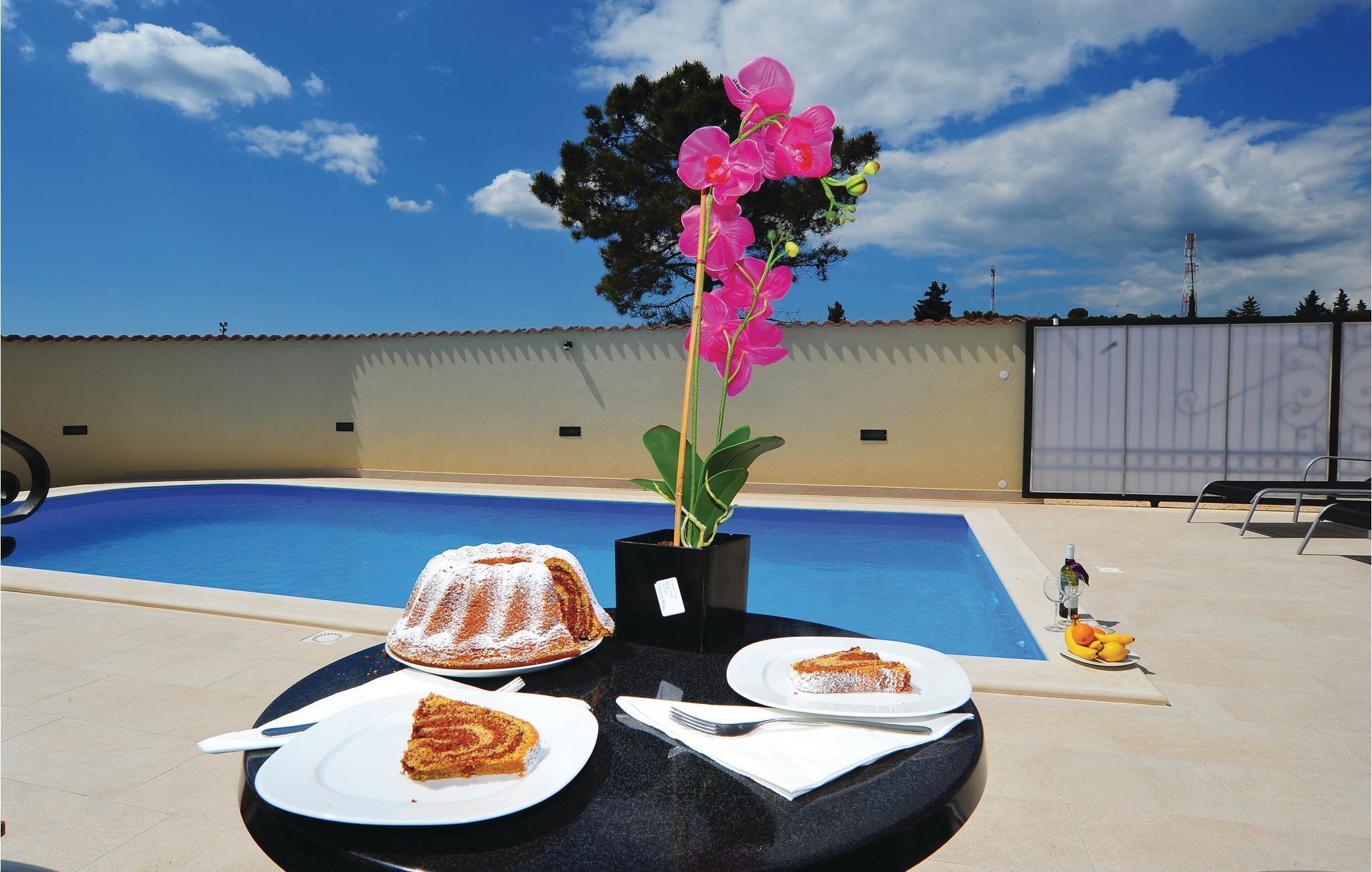 Dieses moderne Ferienhaus besteht aus fünf Schlafzimmern, sechs Bädern, einem Aufenthaltsraum, Grundstück mit Pool und Schaukel und ist ideal für Familien mit Kindern. 100 m weiter ist auch ein Kinderspielplatz. Pakostane ist ein Ort, in wessen Nähe der Naturpark Vrana, viele Nationalparks, Biograd und Stadt Zadar mit Denkmälern sowie viele Attraktionen und Veranstaltungen im Sommer liegen. Hier sind auch viele Restaurants, Tavernen und schöne Strände mit Kiefernwald, die die Auszeichnung als sauberste der Region bekommen haben. Das Gardenfestival in Tisno wird von jungen Menschen besucht, da dort viele Künstler der elektronischen Musik auftreten. 600 m vom Haus ist ein gebührenpflichtiger Sandstrand.