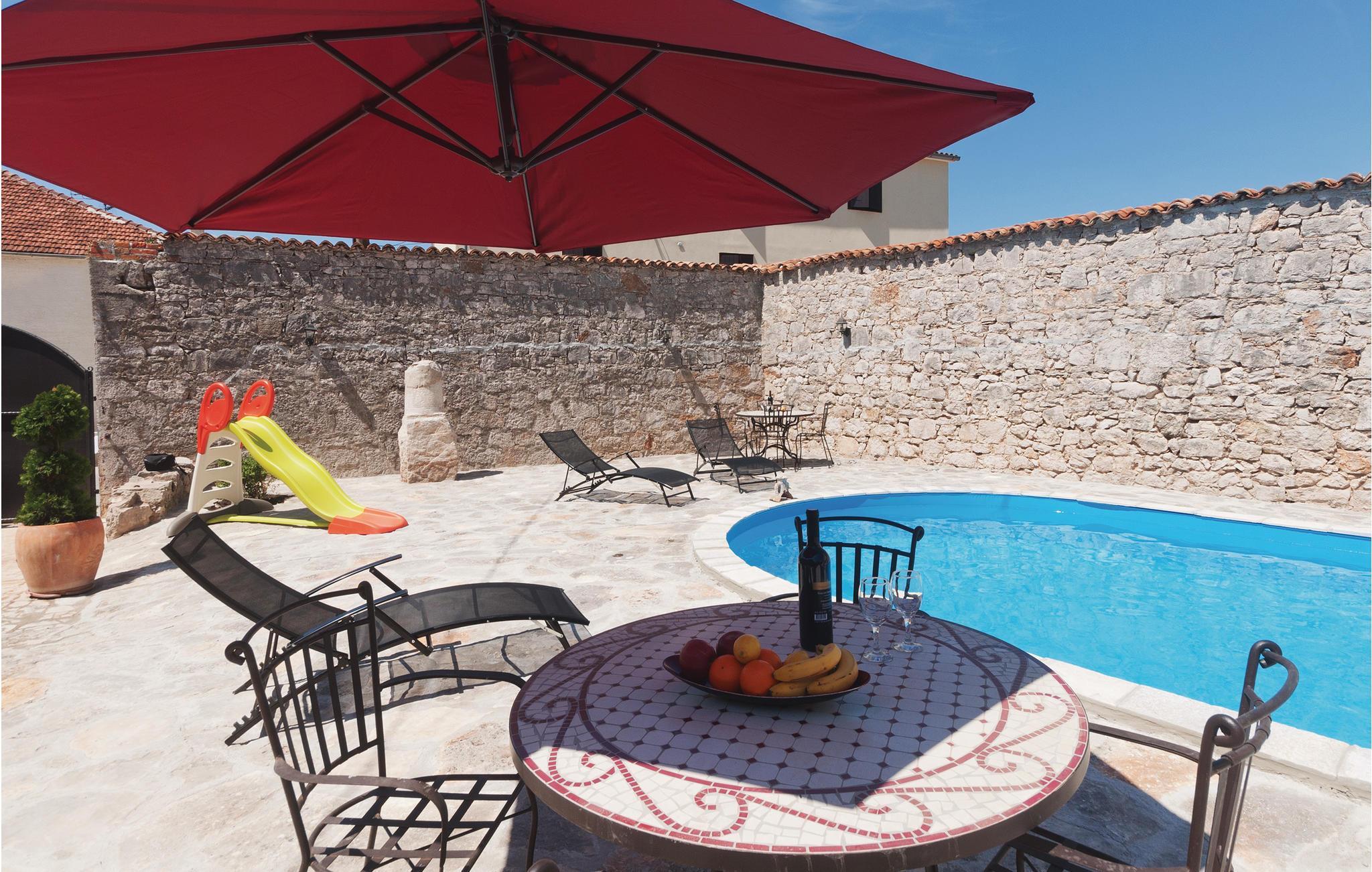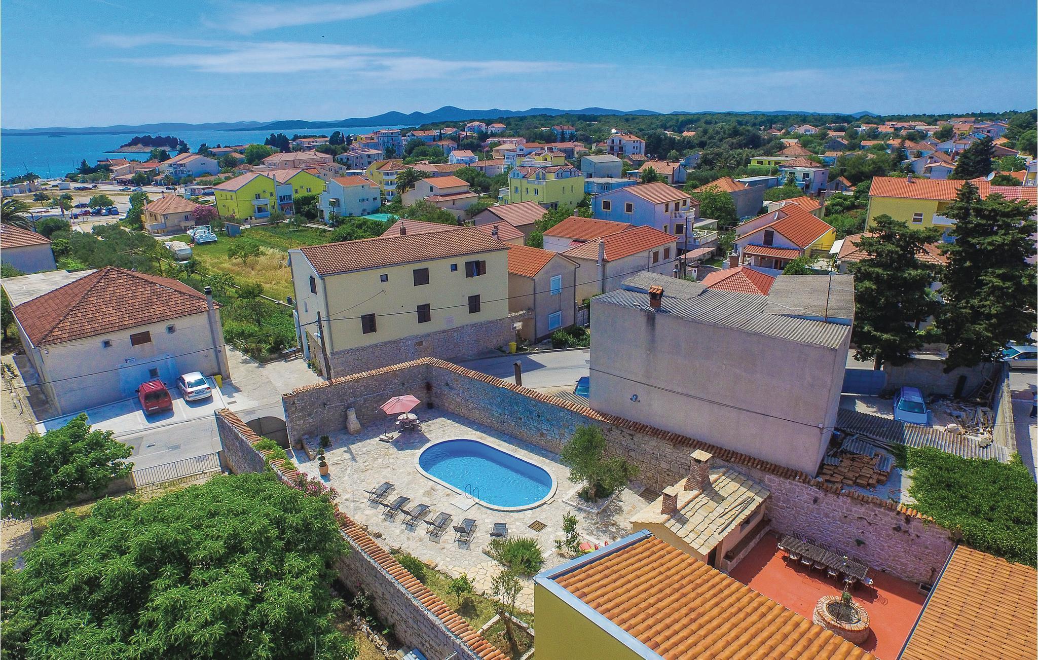 Im Ortszentrum von Pakoštane liegt dieses komfortable Ferienhaus. Mit einer Steinmauer umzäunt, mit grünem Garten und Pfahlresten aus der römischen Zeit, ist sie ideal für den Urlaub einer größeren Familie. Im Garten gibt es auch ein kleines Grillhaus. Der Pool bietet eine willkommene Erfrischung und die Kinder werden über die Rutsche direkt in den Pool plantschen können. Im Erdgeschoss liegt das Wohnzimmer mit rustikalen Details, einem Klavier und dem großen Tisch. Das Interieur im Obergeschoss ist modern. In der Nähe befinden sich gute Restaurants. Der Kiesstrand ist nur 100 m entfernt. Empfehlenswert sind auch Tagesausflüge zum Nationalpark Kornati oder dem nahgelegenen Naturpark Vraner See.