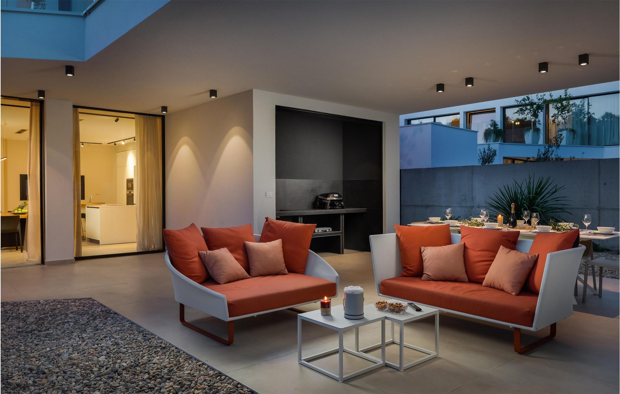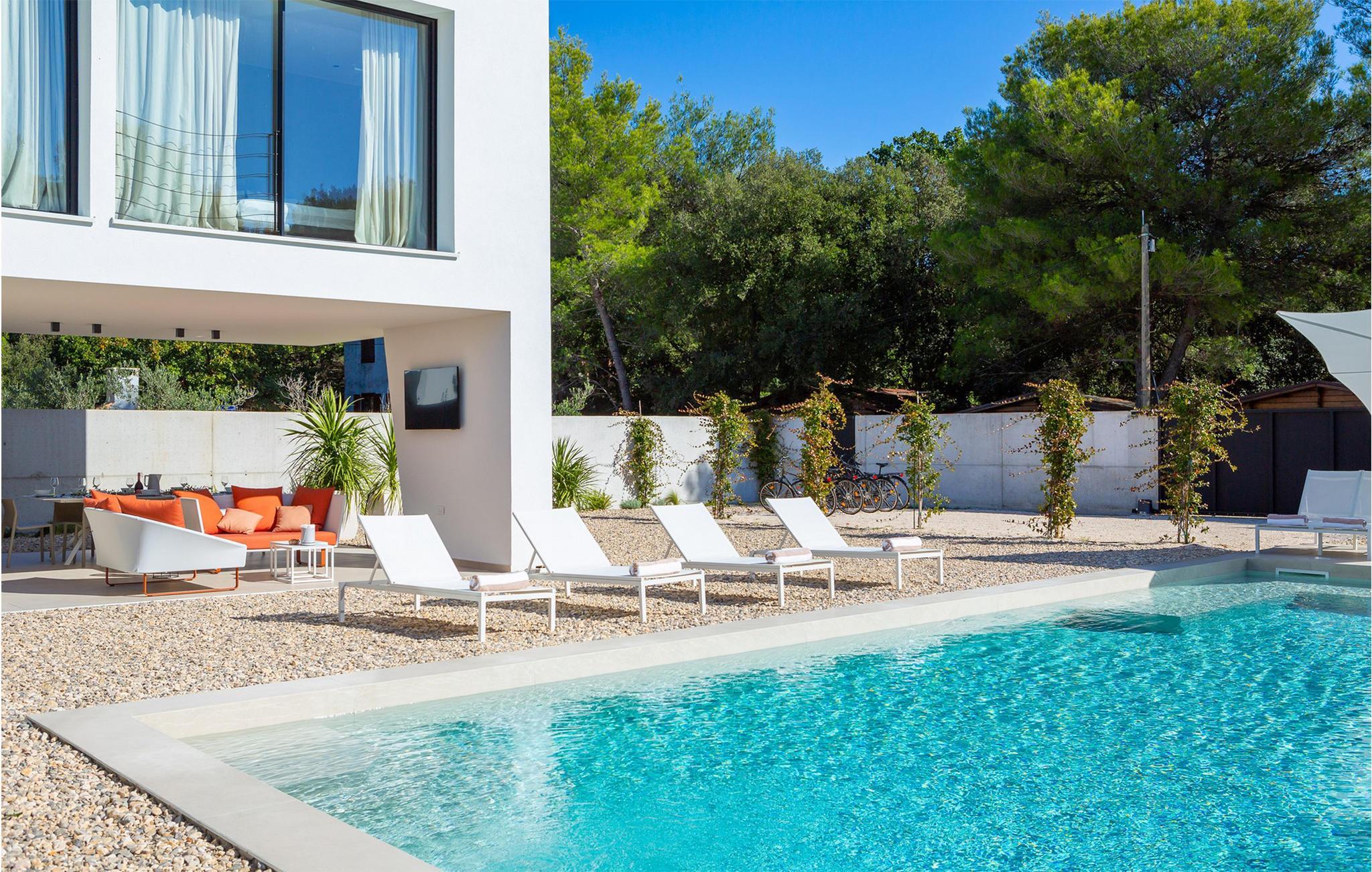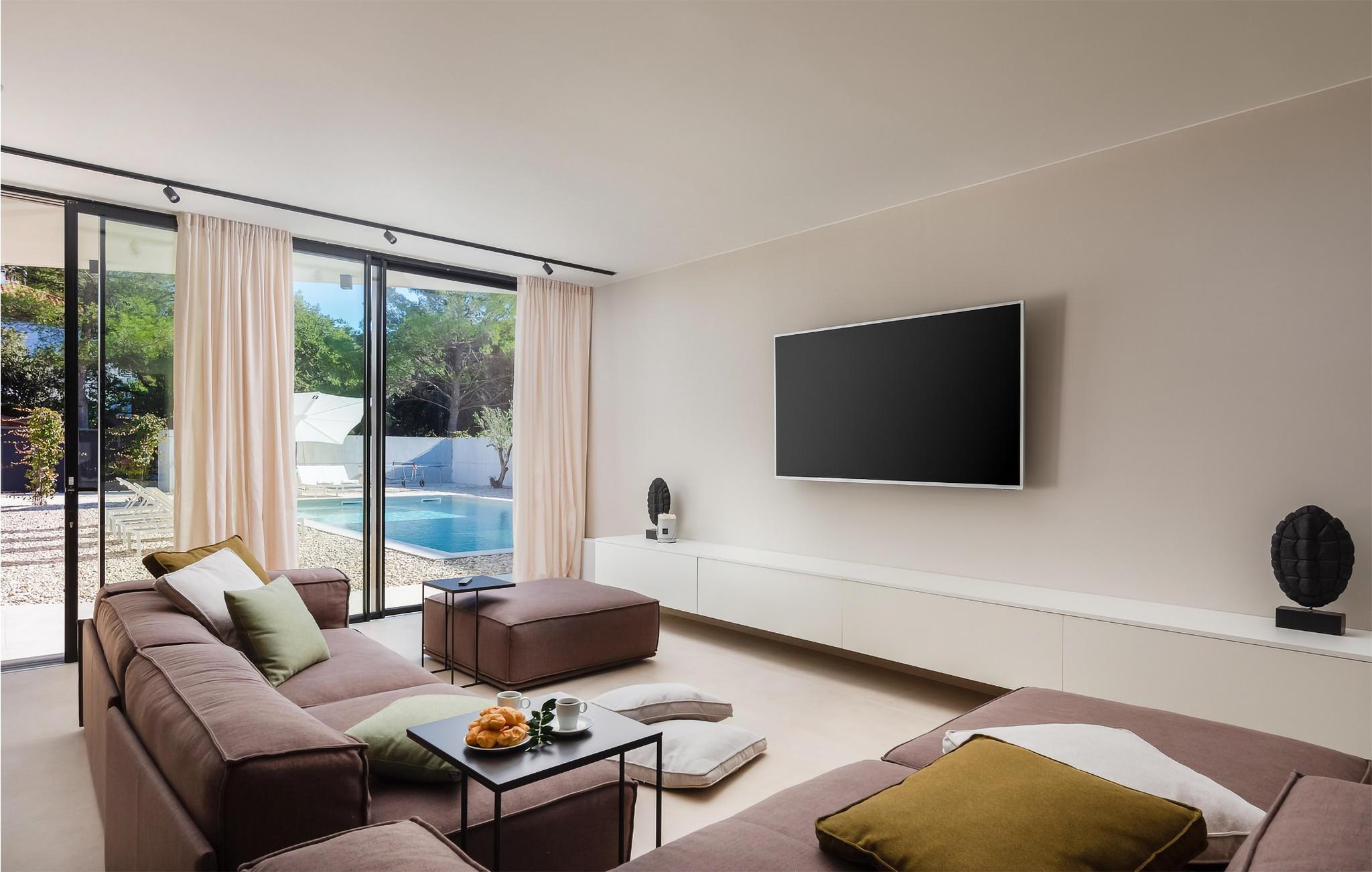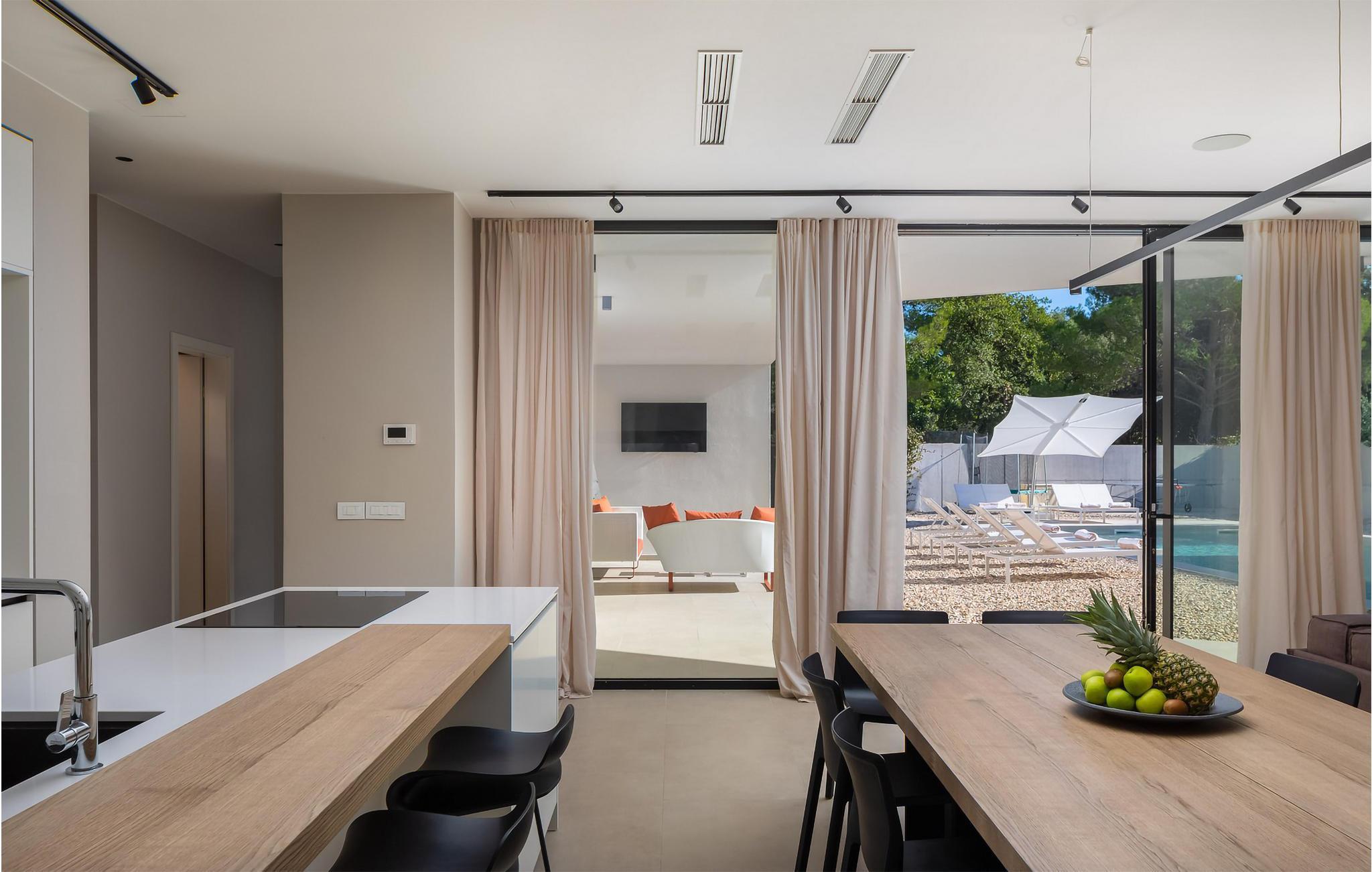 Die luxuriöse Villa Aron liegt nur wenige Schritte vom Meer entfernt und bietet Ihnen ein komfortables, top ausgestattetes Refugium, in dem Sie die zahlreichen Extras auch mit einer größeren Familie oder einer Gruppe von Freunden genießen können. Zaubern Sie in geselliger Runde kulinarische Highlights in der modernen Küche, lassen Sie das harmonische Ambiente bei ausgedehnten Mahlzeiten auf sich wirken und entspannen Sie abends bei Ihrer Lieblingsserie – oder vergnügen Sie sich an der PlayStation oder an der Nintendo Wii.