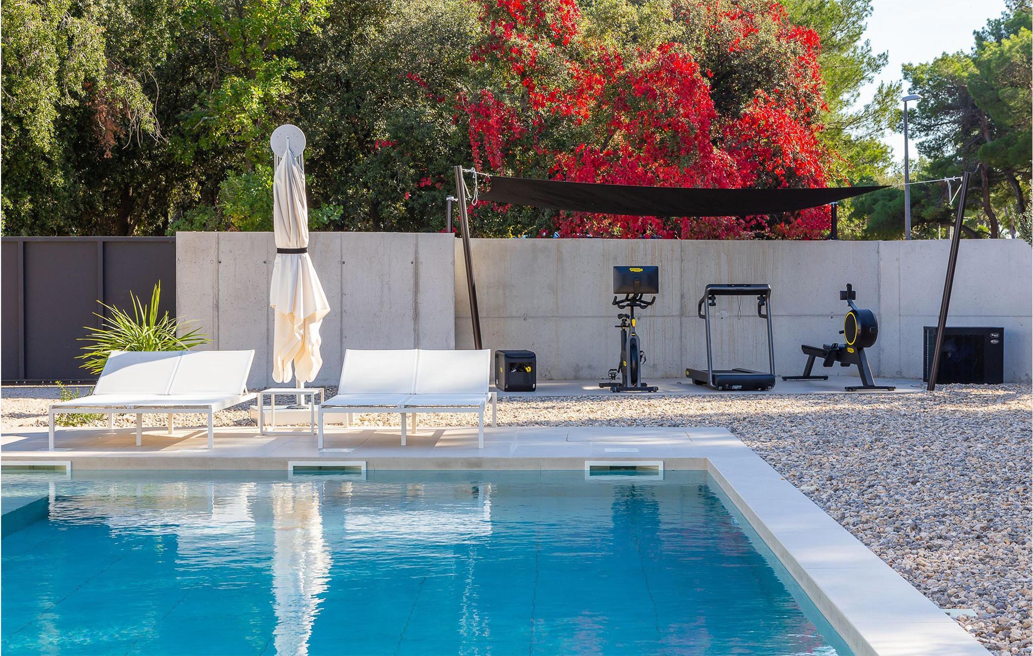 Pure Erholung erwartet Sie auch im wunderschönen Pool, der mit bequemen Sonnenliegen ausgestattet ist. Nutzen Sie den Fitnessbereich für Ihr Workout oder gönnen Sie sich wohlige Momente im Whirlpool. Spielen Sie Tischtennis oder Badminton, während sich die Kinder auf dem Spielplatz austoben, und plaudern Sie bei einem Glas Wein in der Lounge bis tief in die lauen Sommernächte hinein. Die Sommerküche mit einladender Essgelegenheit ist der ideale Ort für stimmungsvolle Grillabende.