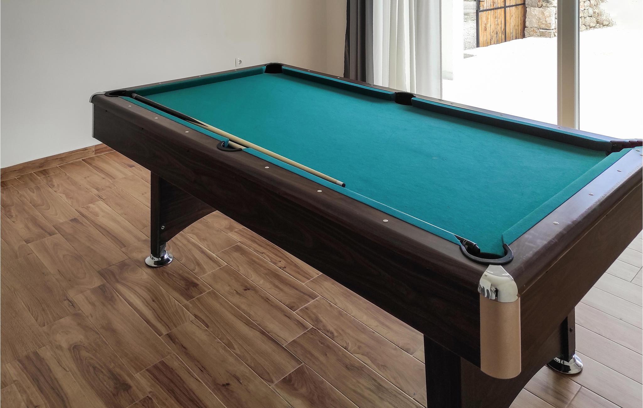 Es handelt sich um ein Ferienhaus mit zwei Etagen, die durch eine Innentreppe verbunden sind. Im ersten Stock gibt es eine Küche mit Wohnzimmer, 1 Schlafzimmer mit Bad, 1 WC und einen Unterhaltungsraum mit Billard, Tischfußball, Darts und einem Tisch für Gesellschaftsspiele. Auf der zweiten Etage befinden sich 3 Schlafzimmer und 2 Badezimmer.