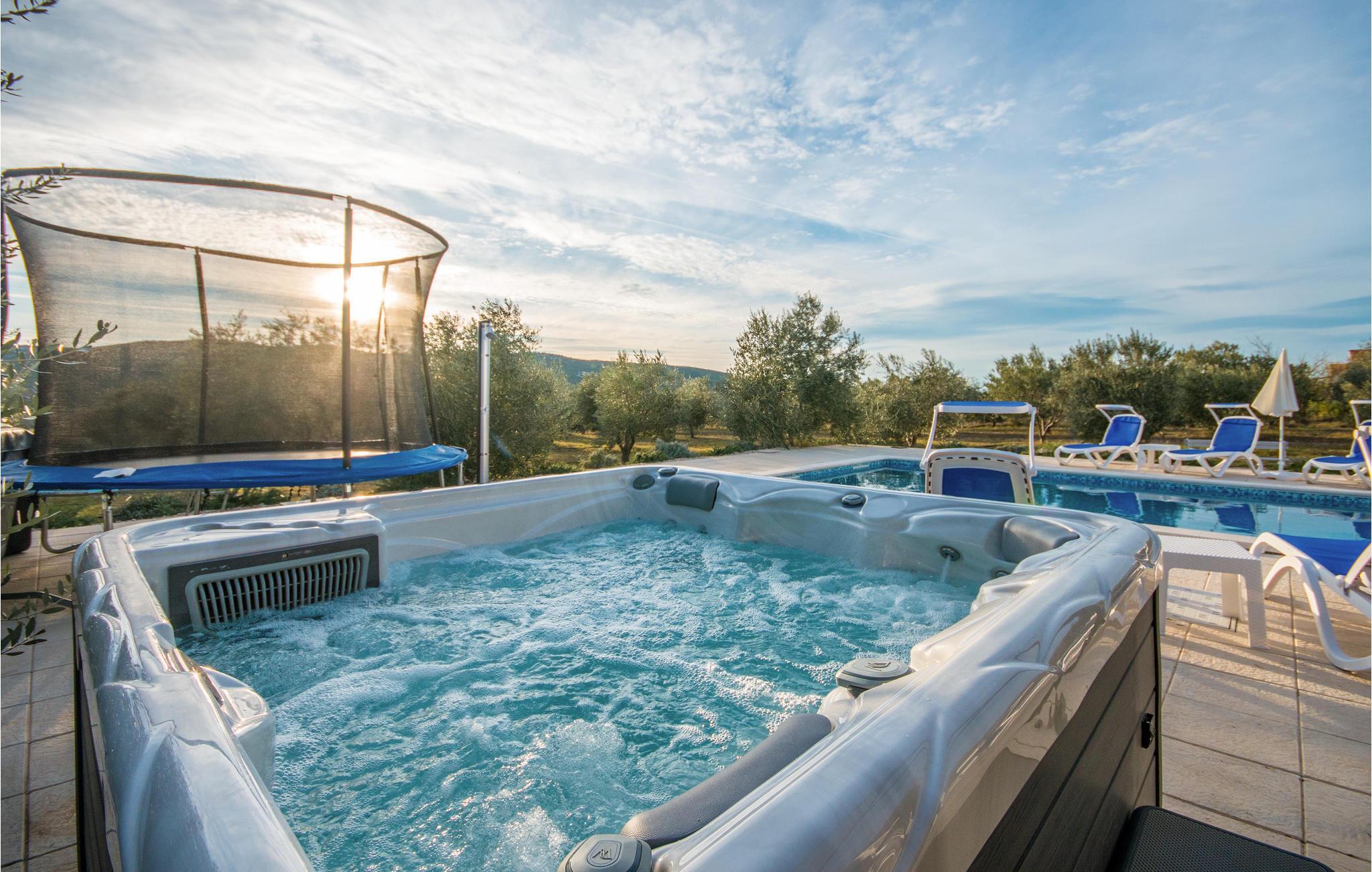Entspannen Sie auf den Terrassen in bequemen Gartenmöbeln und erfrischen Sie sich im Pool, wann immer Ihnen danach ist.?Für Ihre Kinder sind auf dem Grundstück verschiedene Spielgeräte vorhanden, außerdem gibt es Fußballtorpfosten, Badmintonnetz und Trampolin.