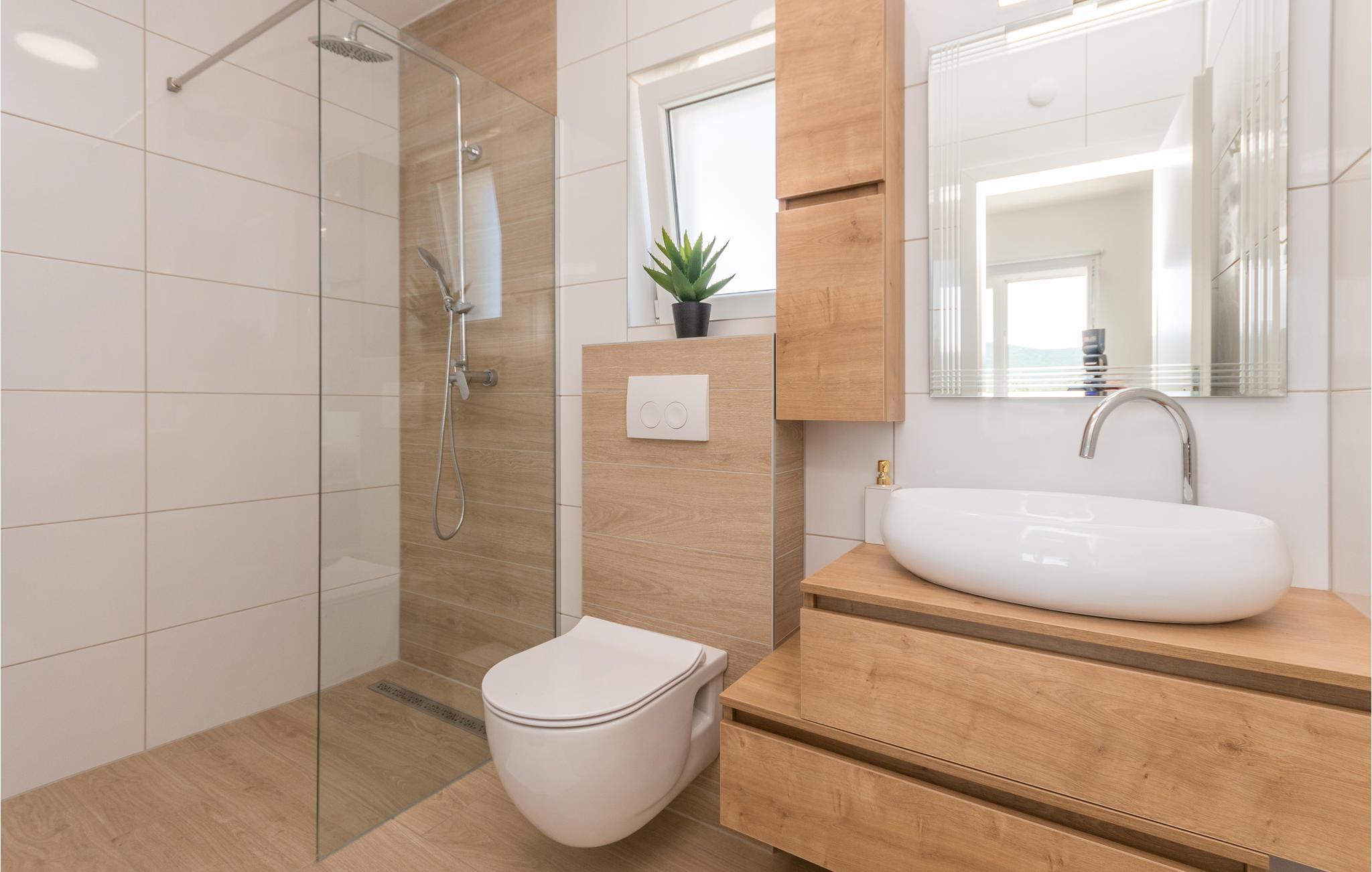 Badezimmer 5m2 (nr. 1) - WC. Warmes und kaltes Wasser. Dusche