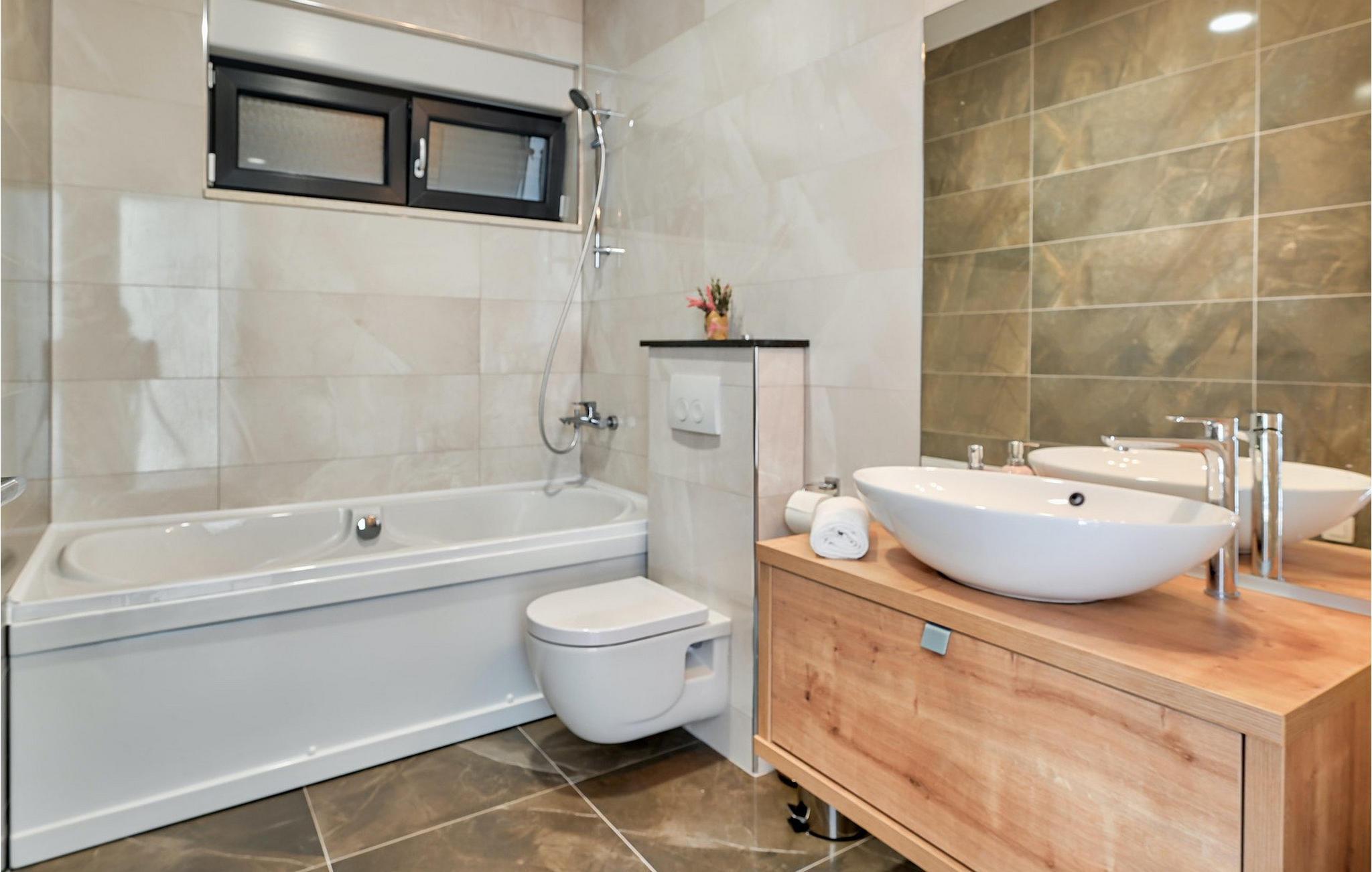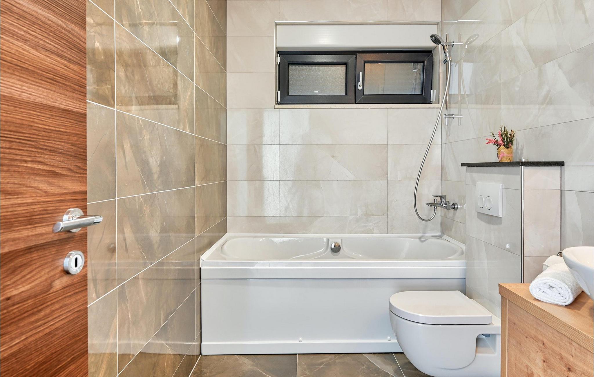 Badezimmer (nr. 4) - WC. Warmes und kaltes Wasser. Badewanne